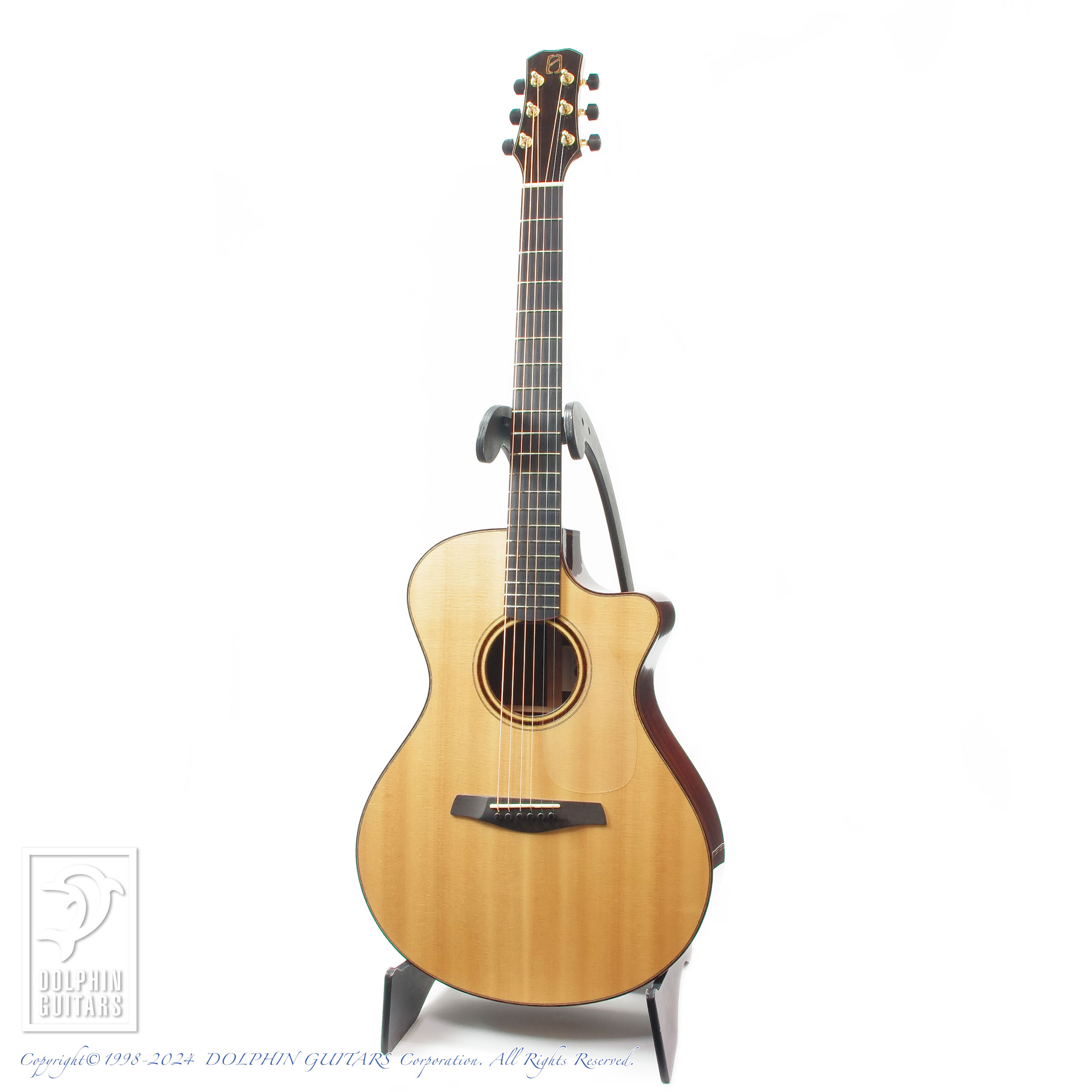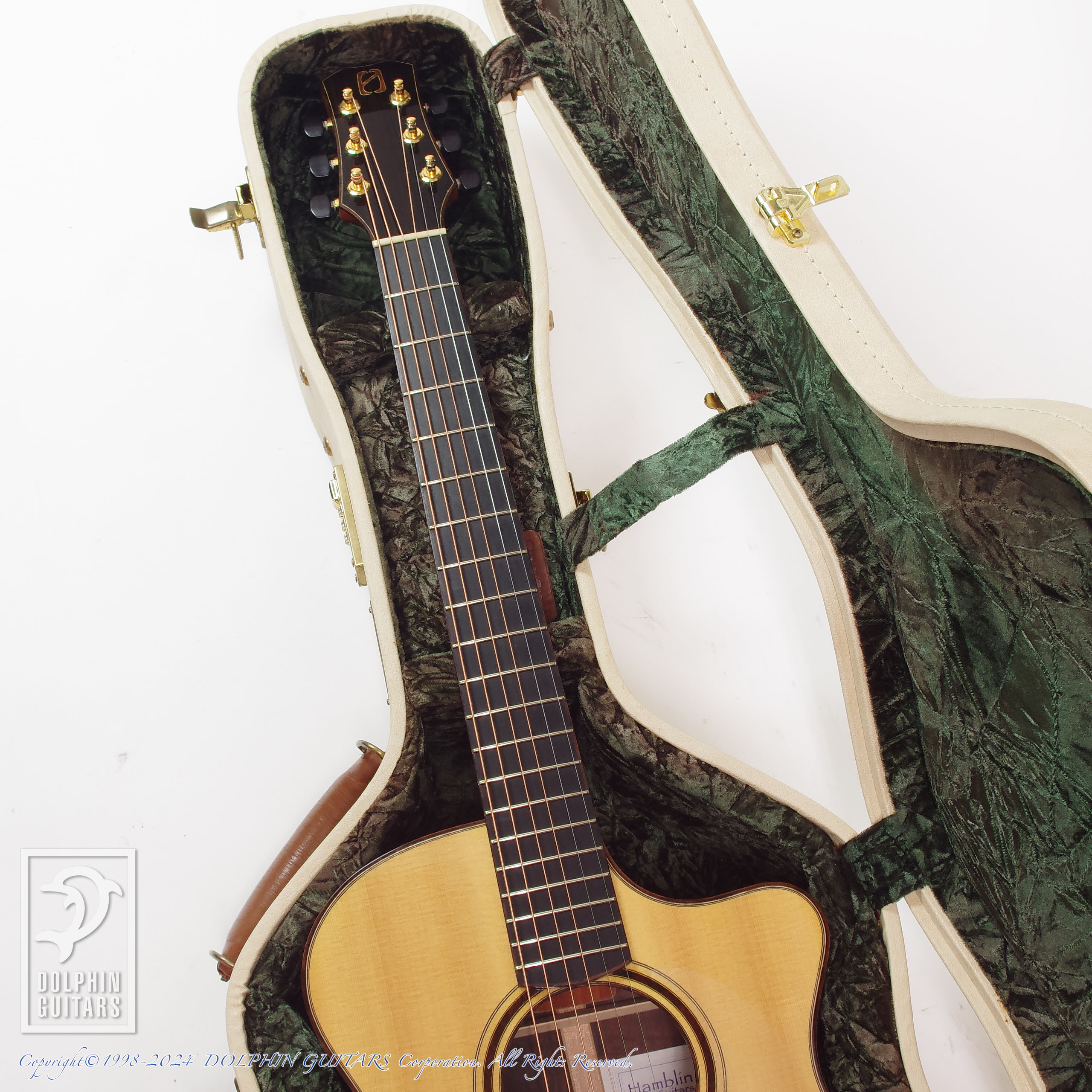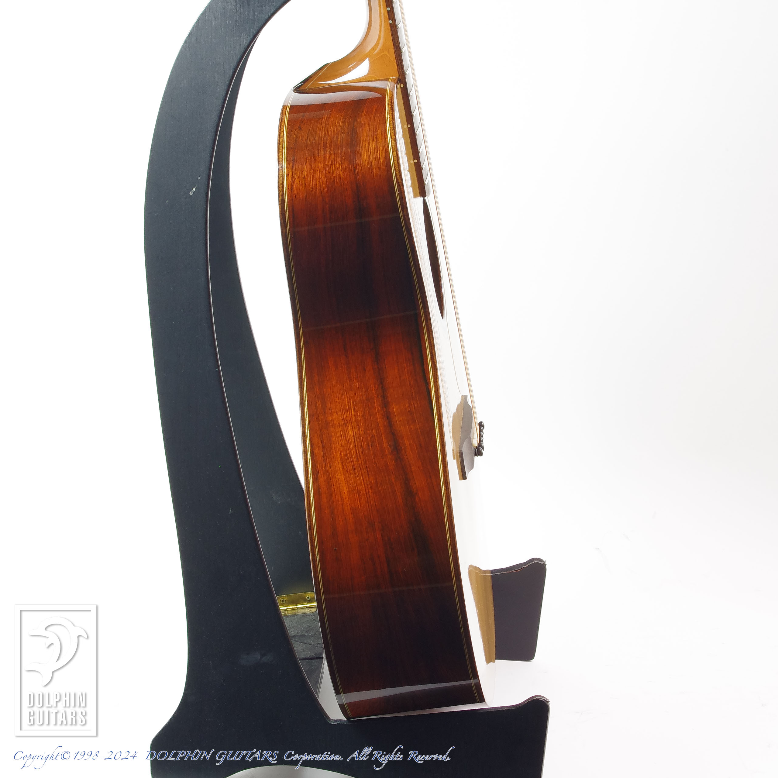 ハンブリン氏の拠点であるコロラド州のスプルースを使用し、ボディ材はエキゾチックな木目のハカランダ。細部まで精巧に作り上げられており、塗膜の薄さや仕上げの美しさなど完成度の高い逸品であります。