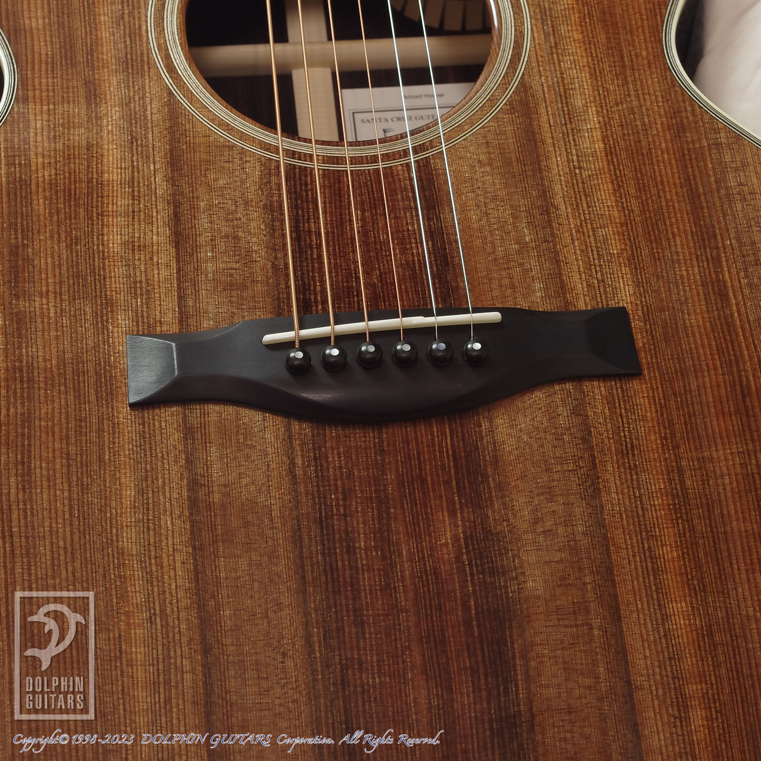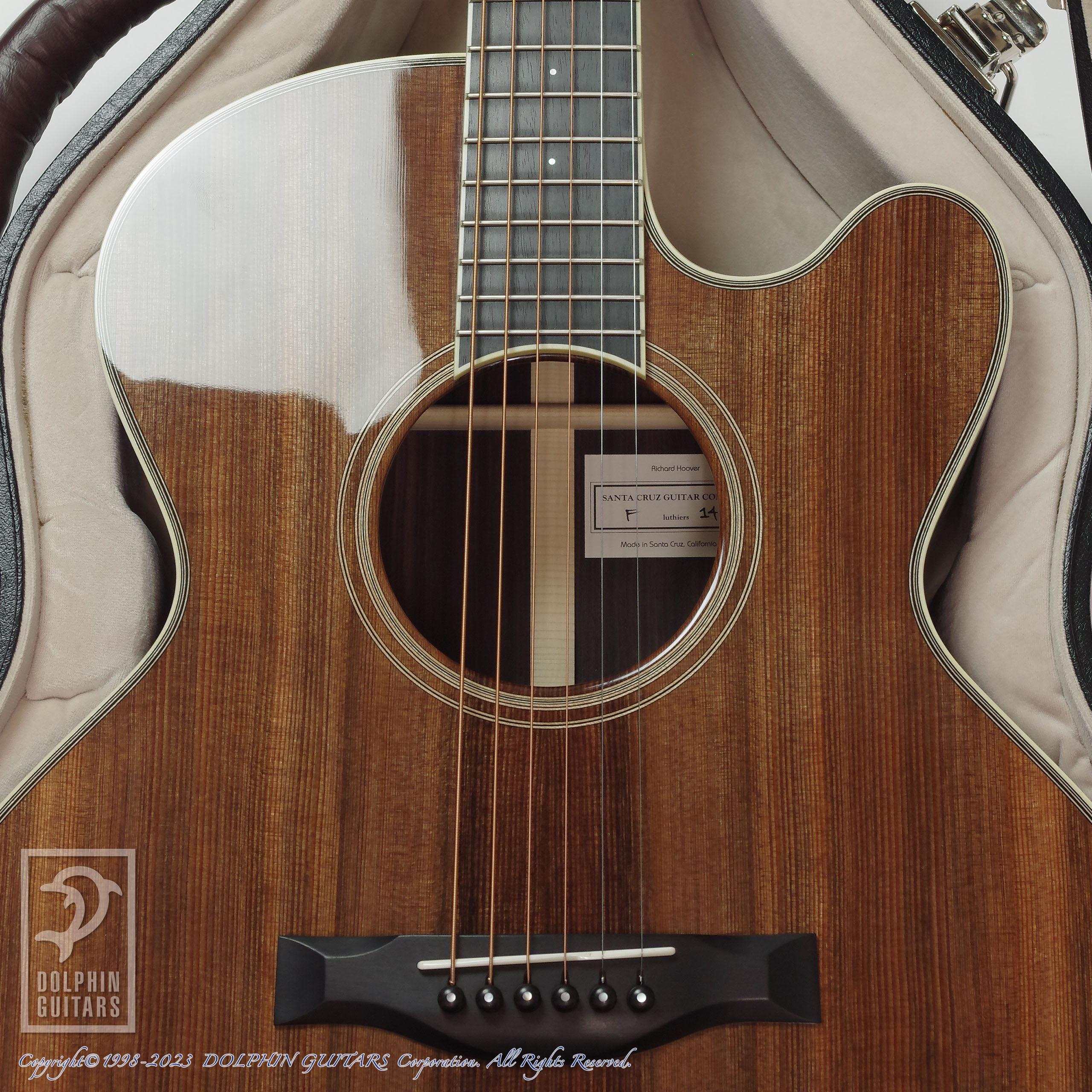 1980年代に完成させたモデル"F"は、その後 サンタクルーズギターを代表する人気モデルとなり、これまで幾度となく内部構造にもアレンジを加え、現在はサンタクルーズ史上 最も完成度の高いサウンドを作り上げたと言えます。現代でこそ多くのギターメーカーで見られるボディ形状ですが、サンタクルーズのモデル"F"に影響を受けたメーカーも多いと言え、80年代にこれを完成させていたことにも驚きであります。