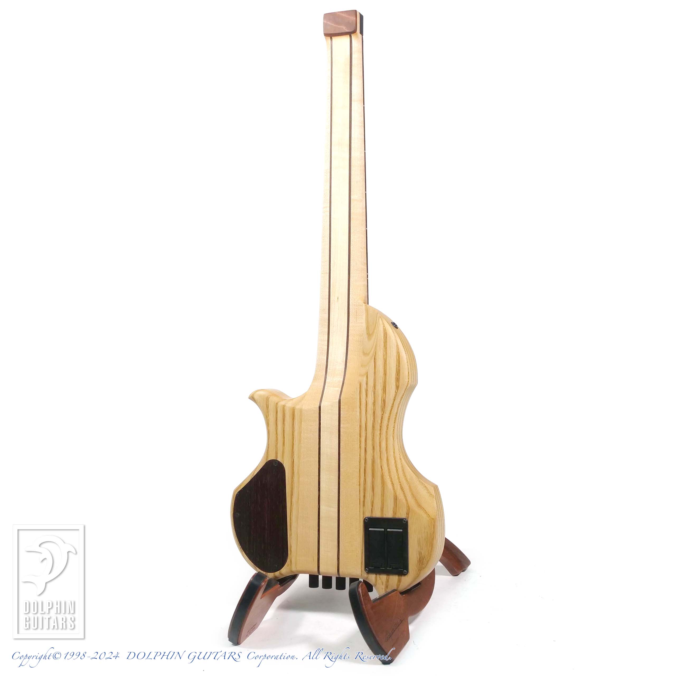 しかし、通常の弦を用いて正確なピッチとテンションを稼ぐためにはやはりある程度のスケールが必要、だが大きくなっては意味がない。その回答がこのヘッドレス化です。ヘッドの長さ分をスケールに回し、小型化とタイトなベースサウンドを両立しております。