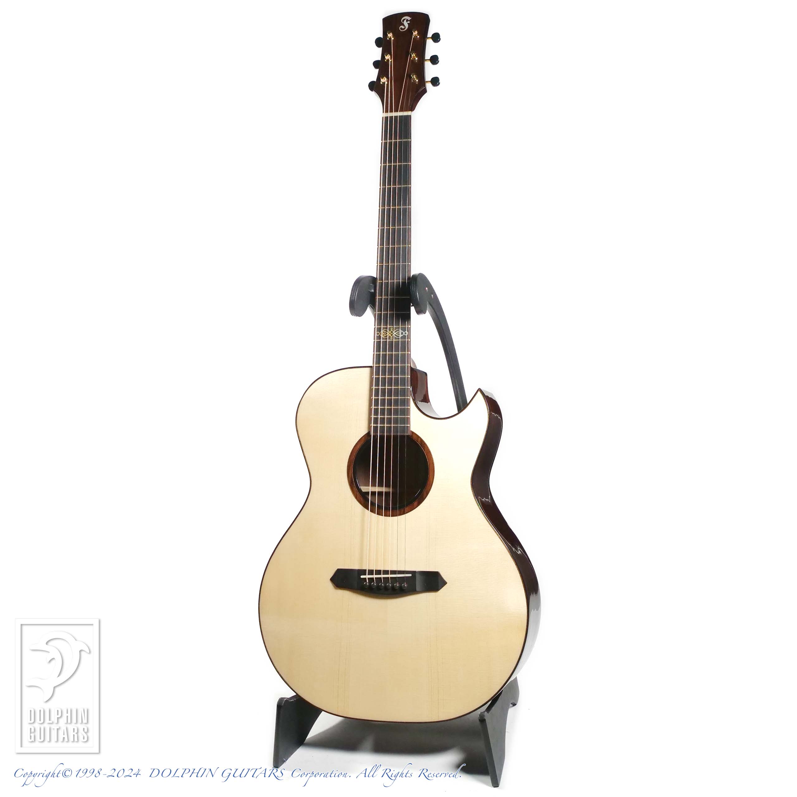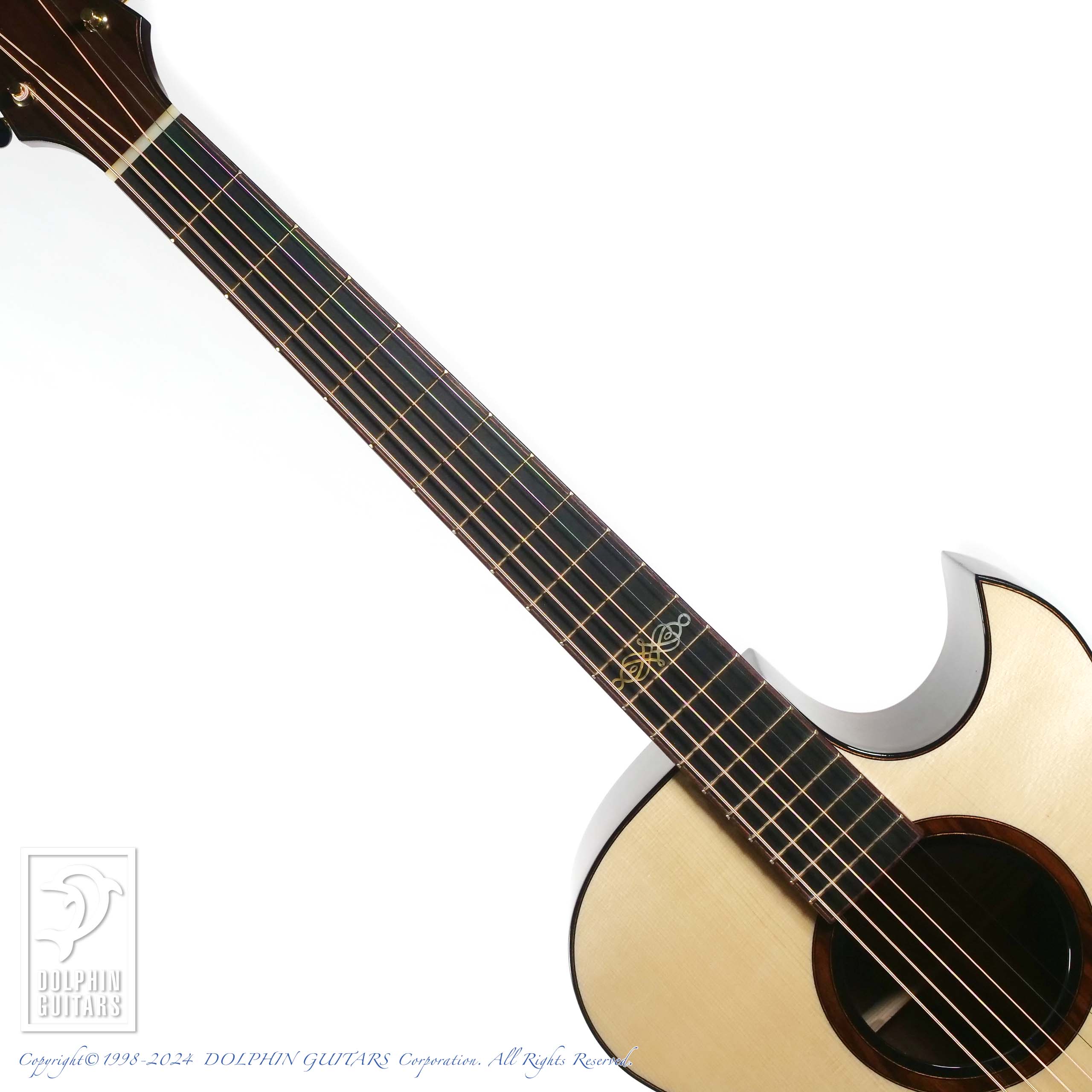 その他:43mmナット幅、648mmスケール、フローレンタインカッタウェイ、サントスローズロゼッタ、エボニーバインディング