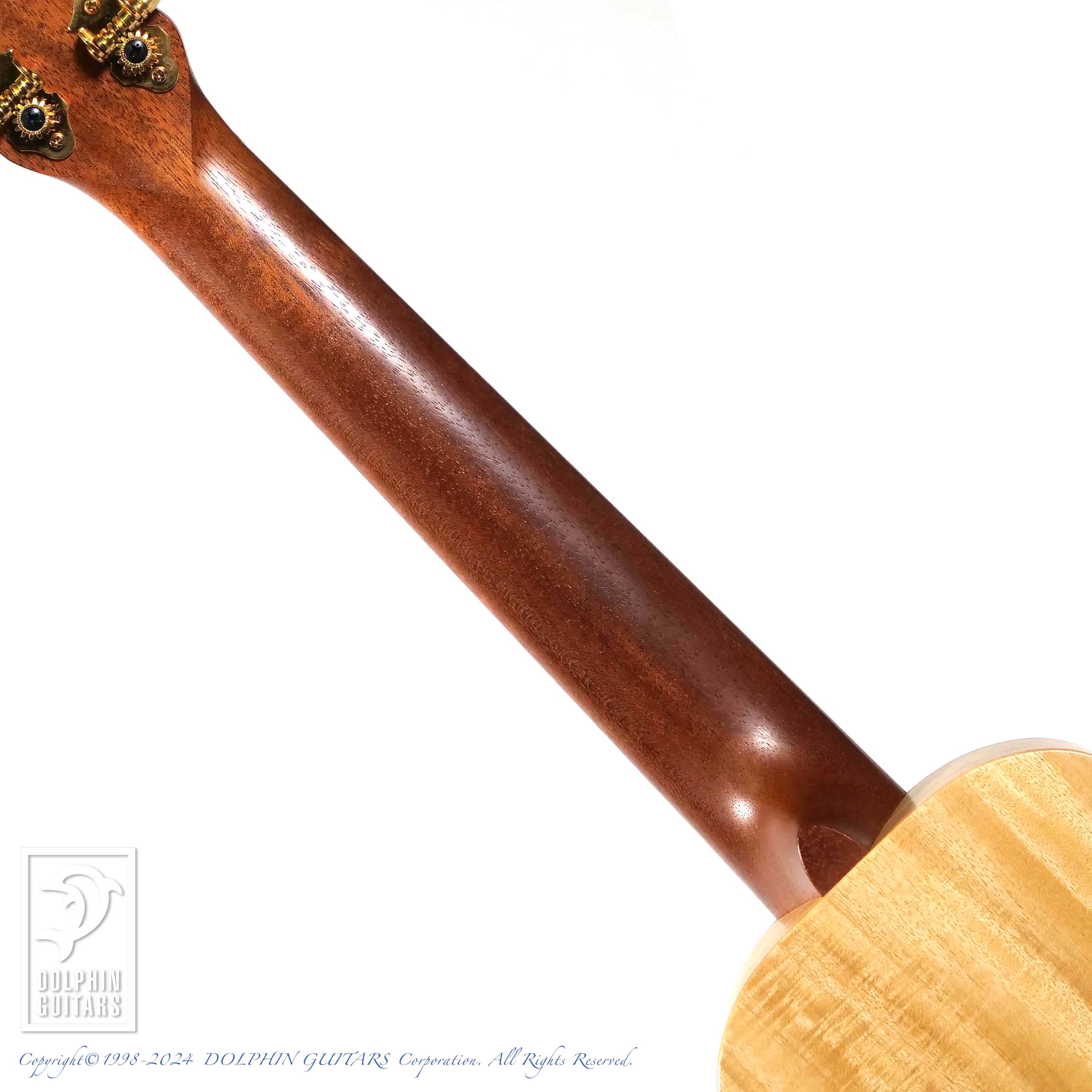 一般的なコンサートスケールながら、16Fでジョイントしており、ハイポジションの運指も楽々できます。それでいて違和感のないデザインバランスは秀逸です。
