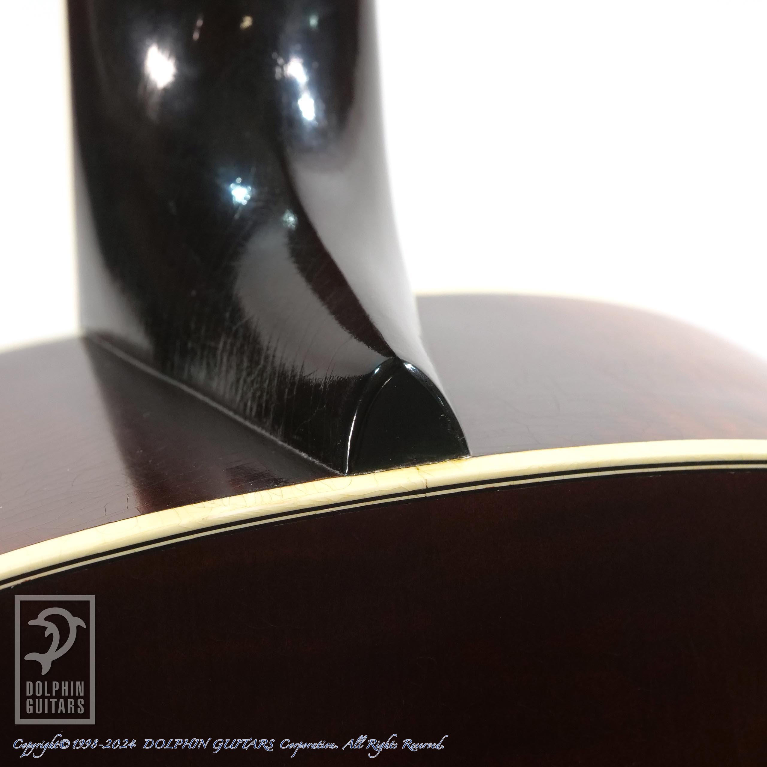 戦前の雰囲気を持ったサンバーストカラー、サウンドホールロゼッタの装飾や指板&ボディのバインディングの色合いなどのディテール、それを生かすエイジング加工は、非常に良い雰囲気が仕上がっており、数多くのヴィンテージのリペアを行ってきた氏の経験が生かされている部分ではないでしょうか。