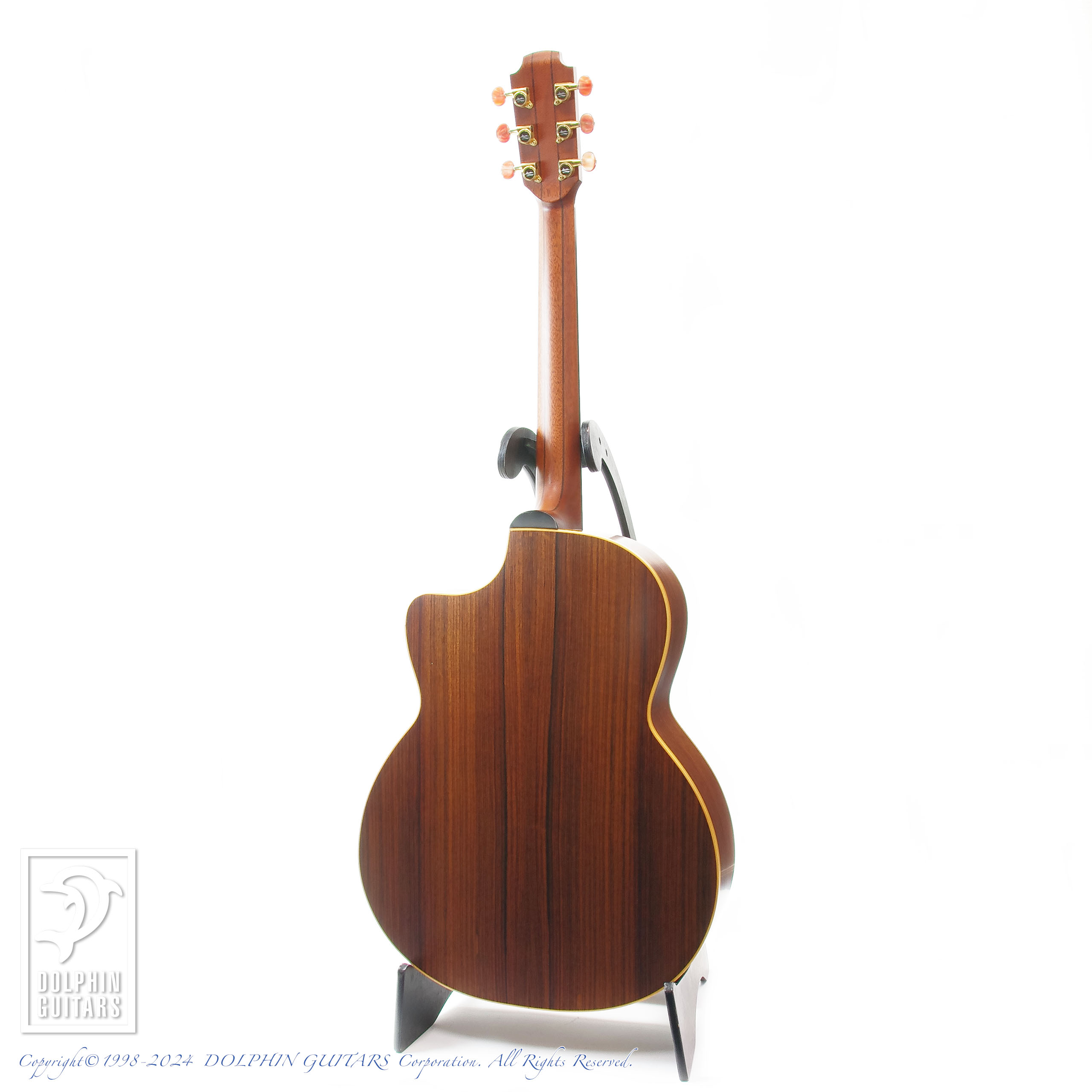 スプルーストップにインディアンローズボディの32シリーズ、そしてFボディのカッタウェイはローデンのラインナップの中で最も人気のモデルとも言えます。本器は製作されてから30年以上が経過し、サウンド面でも経年を感じさせるトーンであり、ギラついた高域は感じられず、ミッドレンジが効いた1・2弦であります。低音弦の厚みも感じさせ、表現力の高い素晴らしいサウンドです。
