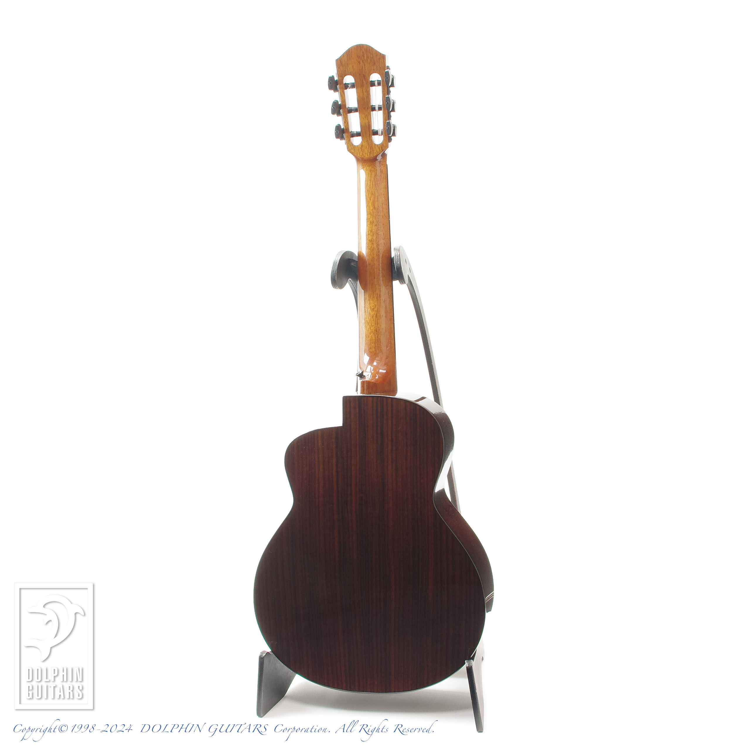 ネックシェイプはCシェイプ、厚くもなく薄すぎずといった形状です。指板はクラシックギターと同じくフラットの形状であり、ネック内部にはアジャスタブルロッドを採用し、僅かなネックの動きにも即対応できる点も大きなポイントです。弦はダダリオ EJ45(ノーマルテンション)を使用。