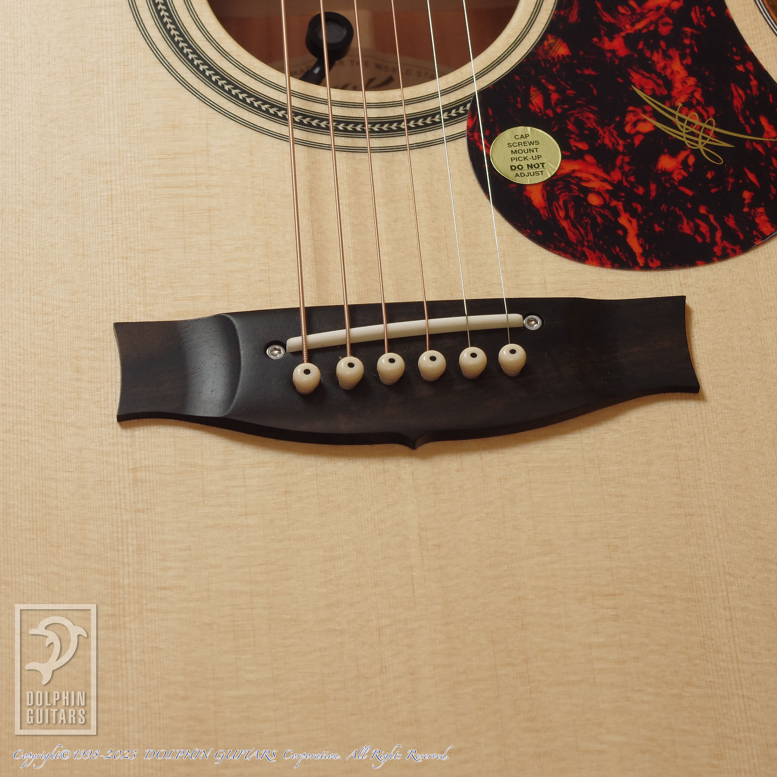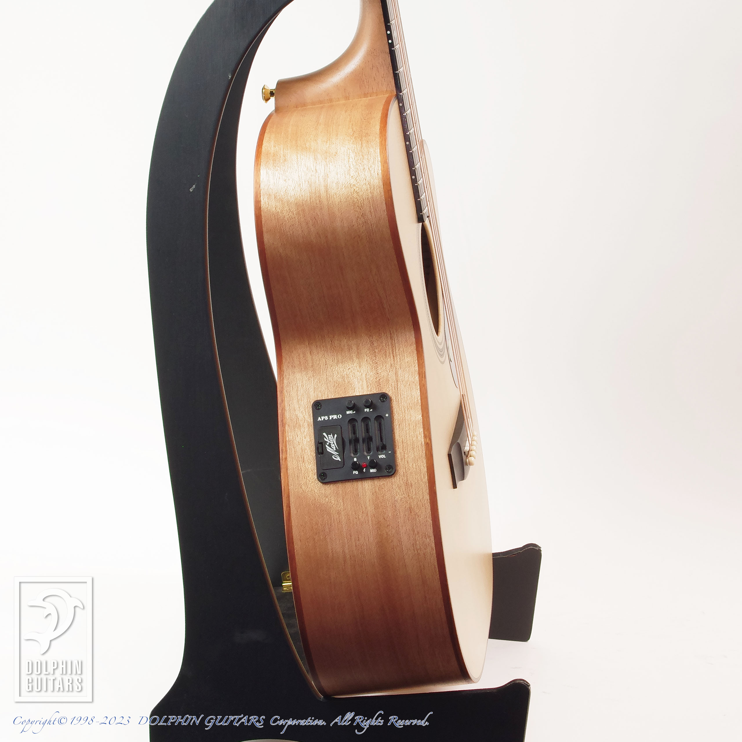 PUシステムはメイトン社オリジナルのAP5-Pro。非常にクリアで透明感のあるマイクサウンドと力強いピエゾの存在感でどんな現場でもナチュラルなアコースティックサウンドをアウトプットできます。ピエゾPUゲインとマイクゲイン、マスターボリュームを装備し出力バランス調整もより精細にスムーズに行うことが可能ですので、まさにプロフェッショナル仕様。