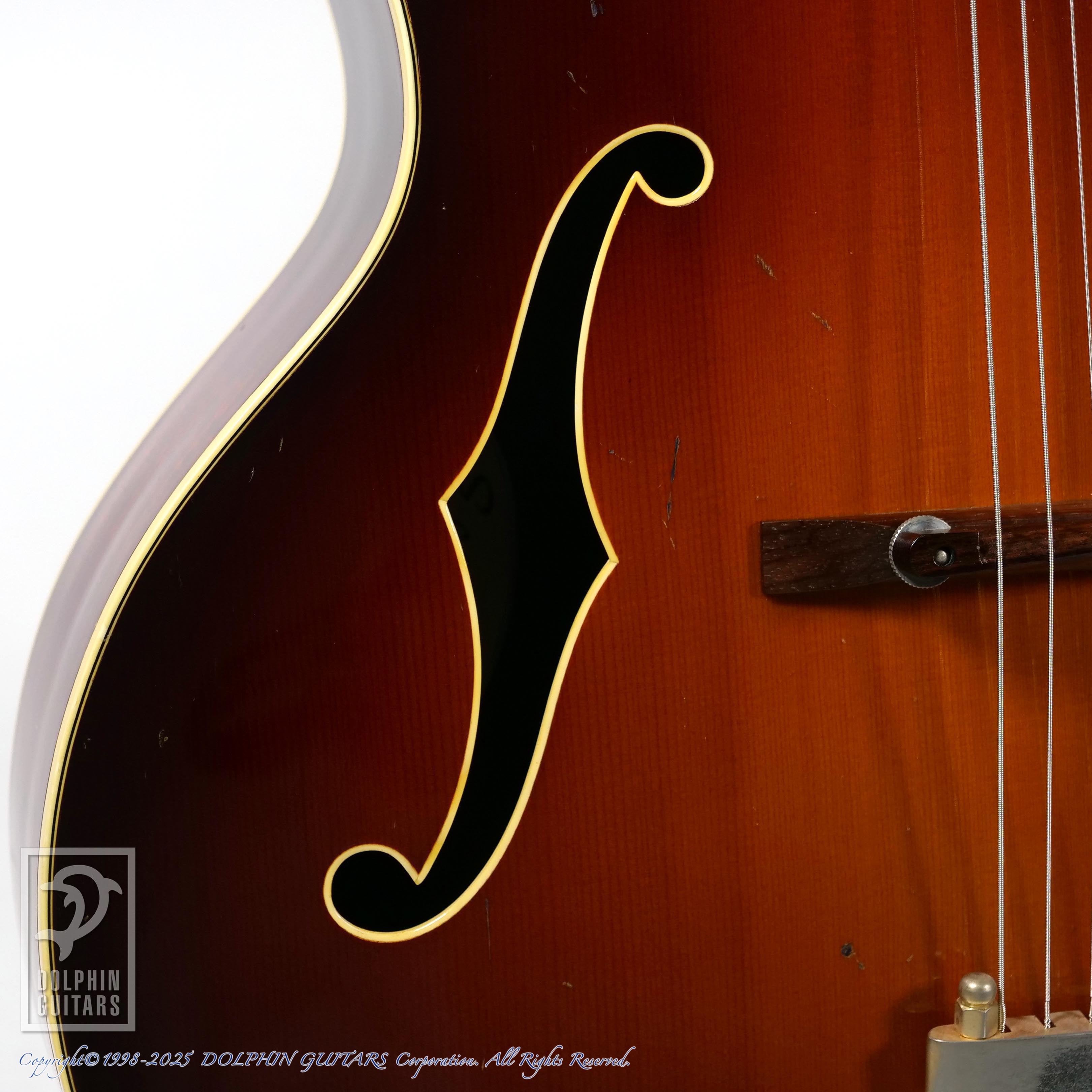 全体的にウェザーチェックや打コンなどが確認でき、かなり使い込まれた形跡のある個体ですが、逆に渋く見えます。ジャズ、ブルースに最適なルックスと言えるでしょう。