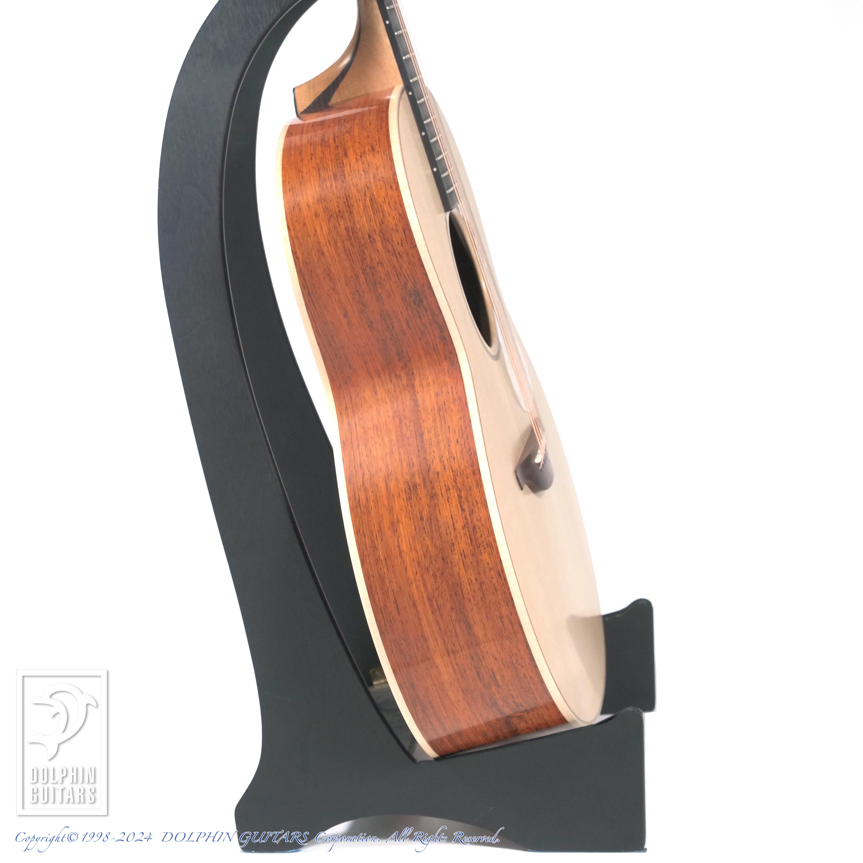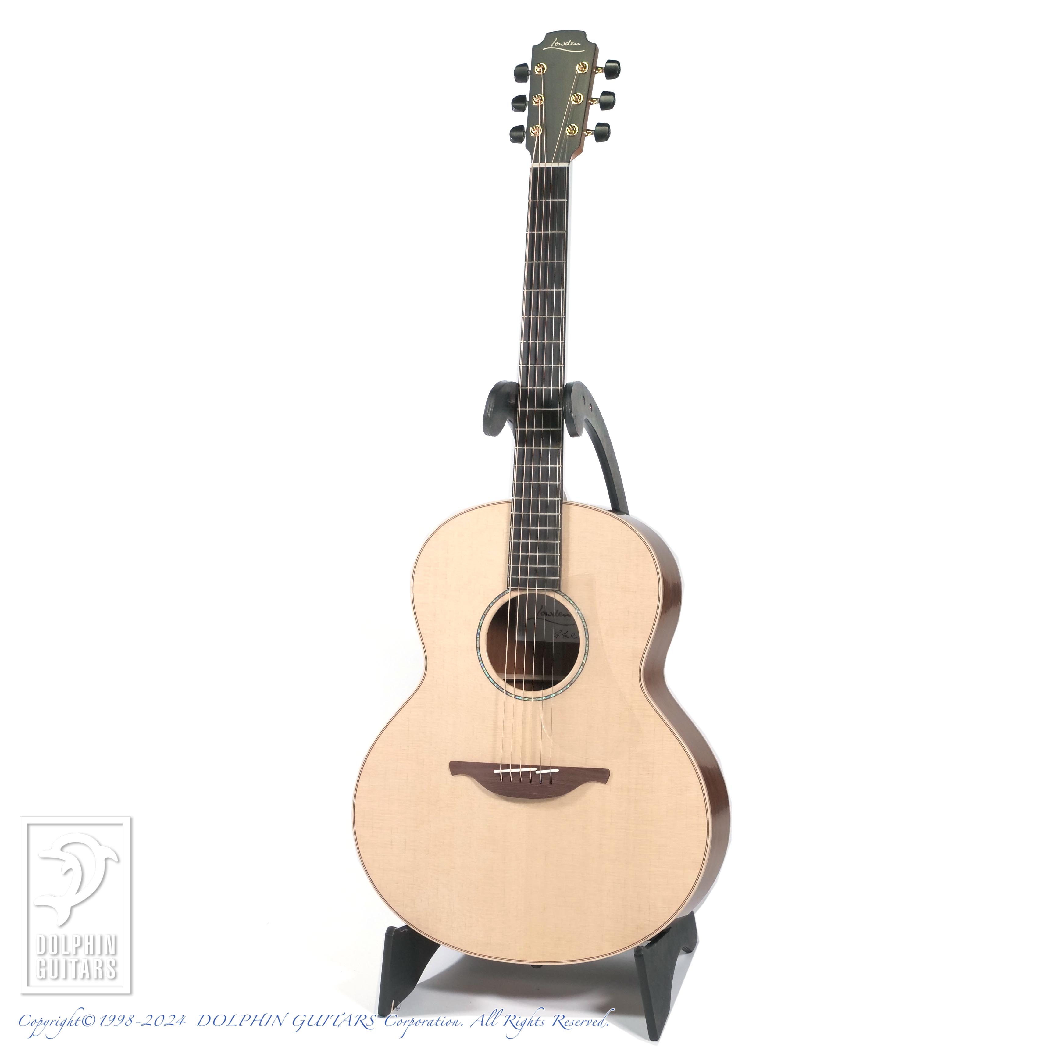 それでいて生音は迫力があり、分厚く、ボリューム感や深みなど薄胴とは思えないほどの表現力を持ちます。近年コンパクトサイズの人気が上昇しているなか、本モデルは最大幅を小さくせず、薄胴にすることにより抱え心地の良さにも絶大な効果を発揮し、このサイズにしてこの豊かなサウンドは驚きです。LOWDEN社は「ブライトでクリーンなリードやフィンガーピッキング・ランが映えるボイシングが施され、低中音域が特に強調されている。ミックスをのなかで際立たせるのに最適なギターだ。」と謳っております。