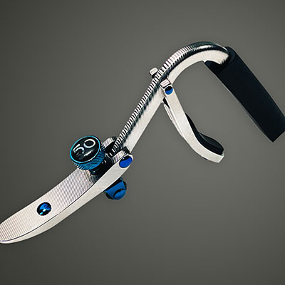 今までの積み重ねた経験とアイデアより、至高の差材として選ばれた「ソリッド(削り出し)チタン」は、ギターの弦振動を楽器全体へ忠実に伝える高い剛性と、余分な重量で振動を抑えこまない軽量性を併せ持つ、弦楽器の良いサウンドに適した素材です。