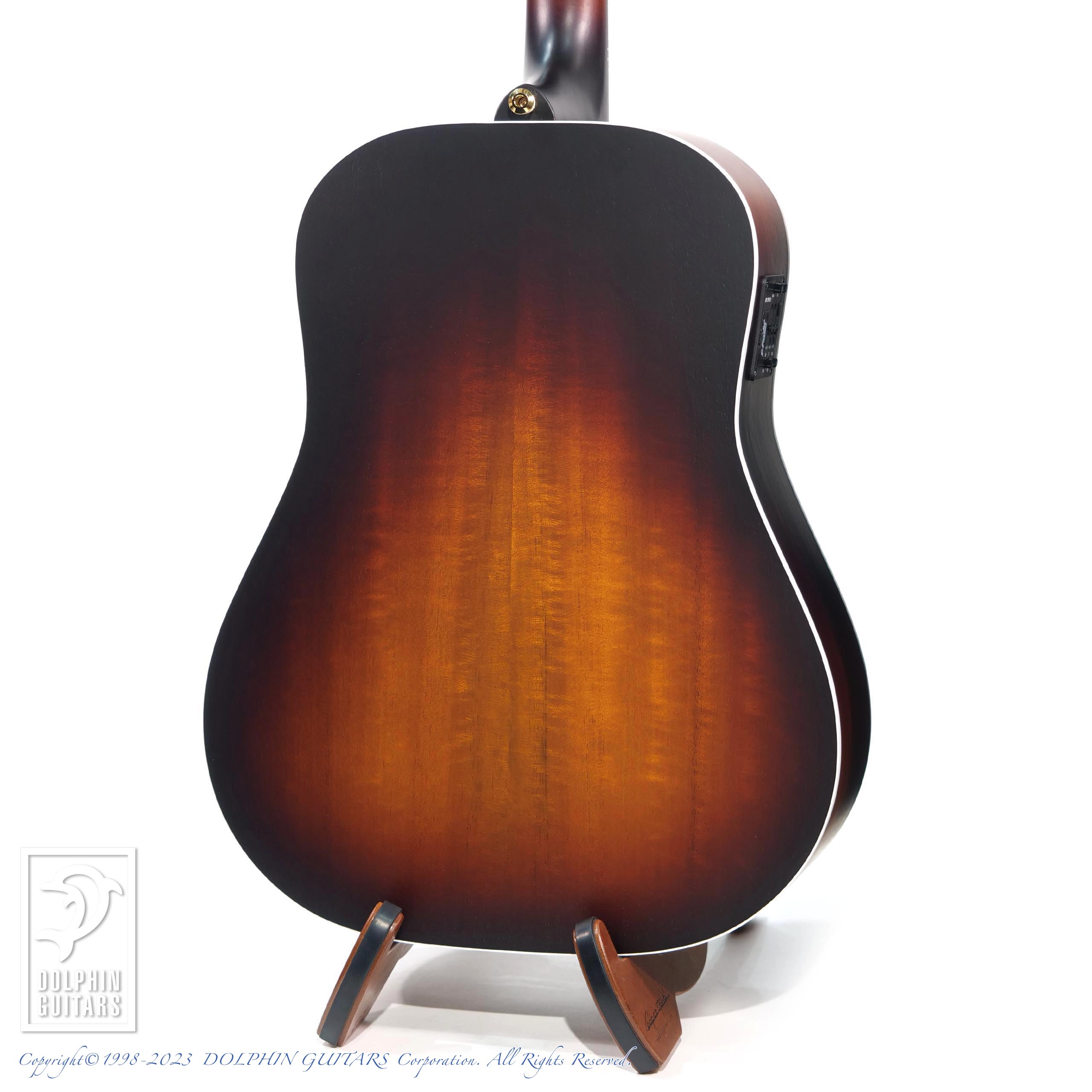 搭載されたAP5pro PUシステムは、オリジナルのアンダーサドルPUにコンデンサーマイクを併用する事により、奥行きのある音域と抜群なエアー感に加え、ボディーヒット音も余すことなくアウトプットします。また、高い出力を持つプリアンプを内蔵しておりますので、外部プリアンプ等を使用せずとも、そのままプラグインしていただければ極上のサウンドをお楽しみいただけます。PUとマイクVolは完全に独立しており、手元での出力バランス調整が可能ですのでお好みや現場に合わせてご使用下さい。