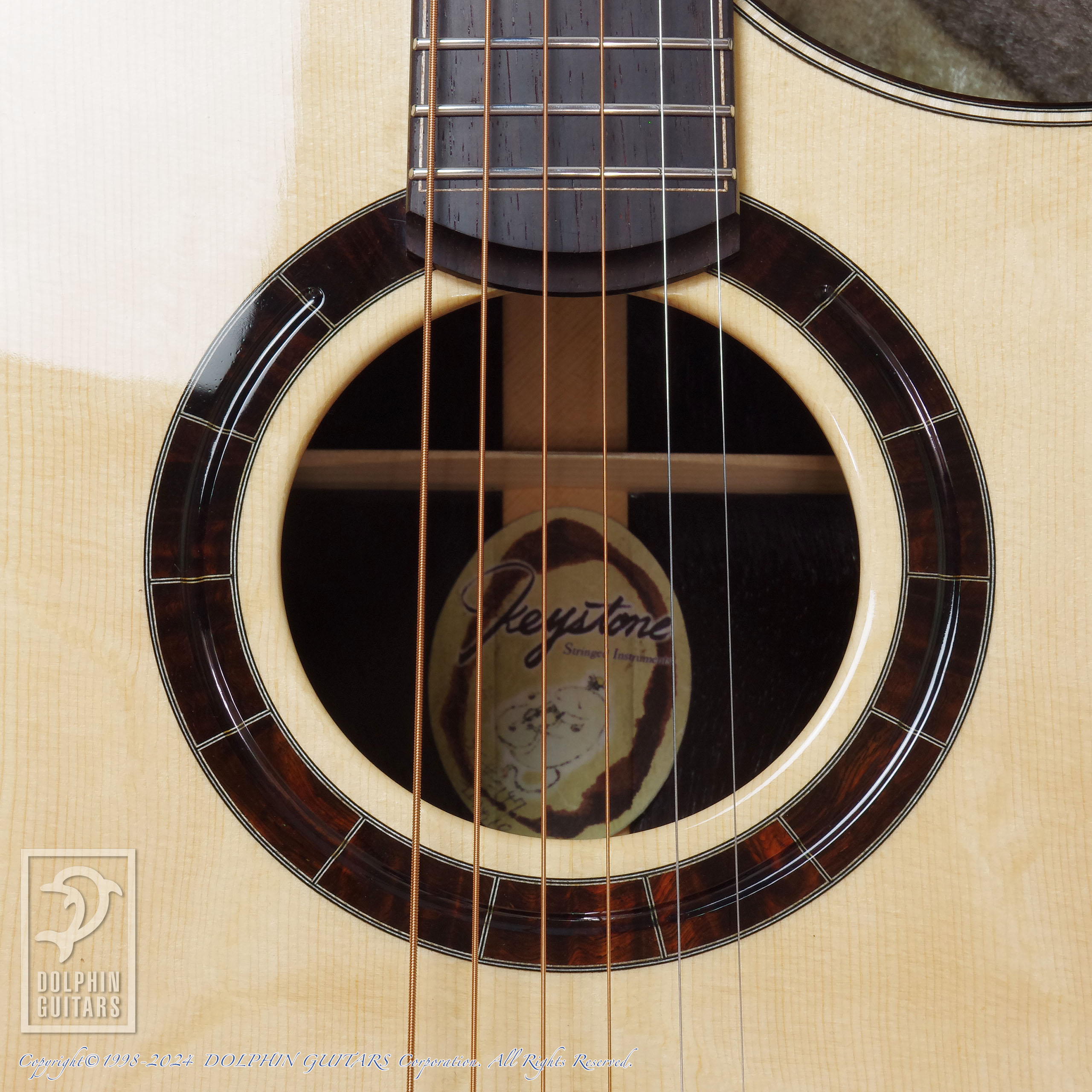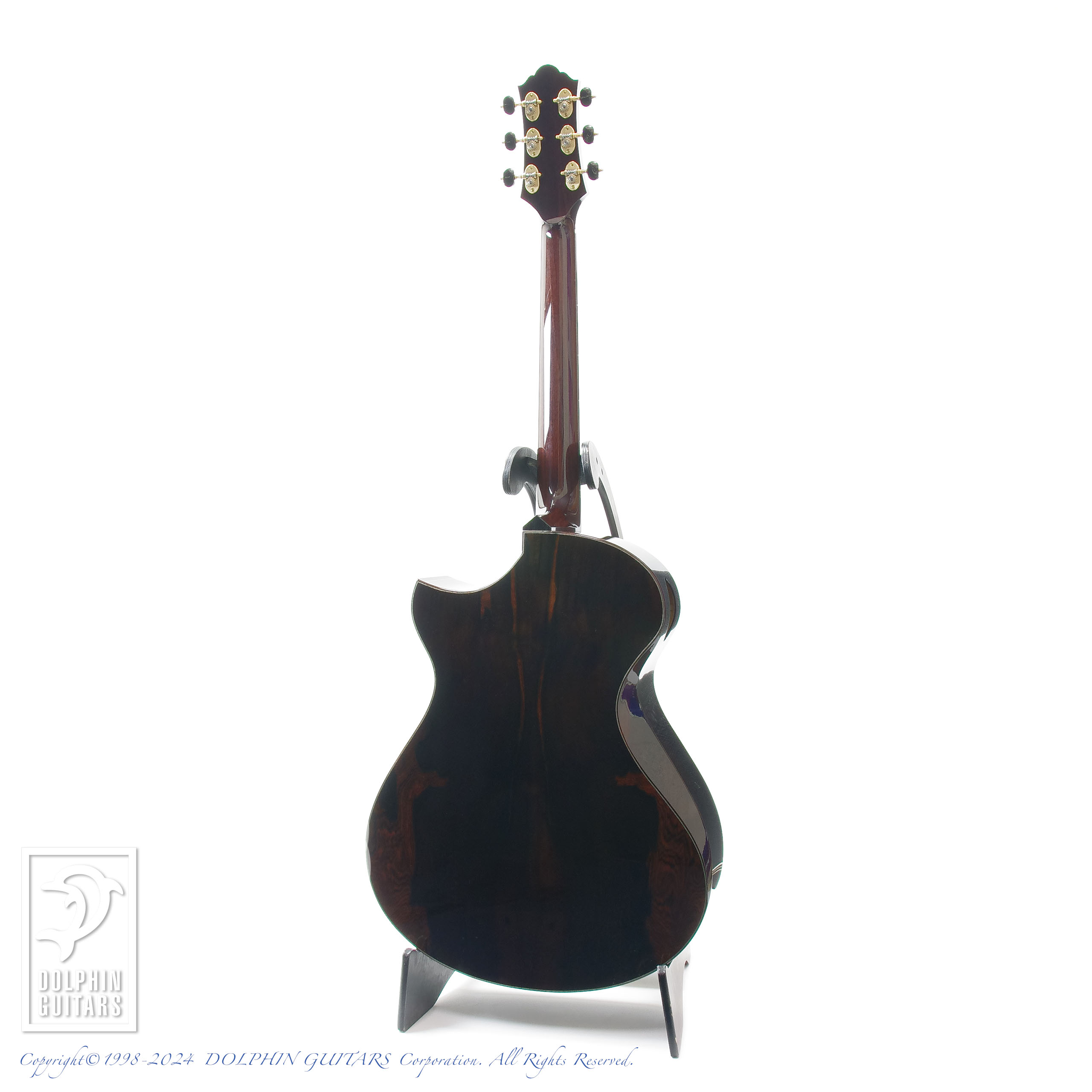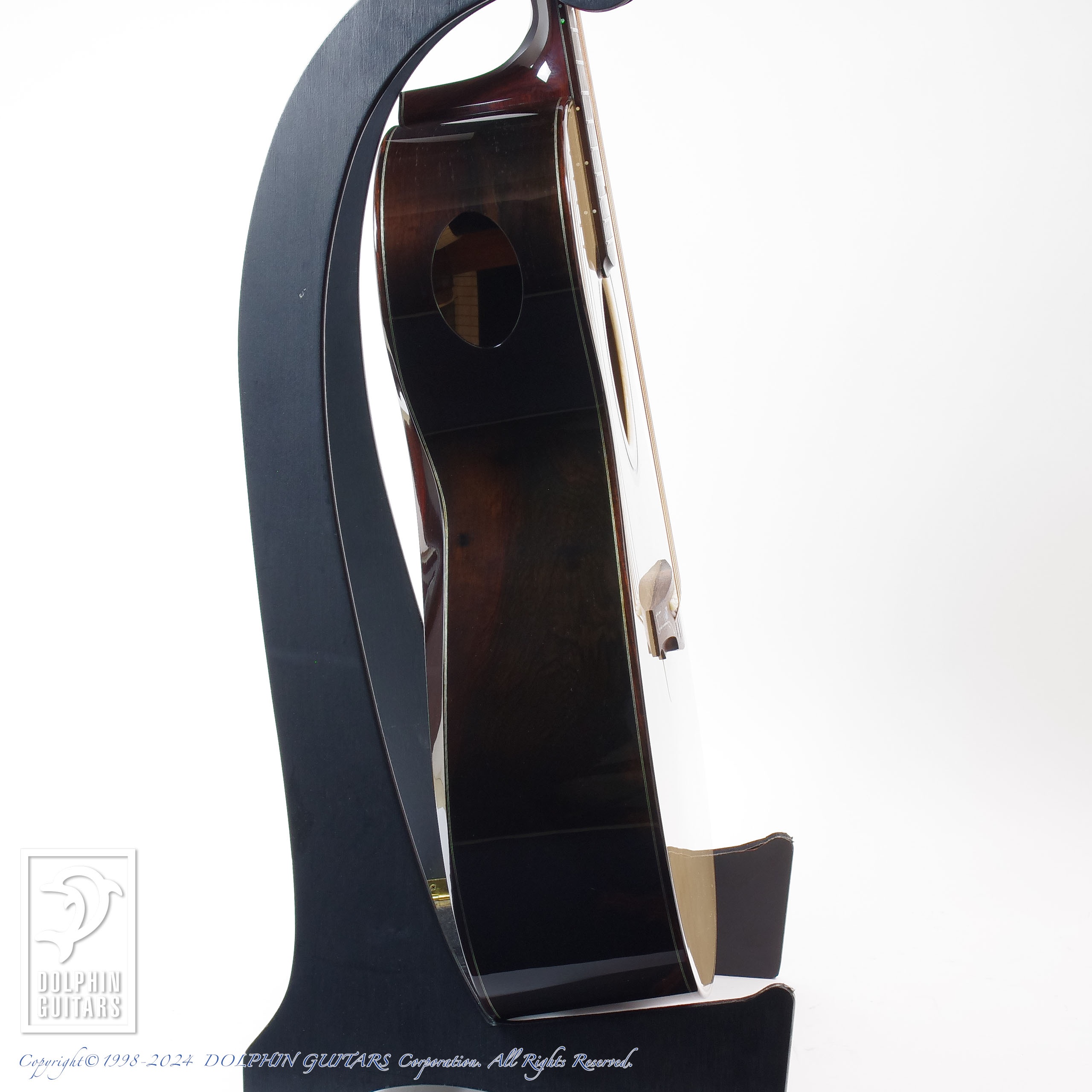 シルキーな木目にフィギャード杢の美しいベアクロウ・ジャーマンスプルースをトップに採用。サイド&バック、ヘッドプレート(表・裏)、指板、ブリッジ、バインディング(リブレスト)にハカランダ材を使用し、高い木工精度で組み上げ、各部のデザイン・バランスの良さ、仕上げの美しさと圧倒的なオーラを放つモデルであります。