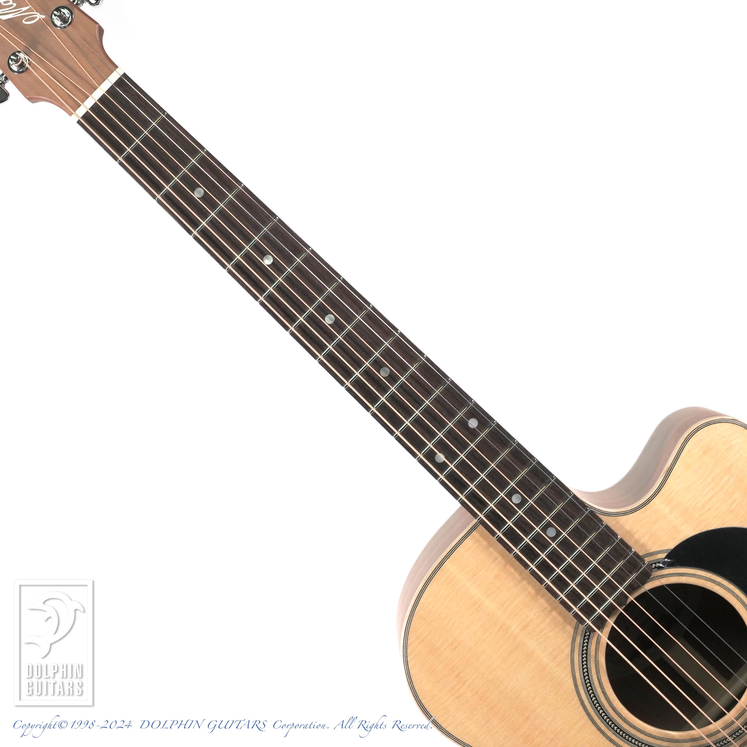 メイトンを代表するEBG808のボディは000と00サイズの中間でありながら、ディープボディ仕様となっており、抱え易い小柄なサイズでありながらも、豊かなベース音を生み出す設計となっております。トップ材はAAグレード、ブレイシングはスキャロップドXでメイトンのオリジナルパターンです。
