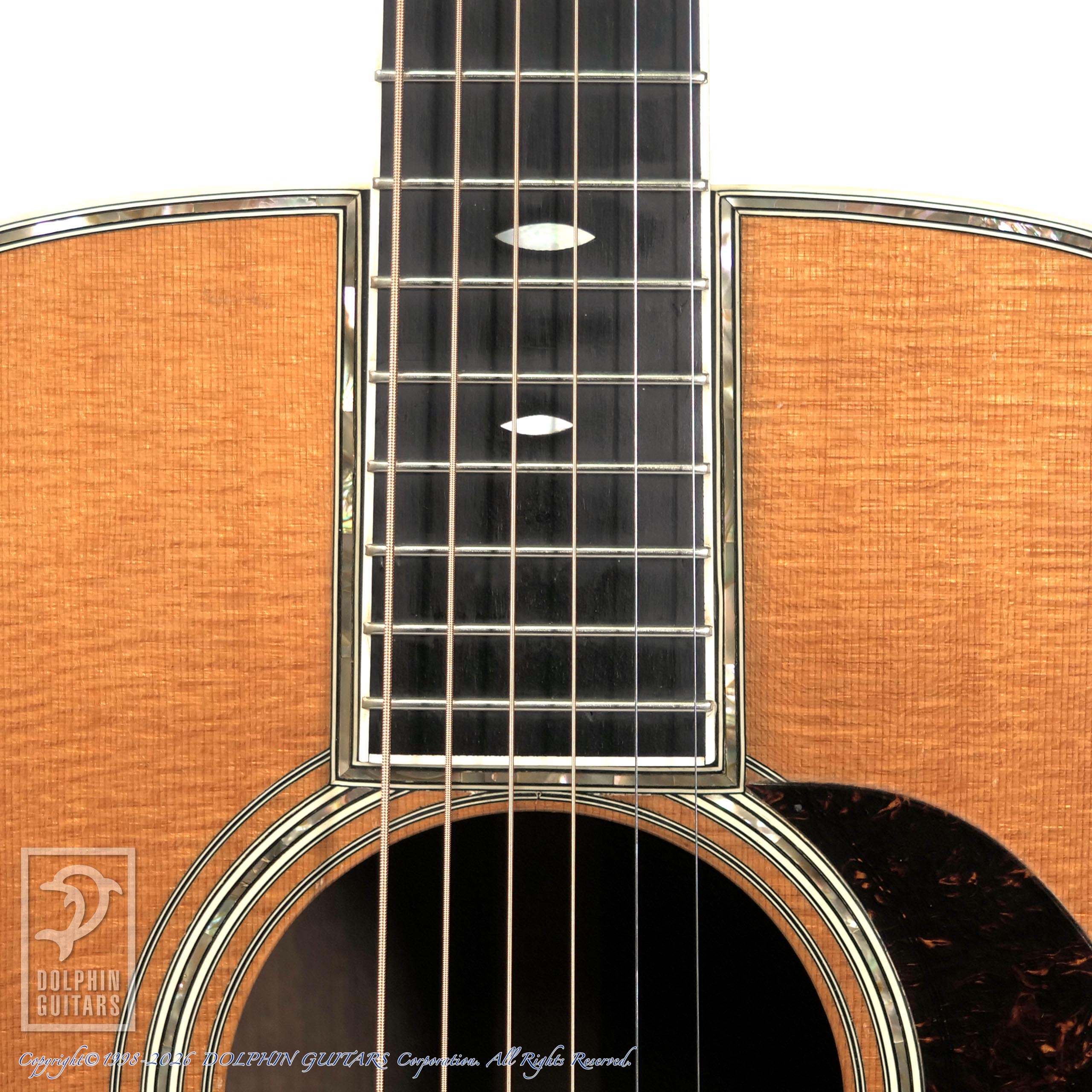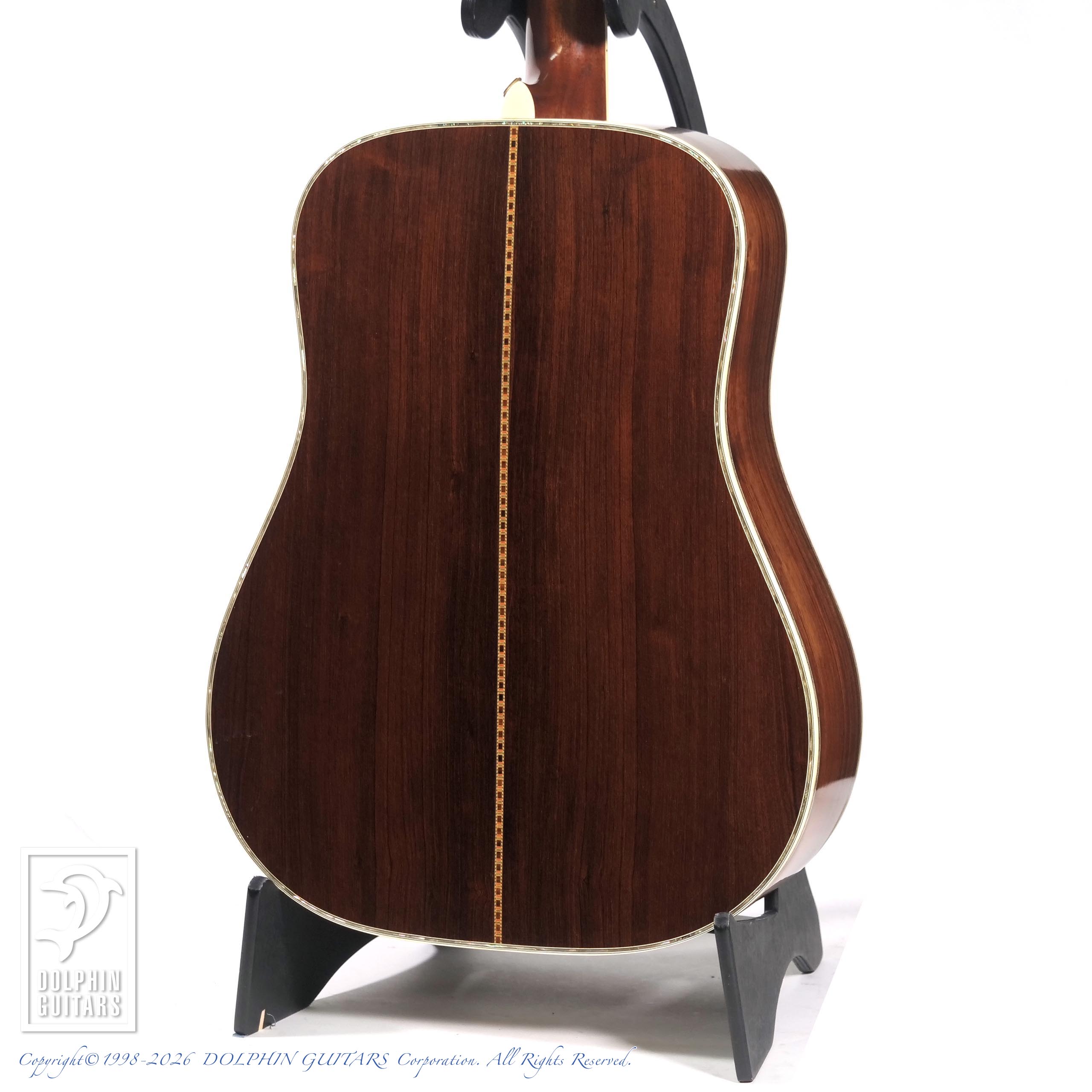 ギター製作家であり、マーティン研究家の顔を持つ塩崎氏の初期の渾身の作である本器は、D-45モデルでありながら、ヘッドに入った女性のインレイが目を惹くオリジナリティ溢れる仕上がりです。また、サイド&バックのホンジュラスローズウッドの木目の美しさは格別なもので、ここまで目の詰まった材は、近年なかなかお目にかかれません。