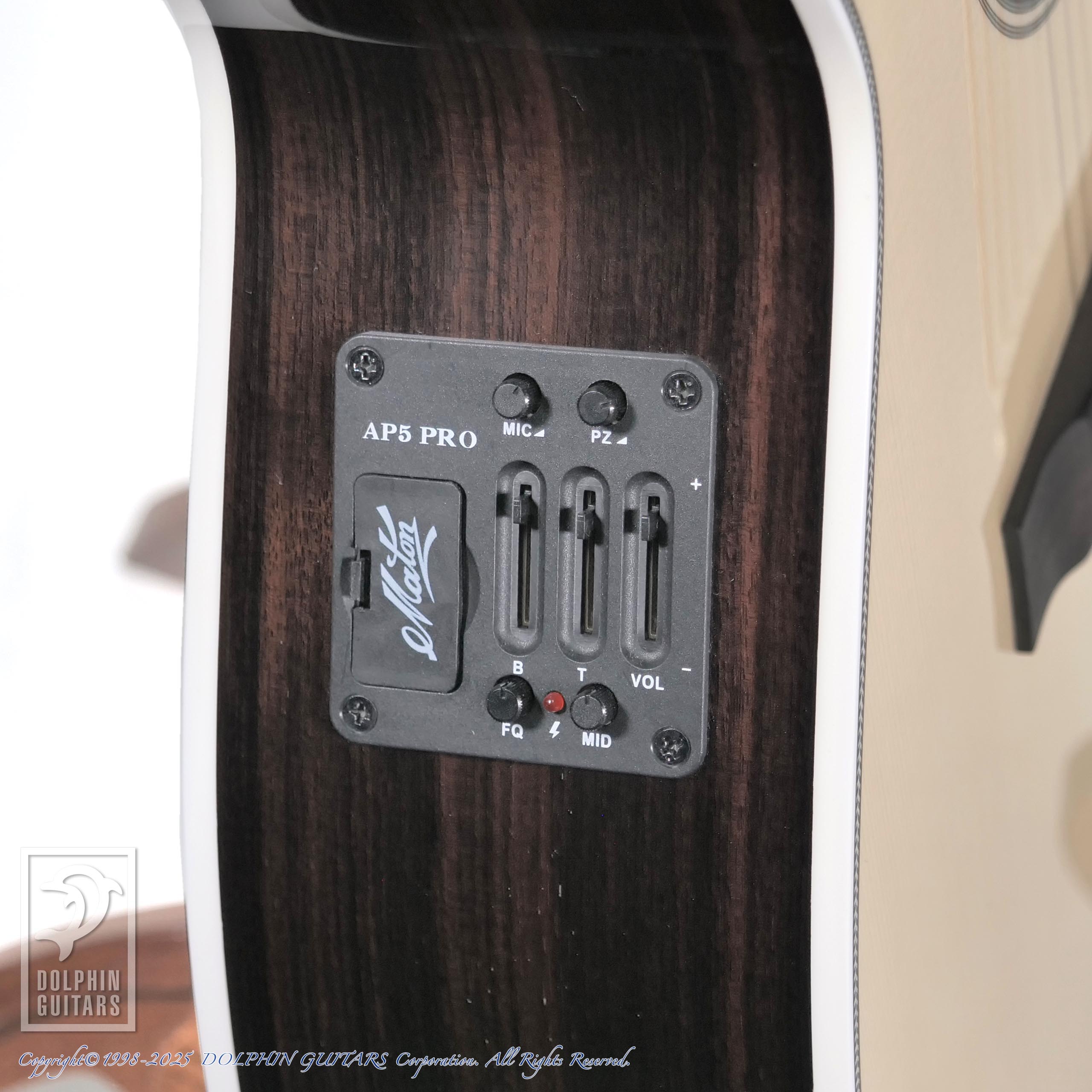 マスタービルト・シリーズの他のモデルと同様に、ブレイシングはトップ材と同じ木材を採用し、求める音色とレスポンスを実現するために厚さや形状、スキャロップ加工が施されています。