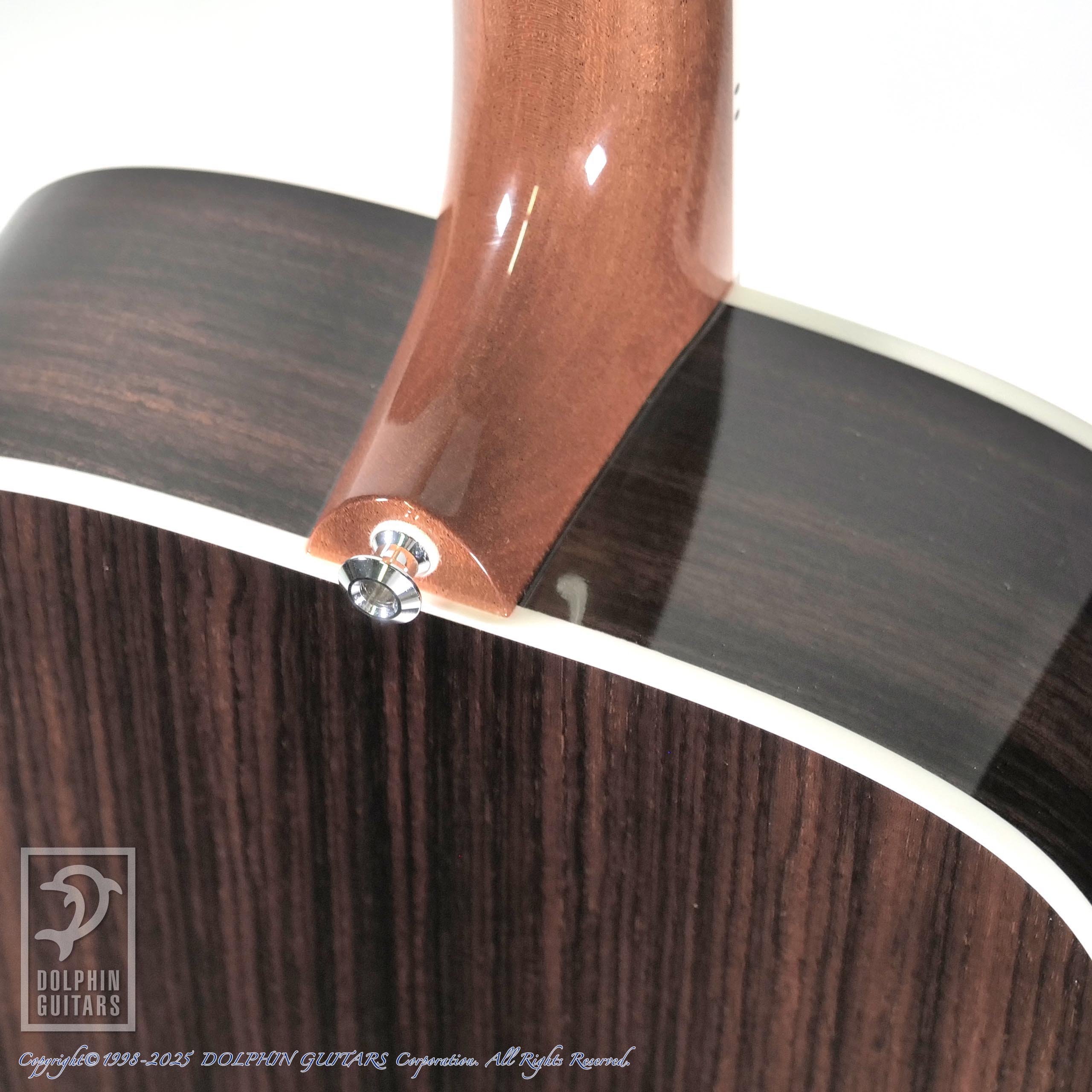 ボディと指板のバインディングはホワイトABS、パーフリングとロゼッタにクラシックなヘリンボーンが施されています。クリアグロスで仕上げ、高品質な素材の自然な美しさを際立たせています。