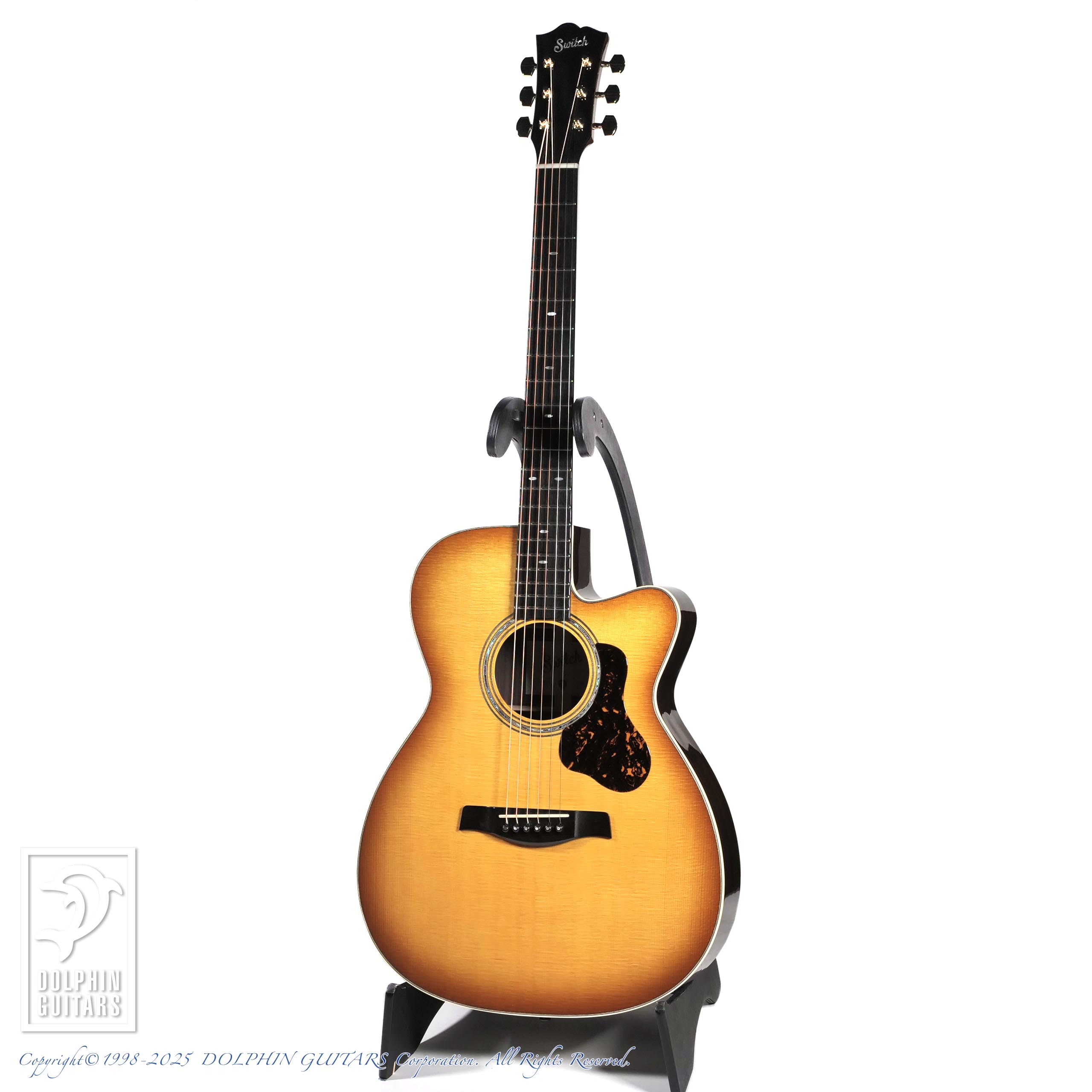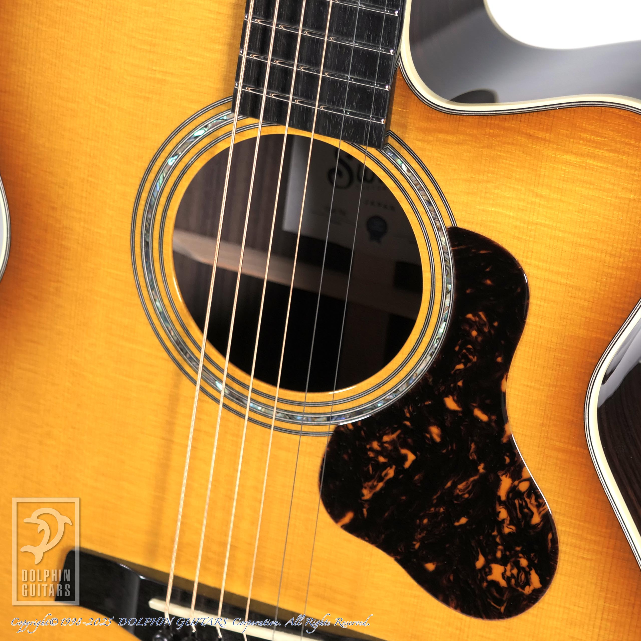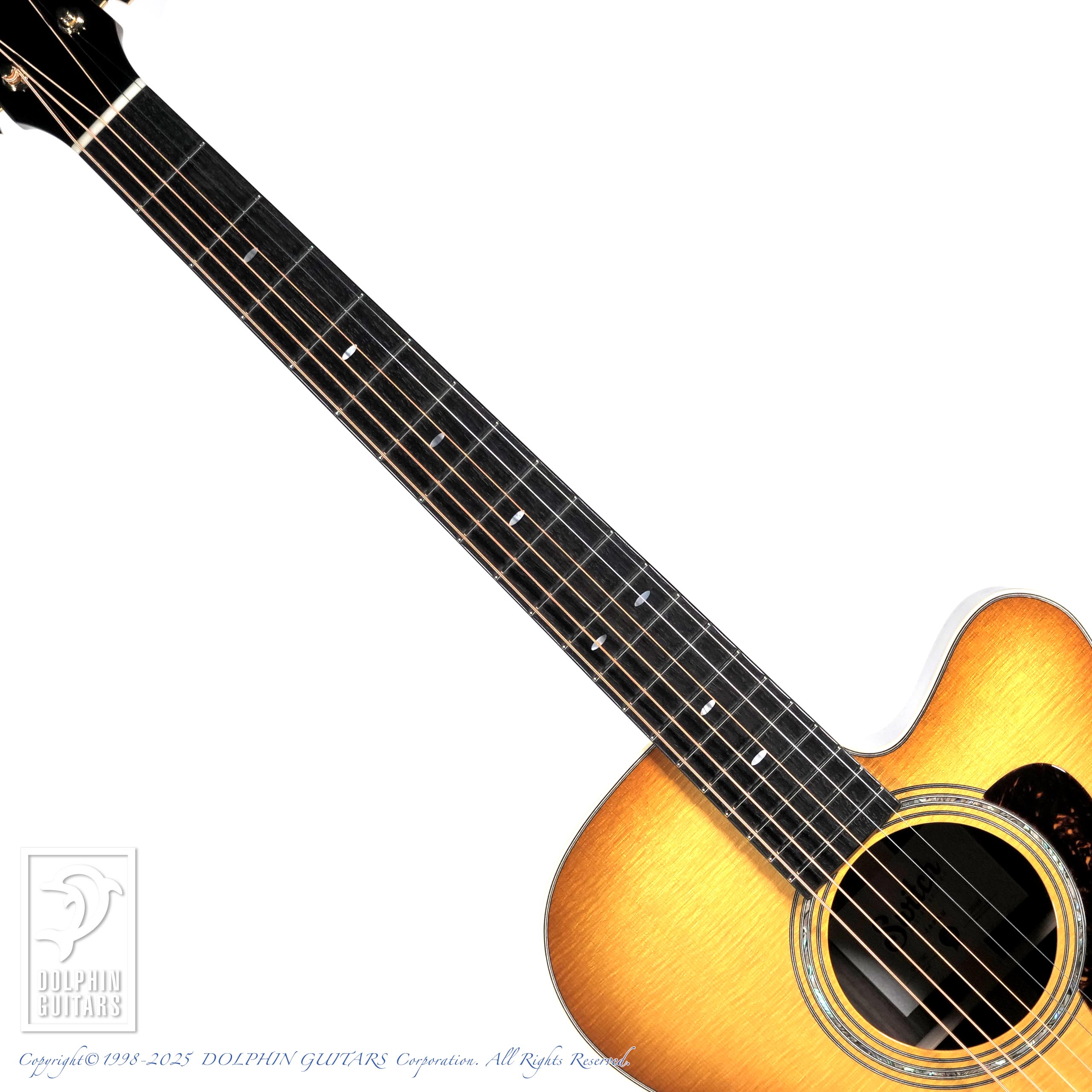 本器はオーセンティックなOMタイプにオリジナルカッタウェイを施したスタイリッシュなシェイプに、ゴールデンティーカラーを採用した限定モデルOM-70C (Golden Tea)。