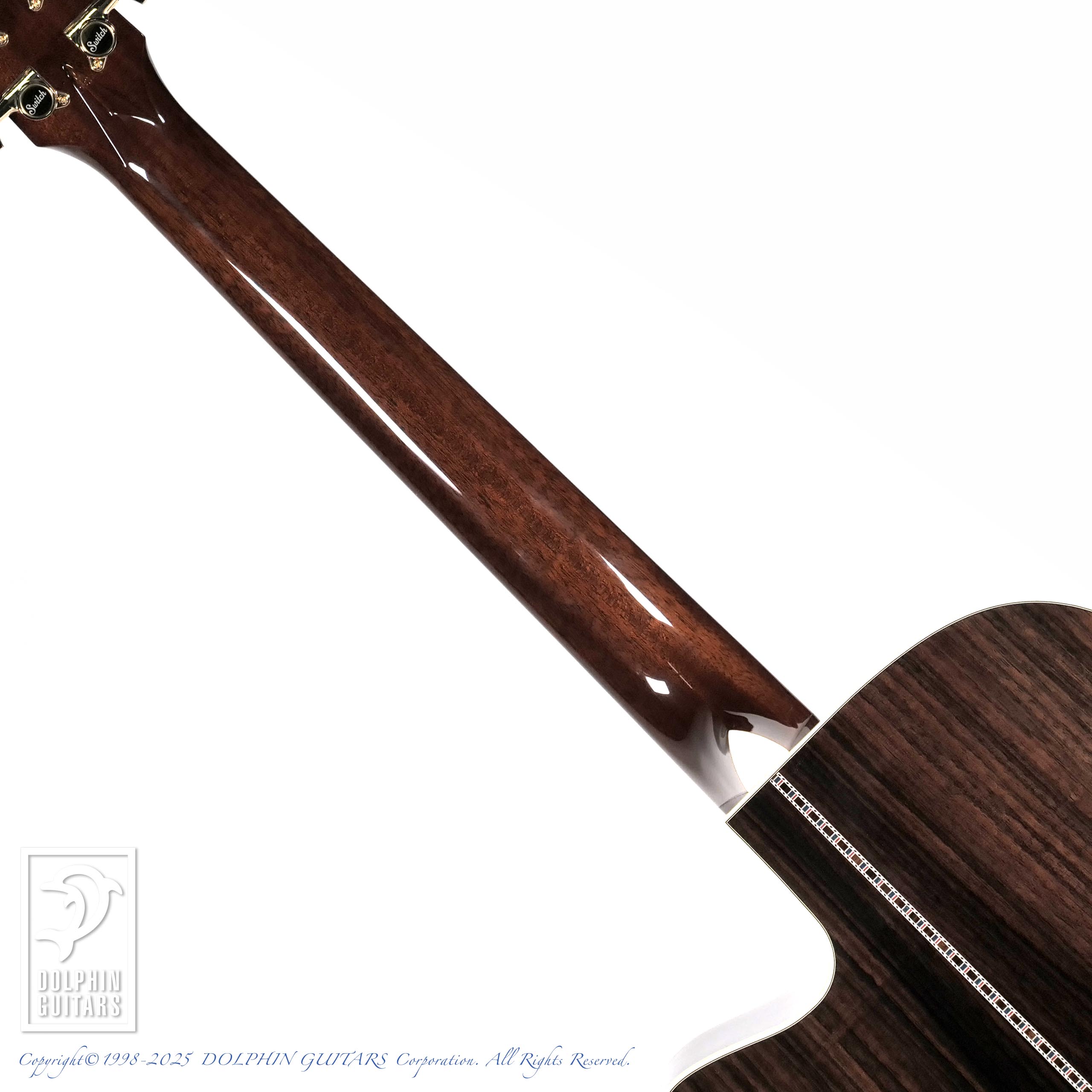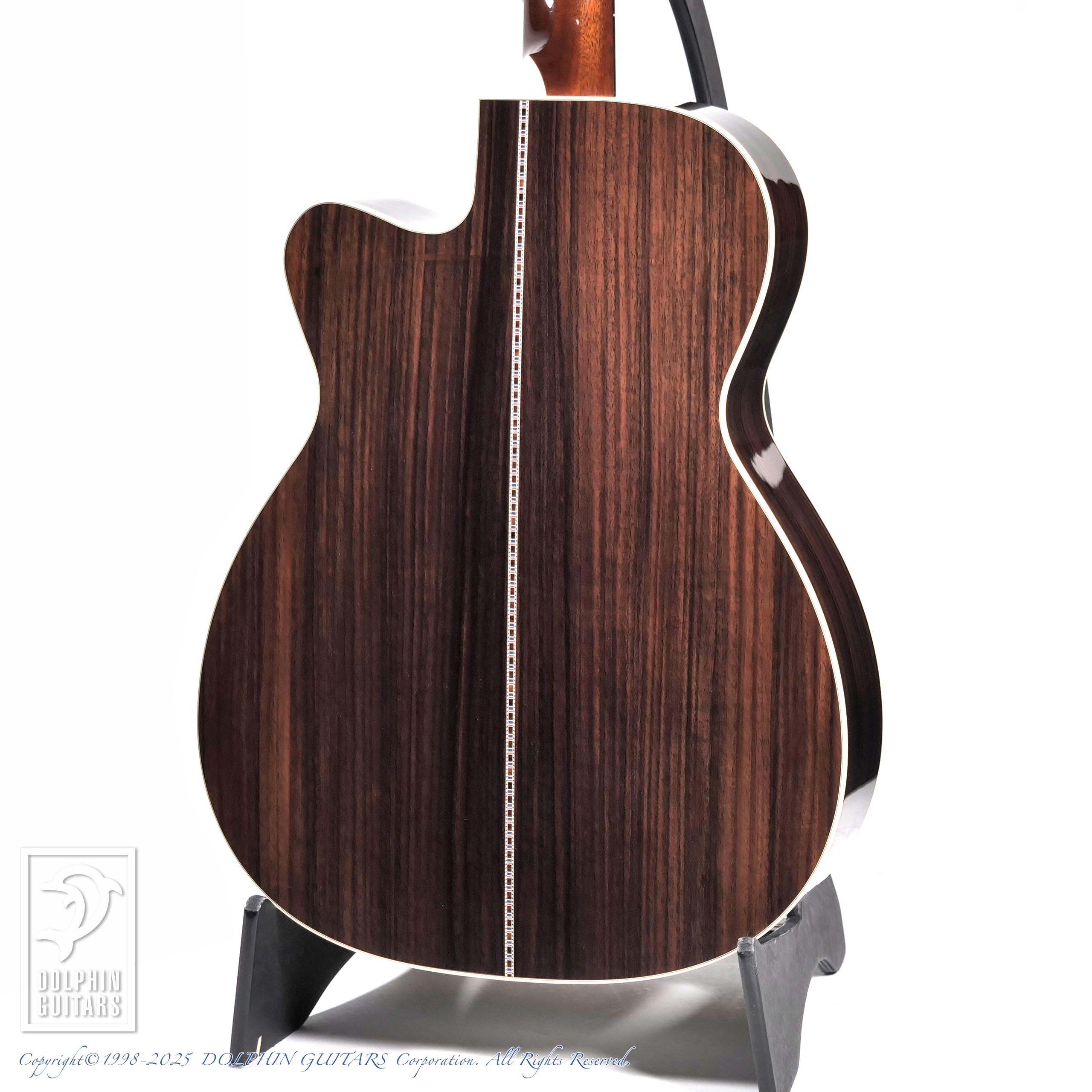 ローアクションなセッティング&ソフトタッチでも十分な音圧を得られるように設計されており、抜群の操作性能を誇ります。全体的にやや甘いトーンが心地よく、その中にキラリと感じるスプルースの高音特性、インディアンローズの持つ低域の重量感もバランス良く混ざり合います。OMシェイプの反応の良さはフィンガースタイルはもちろんのこと、しなやかなストロークでの弾き語りにもベストマッチします。