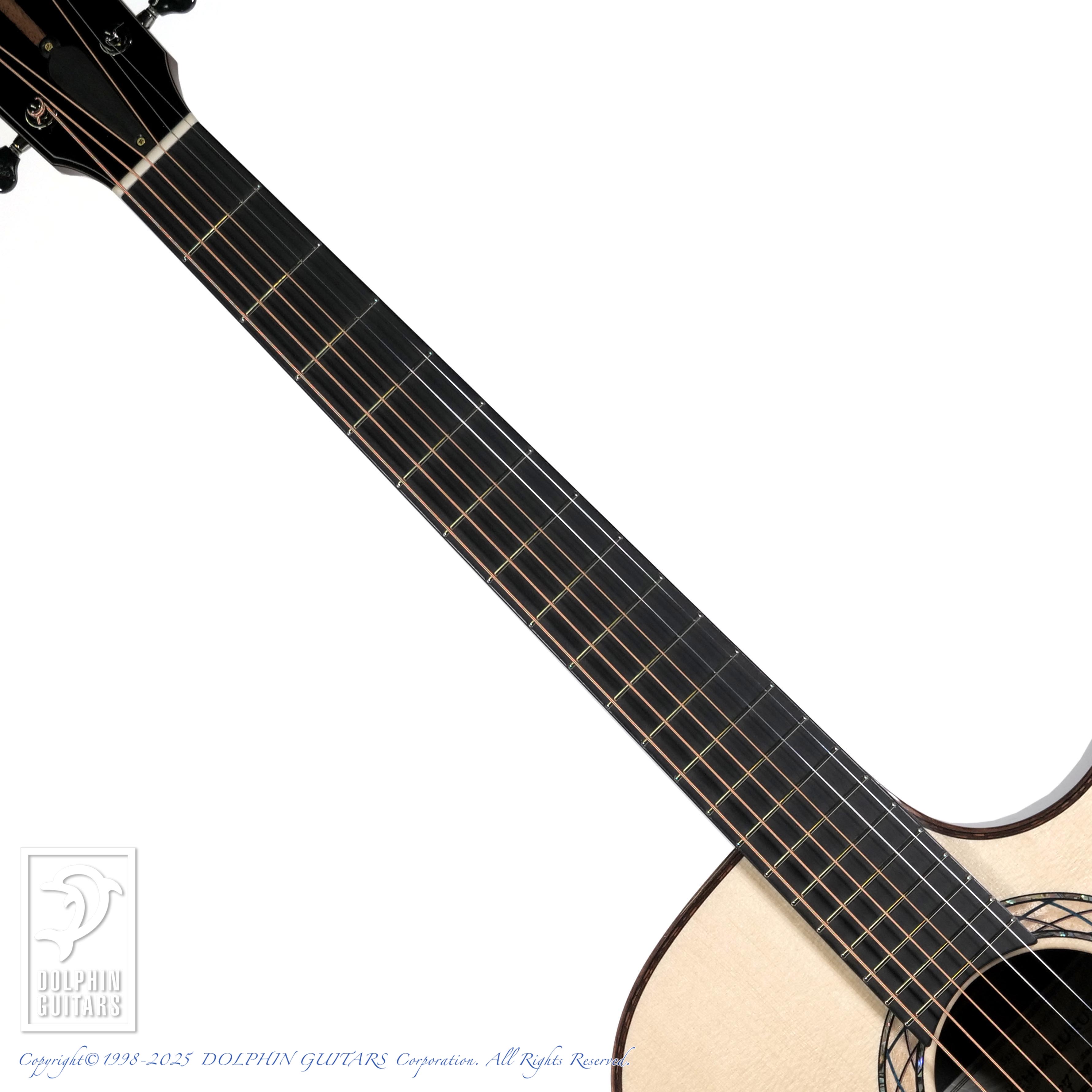 美しく輝くスイスムーンスプルースに、深い色味と杢が印象的なアフリカンブラックウッドを合わせた極上の組み合わせ。