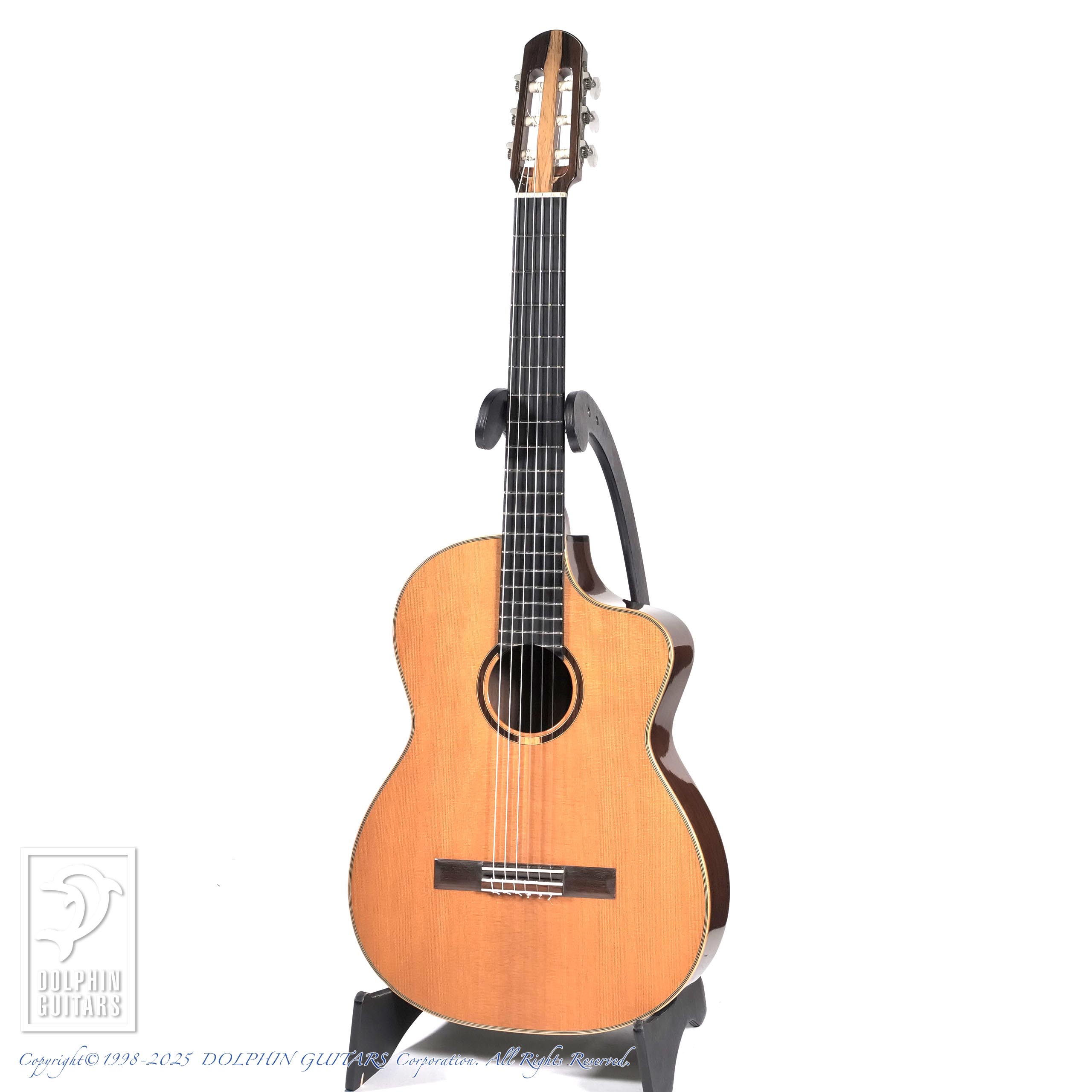 ジャーマンスプルースによる艶やかなトーンがとても上品で、正当派クラシックギターの鳴りを持ちつつ、キレのあるレスポンスが気持ち良いナイロンギター。ジャズ、サンバ・ボサノバのブラジリアン系のプレイヤー、洒落たコンテンポラリーなモダンエレガットをお求めの方にもオススメです。