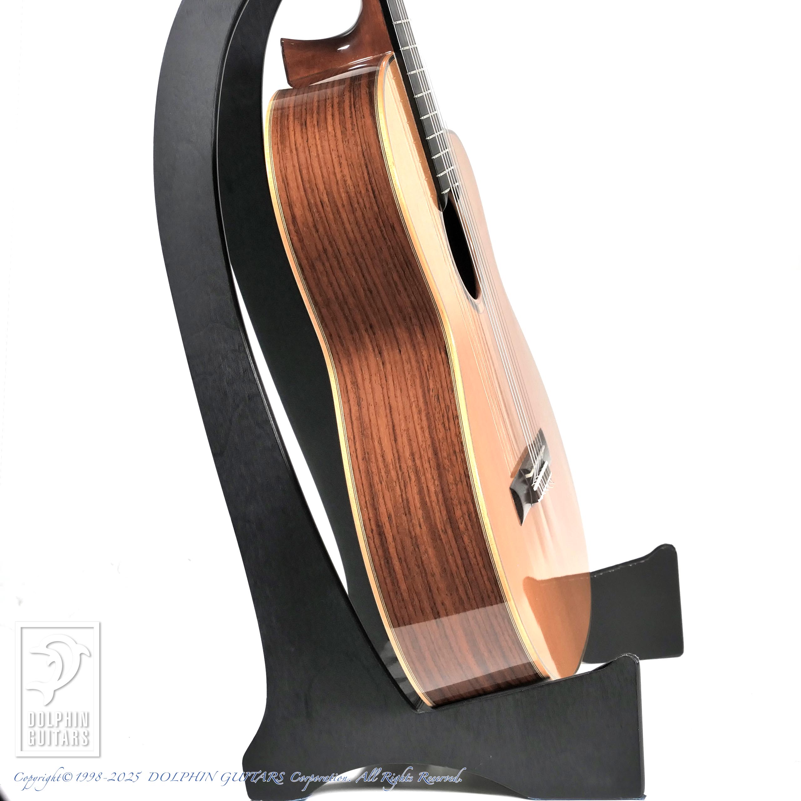 現行品よりも、ナット幅・ネック形状やサウンド面に於いてもクラシック色がやや強調されており、マイナーチェンジ前のデティールを楽しむことができます。一般的なクラシックギターよりも最大ボディ厚を約10mmほど薄めのボディながら生音でも十分な音量を確保し、取り回しの良さ、演奏性は抜群です。