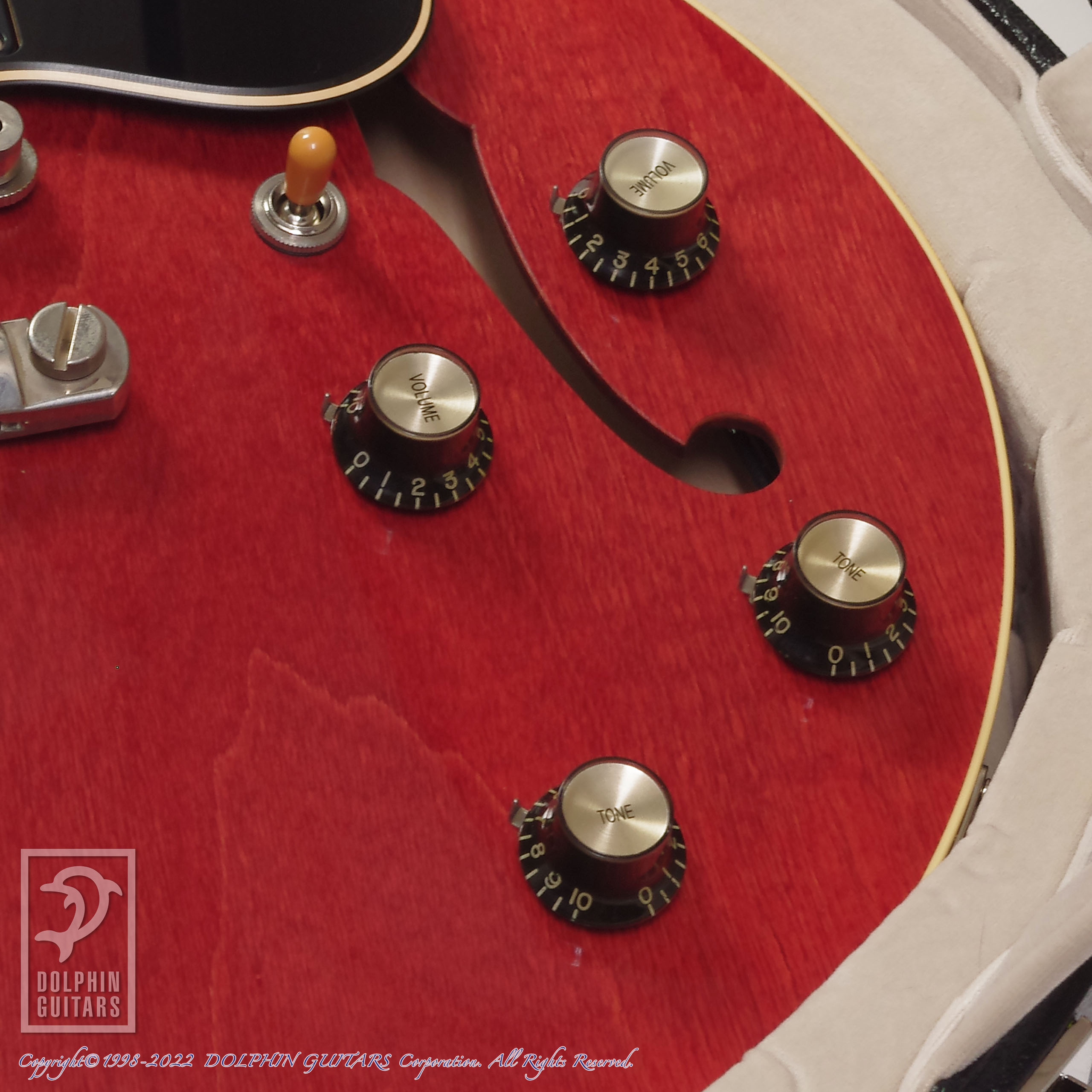3キロを下回るこの軽さ、従来のI-35と比較してもその軽さは明白で、木材のセレクトやラミネイト構造の違い、PUやコンデンサーまであらゆる部分でヴィンテージを意識したスペックとなっております。PUはヴィンテージシリーズ用に製作されているスローバックが標準。ネックグリップも厚みを僅かに薄く仕上げております。