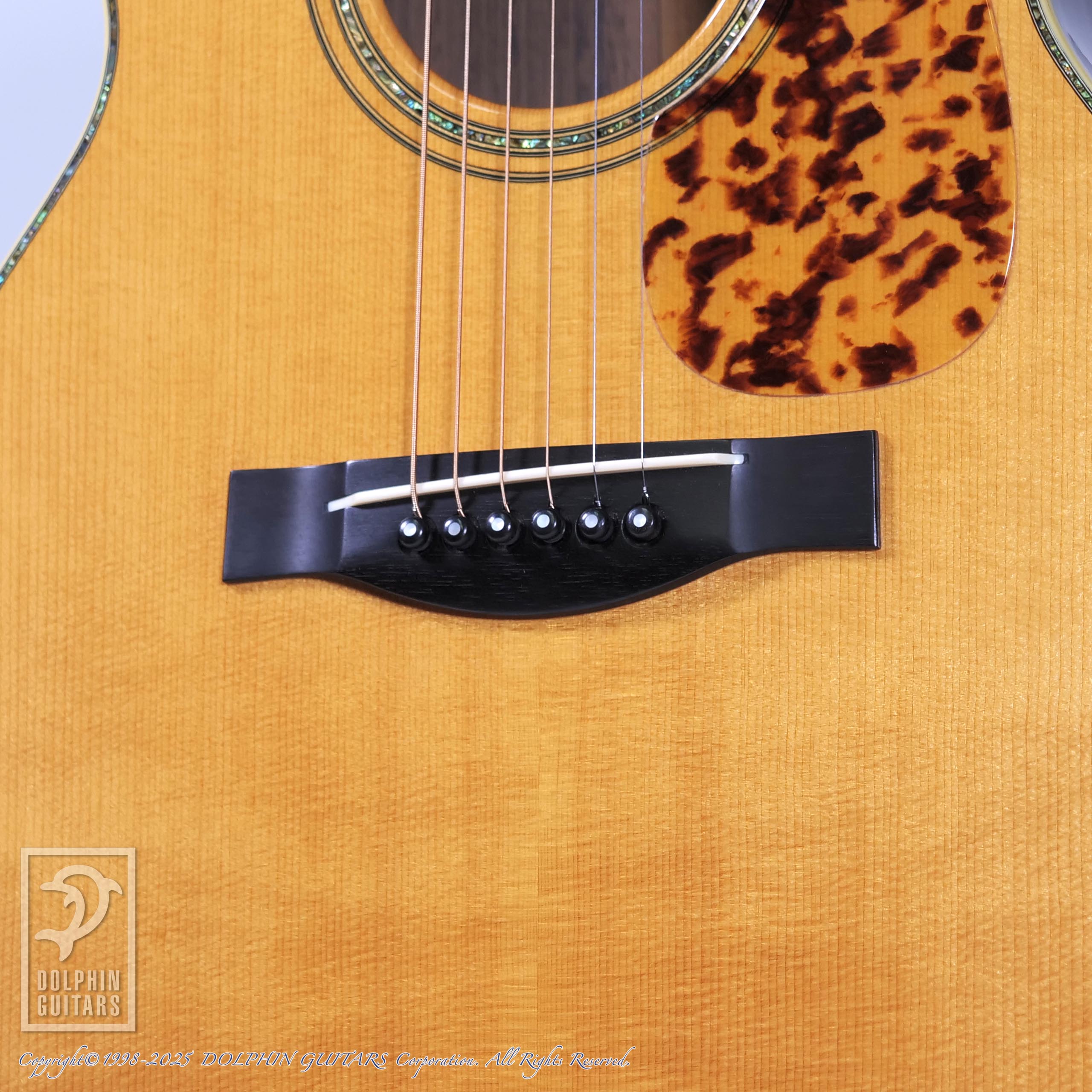 厳選されたアディロンダックスプルースに、美しいアバロン貝を惜しみなく用いたStyle-45装飾が施され、芸術品のような風格を漂わせる一本。OMシェイプ特有のボディバランスにより、構えたときのフィット感も抜群です。