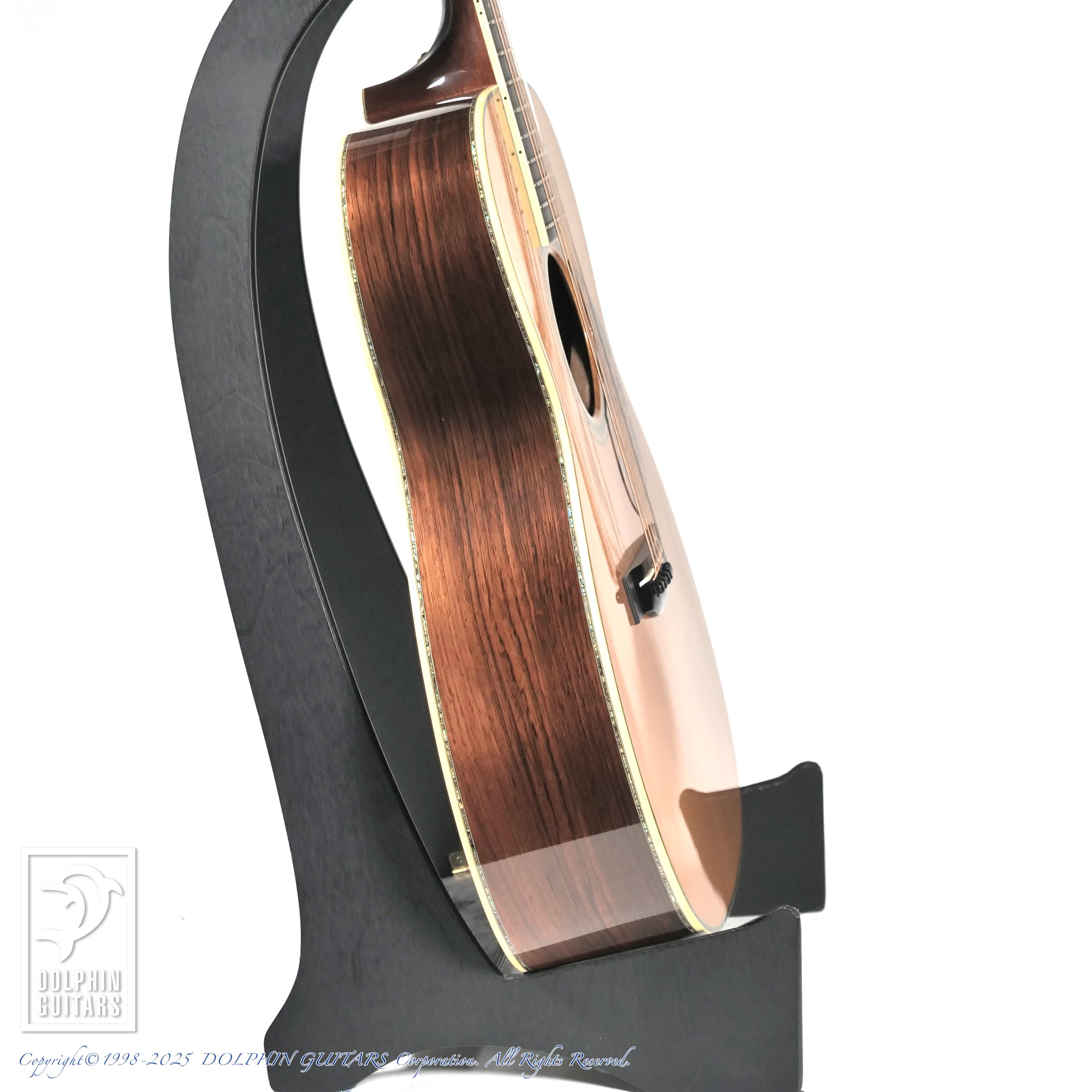 倍音豊かで芯のあるトーンは、フィンガーピッキングでの繊細な表現から、ストロークでの深みある鳴りまで幅広く対応。音の立ち上がりも良く、ソロスタイルのプレイヤーも納得のサウンドです。またOM表記となっておりますが、実際は000スケールとなっている為、弾きやすく左手もノンストレスで弾いていただけます。