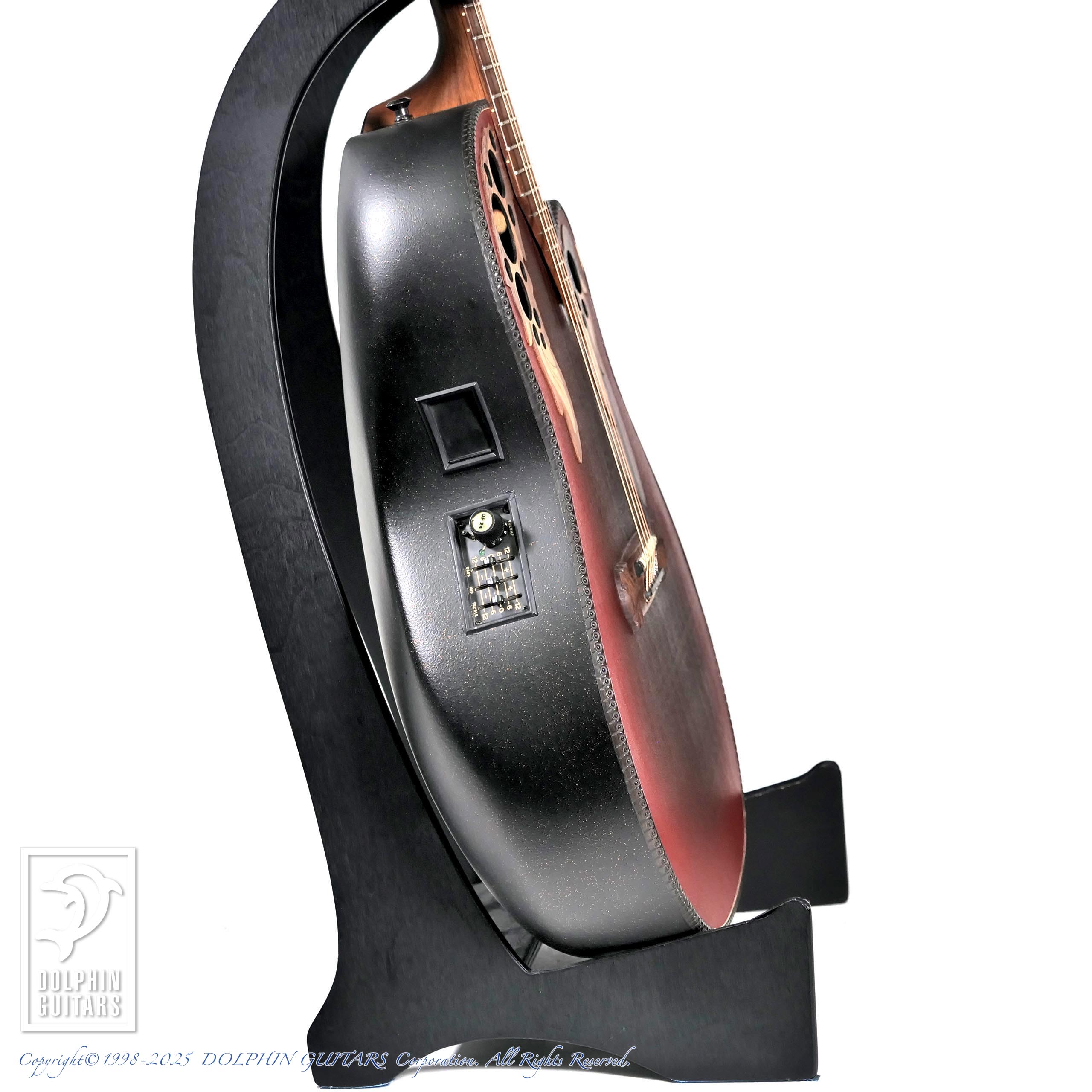 カッタウェイ+レッドの組み合わせは数も少なく人気のモデルと言えるでしょう。散りばめられたラメと相まってライブで目立つ事間違い無しです。アダマス独特のガツンと太く腰のある中低域、分離良く抜けの良い高域が魅力、ストローク時のまとまりの良さは、この機種でしか味わえないでしょう。
