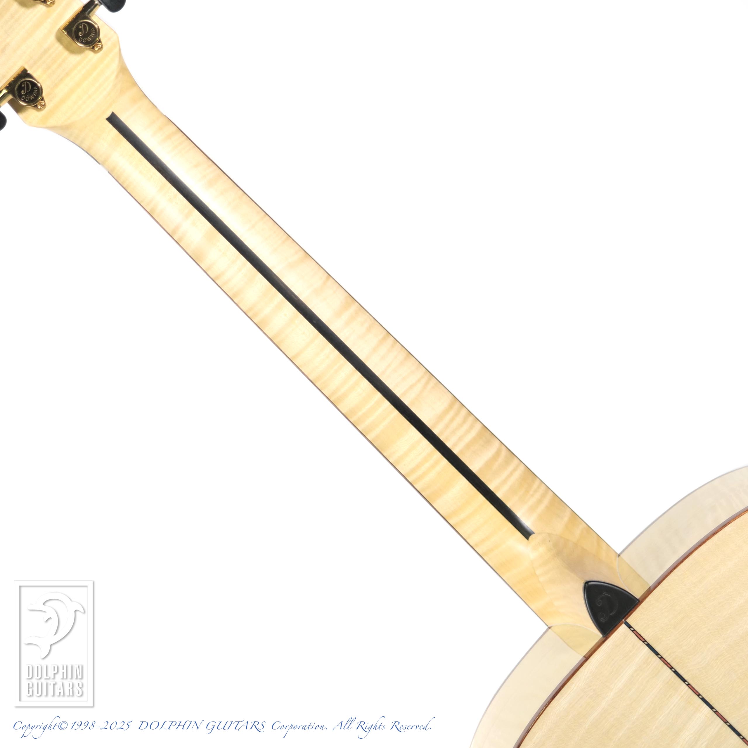 モデル名のACEROとは、イタリア語で「楓」を意味する言葉。その名が表す通りACEROは、ボディ、ヘッドストック、さらにはネックに至るまでその全てを華麗なフレイム柄をもつメイプル材で統一した、とても美しいギターです。
