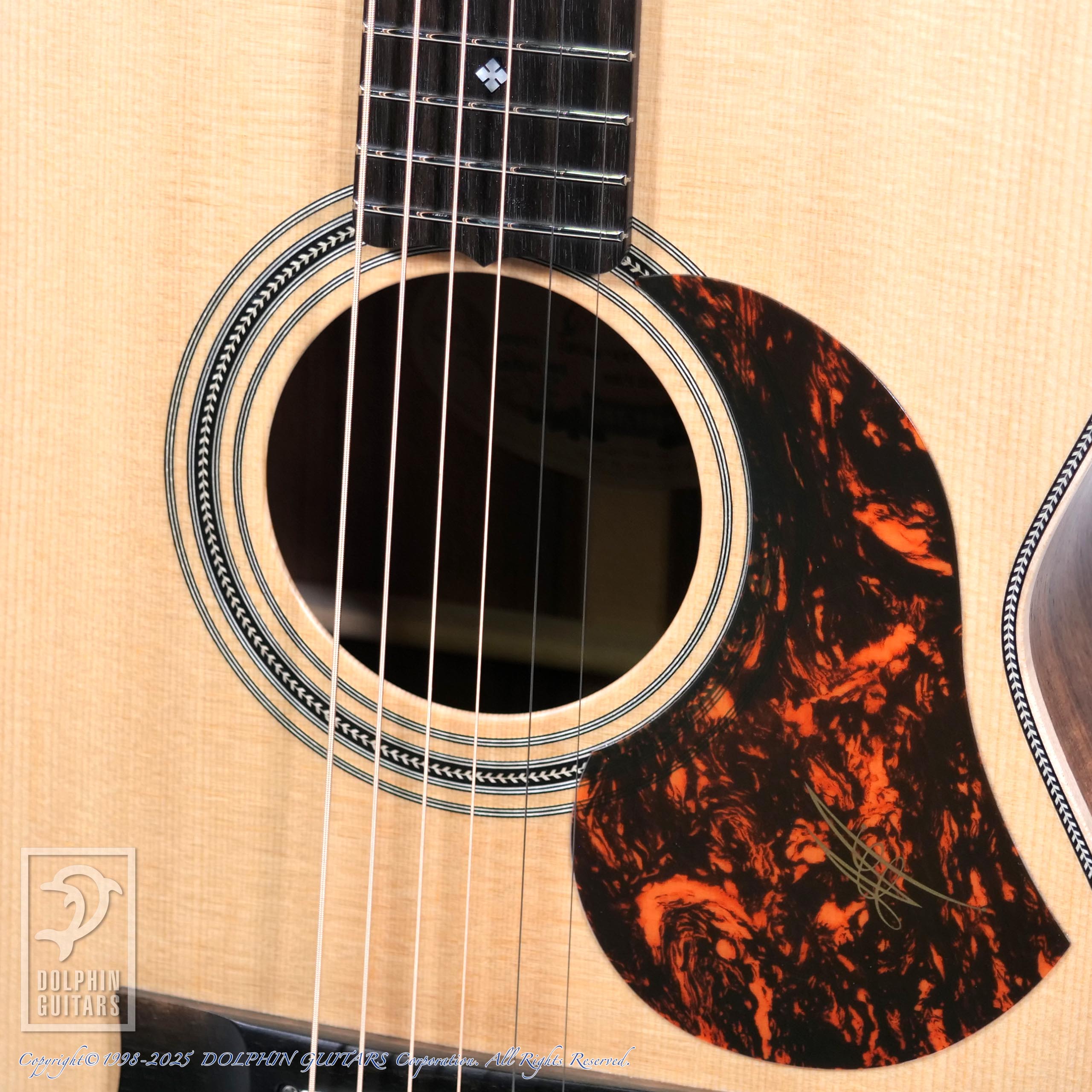 搭載されたAP5pro・ピックアップ・システムは、オリジナルのアンダーサドル・PUにコンデンサーマイクを併用する事により、奥行きのある音域と抜群なエアー感に加え、ボディー・ヒット音も余すことなくアウトプットします。また、高い出力を持つプリアンプを内蔵しておりますので、外部プリアンプ等を使用せずとも、そのままプラグインしていただければ極上のサウンドをお楽しみいただけます。PUとマイクVolは完全に独立しており、手元での出力バランス調整が可能ですのでお好みや現場に合わせてご使用下さい。