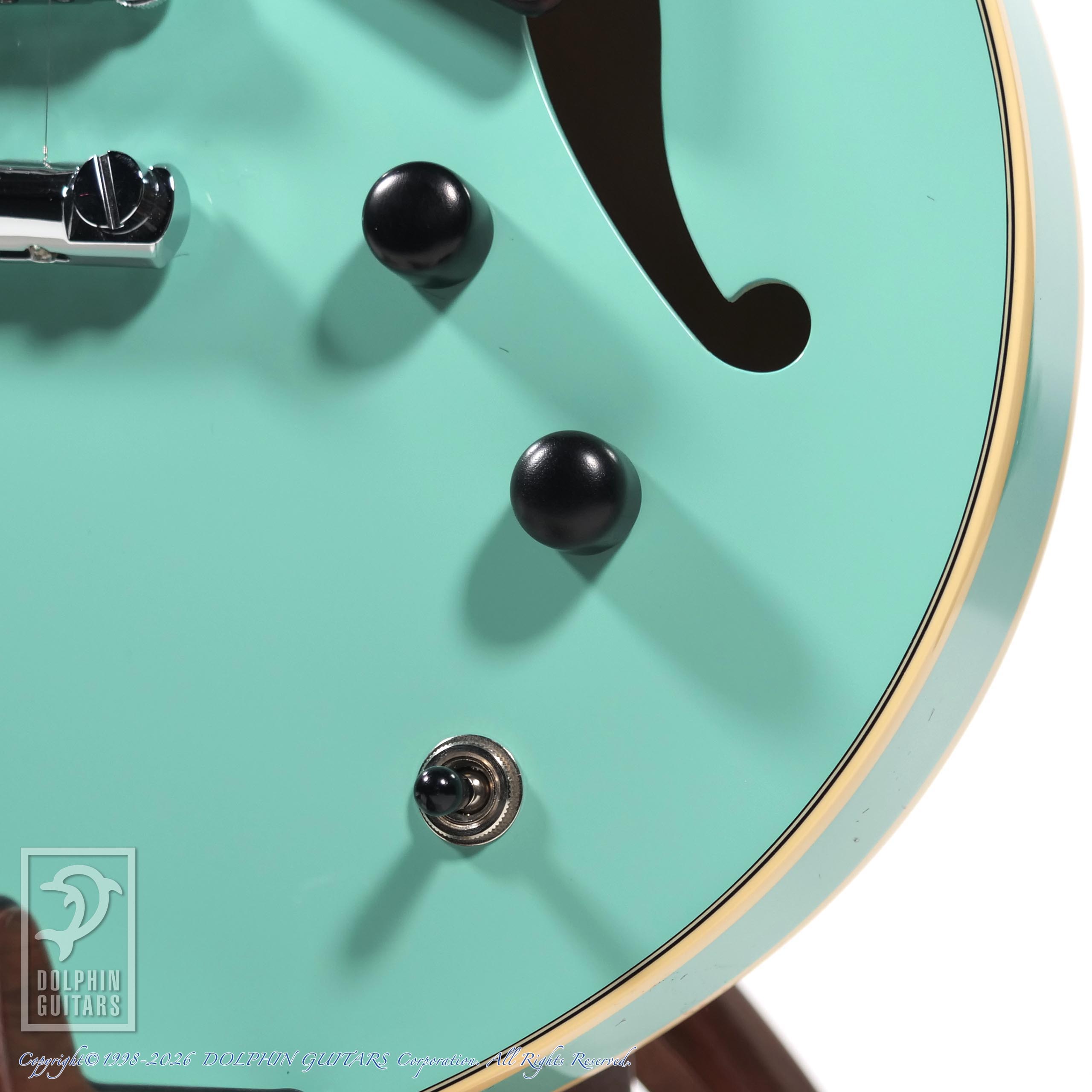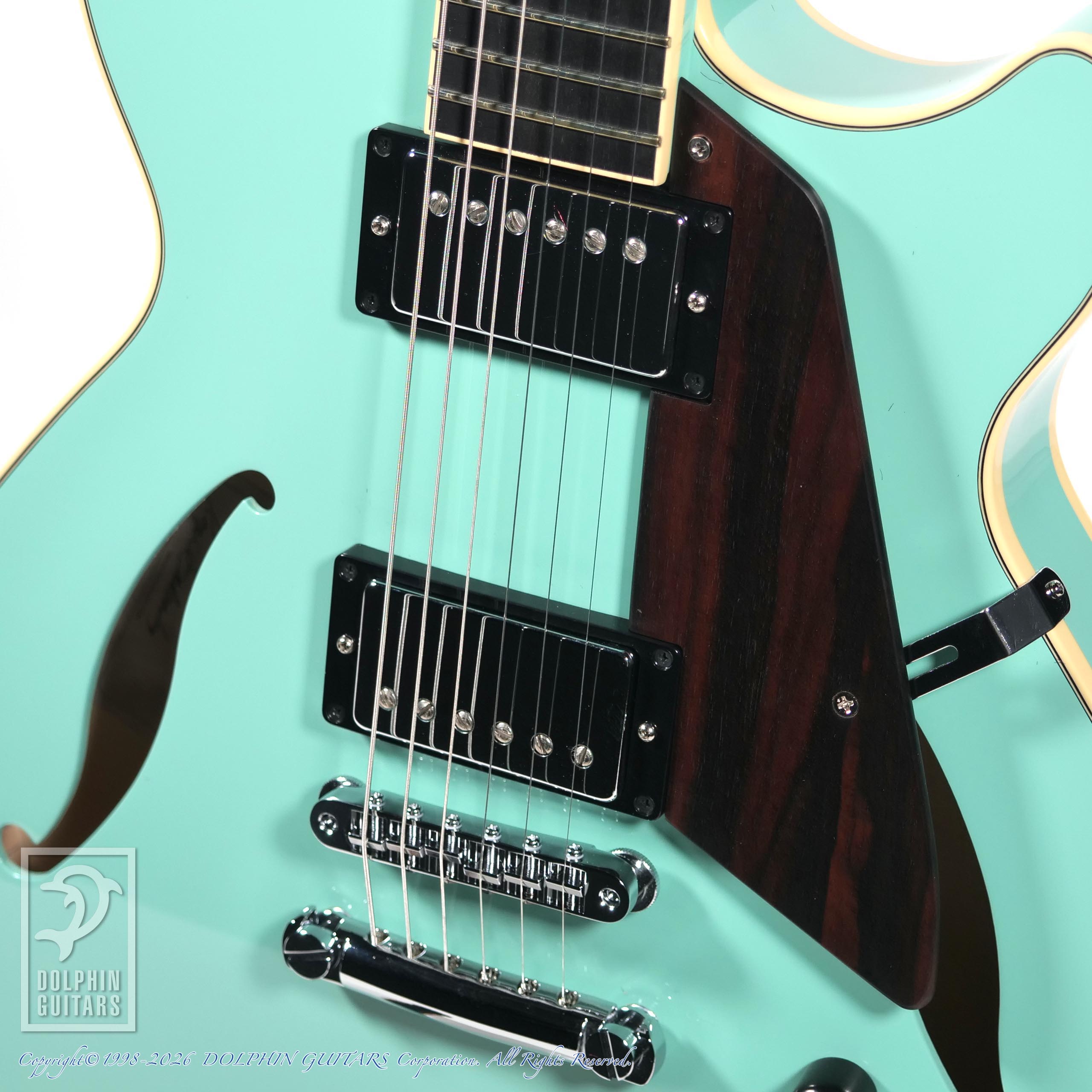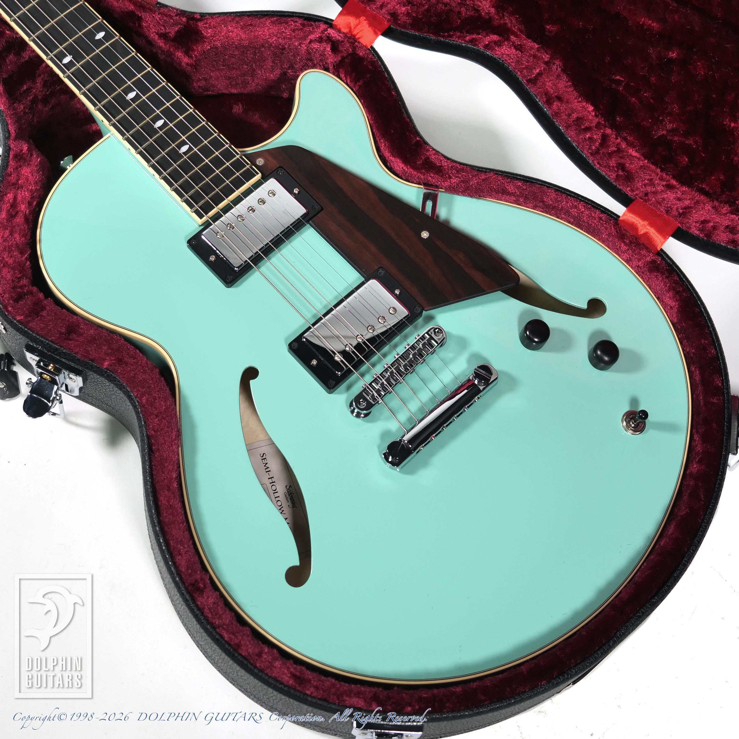 本器はコンパクトなフルアコをベースにボディ厚を1-3/4インチにし、センターブロックは軽量化したスプルースを採用し、抜群のプレイアビリティーを誇るディープカッタウェイ仕様のSemi-Hollow (T.Blue)。【一本限定スペシャルカラー】
