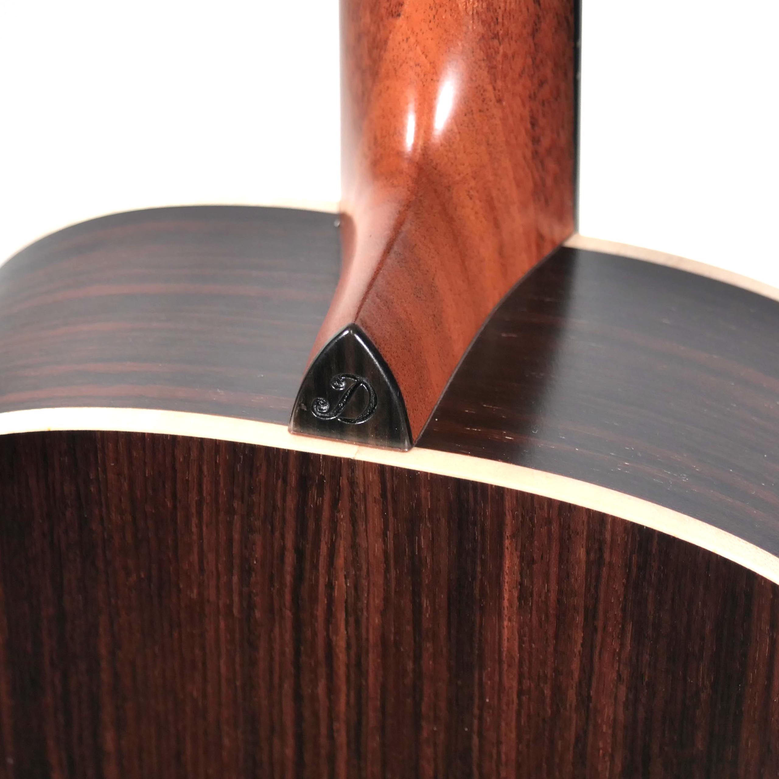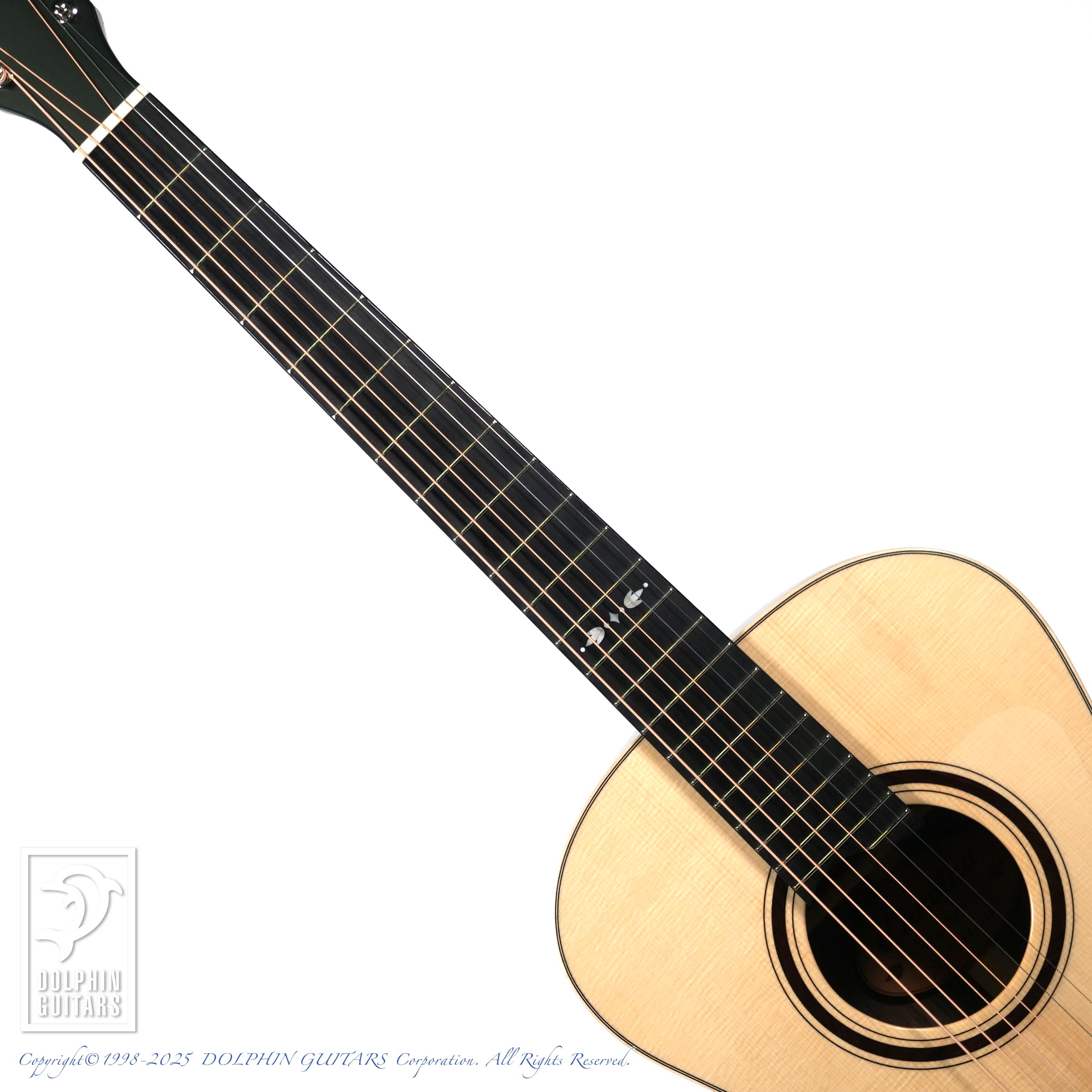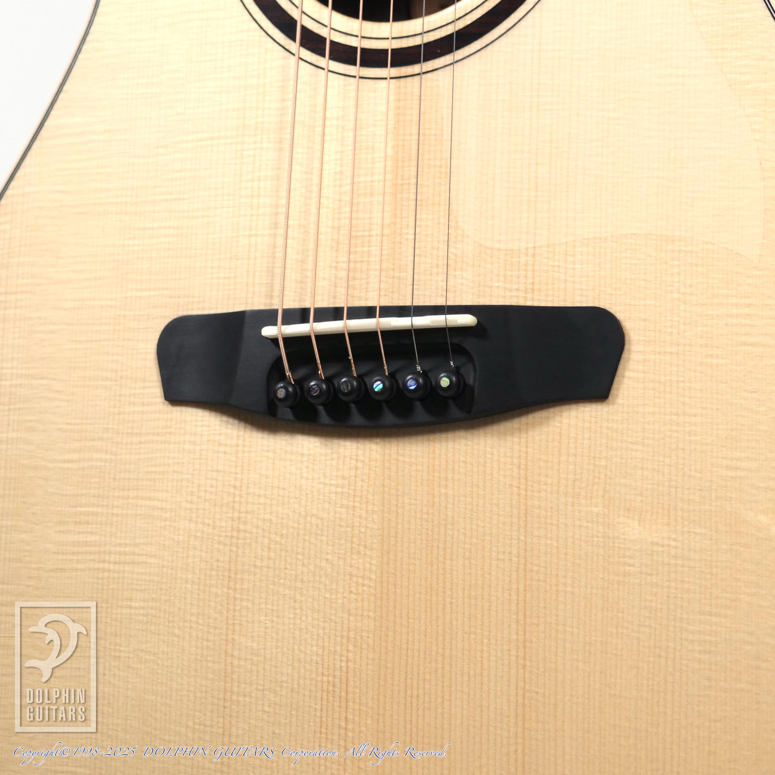 芯の有る明瞭な音像が特徴のインディアン・ローズウッド材と、スイス・ムーン・スプルースまたはドロミテ・スプルースとを組み合わせたボディには、シンプルながらしっとりとした高級感を漂わせるフレイム・メイプル・バインディングを施しています。