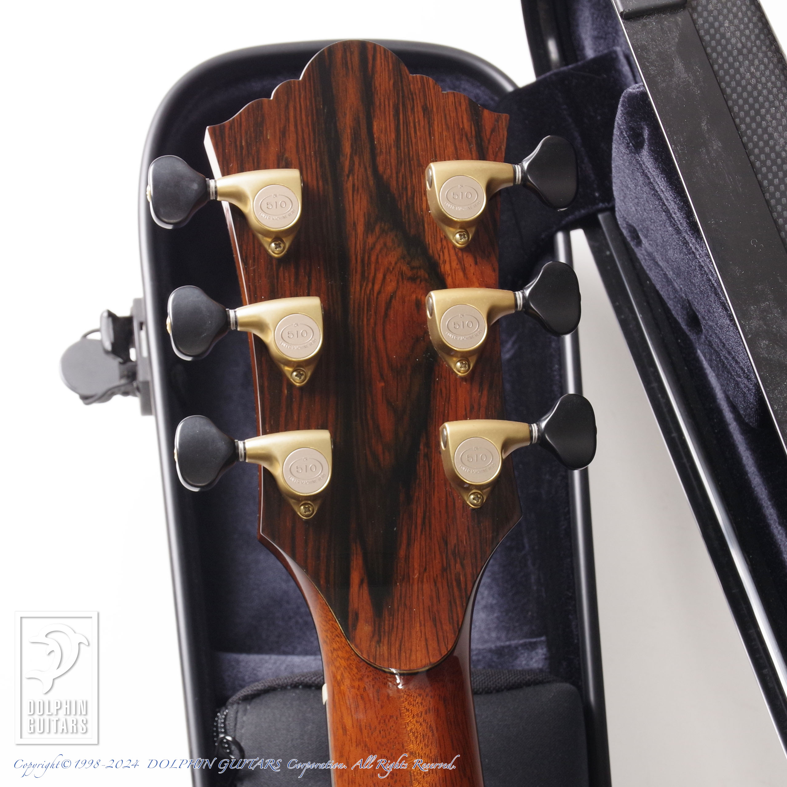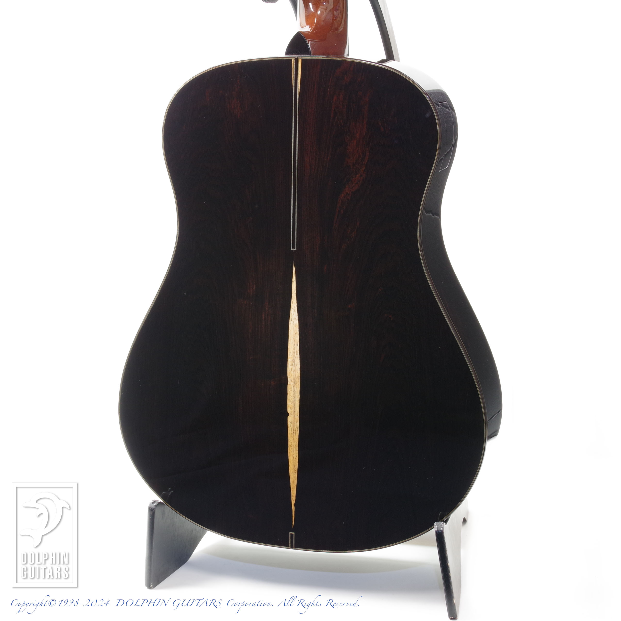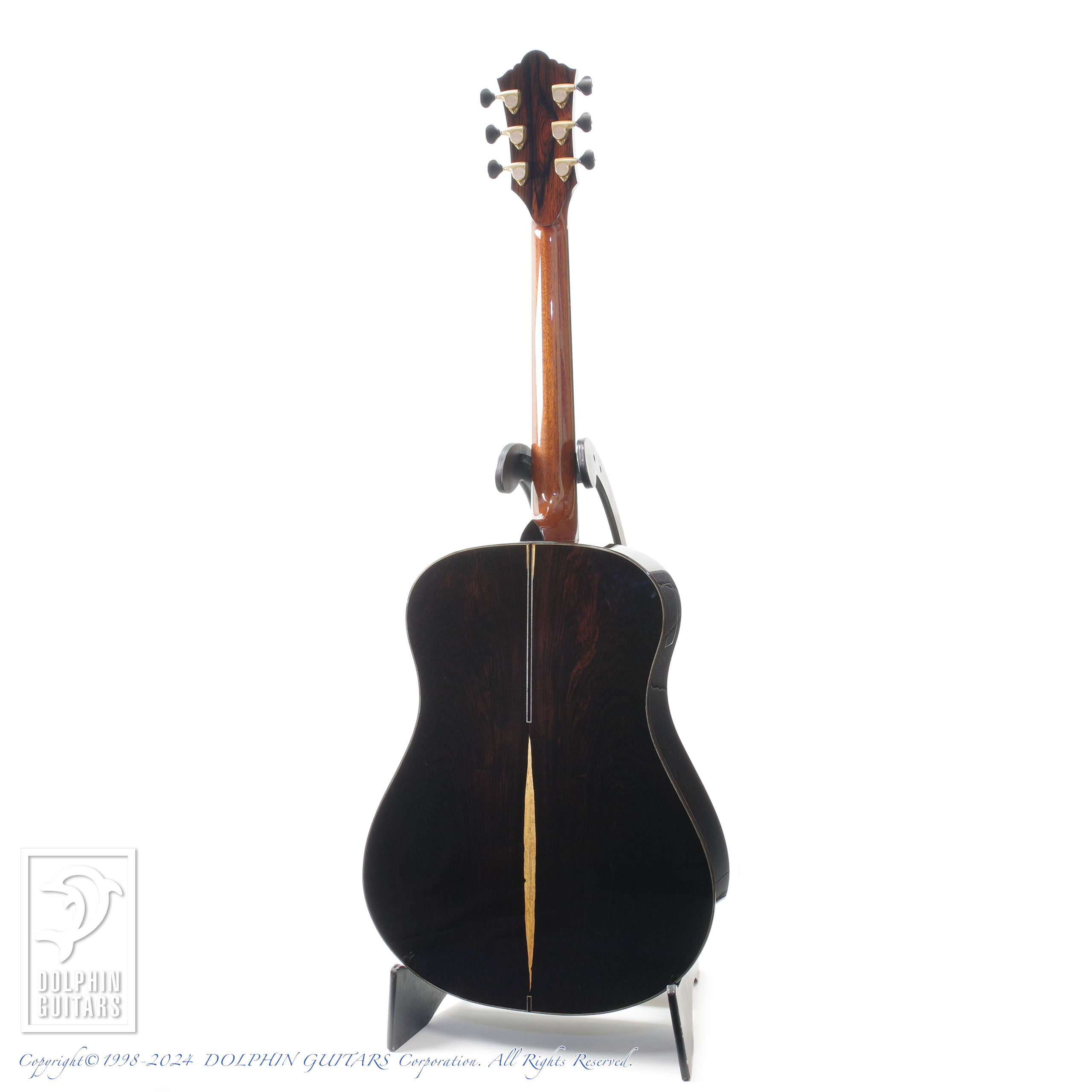 ドレッドノートをわずかに小振りにしたモディファイドDに、S&Bは超重量級なアフリカンブラックウッドを採用。接着剤にはニカワを使用し、サイドサウンドポートや小川インレイクラフトによるヘッドインレイなどなど、世界に1本だけの個性的なモデルであります。