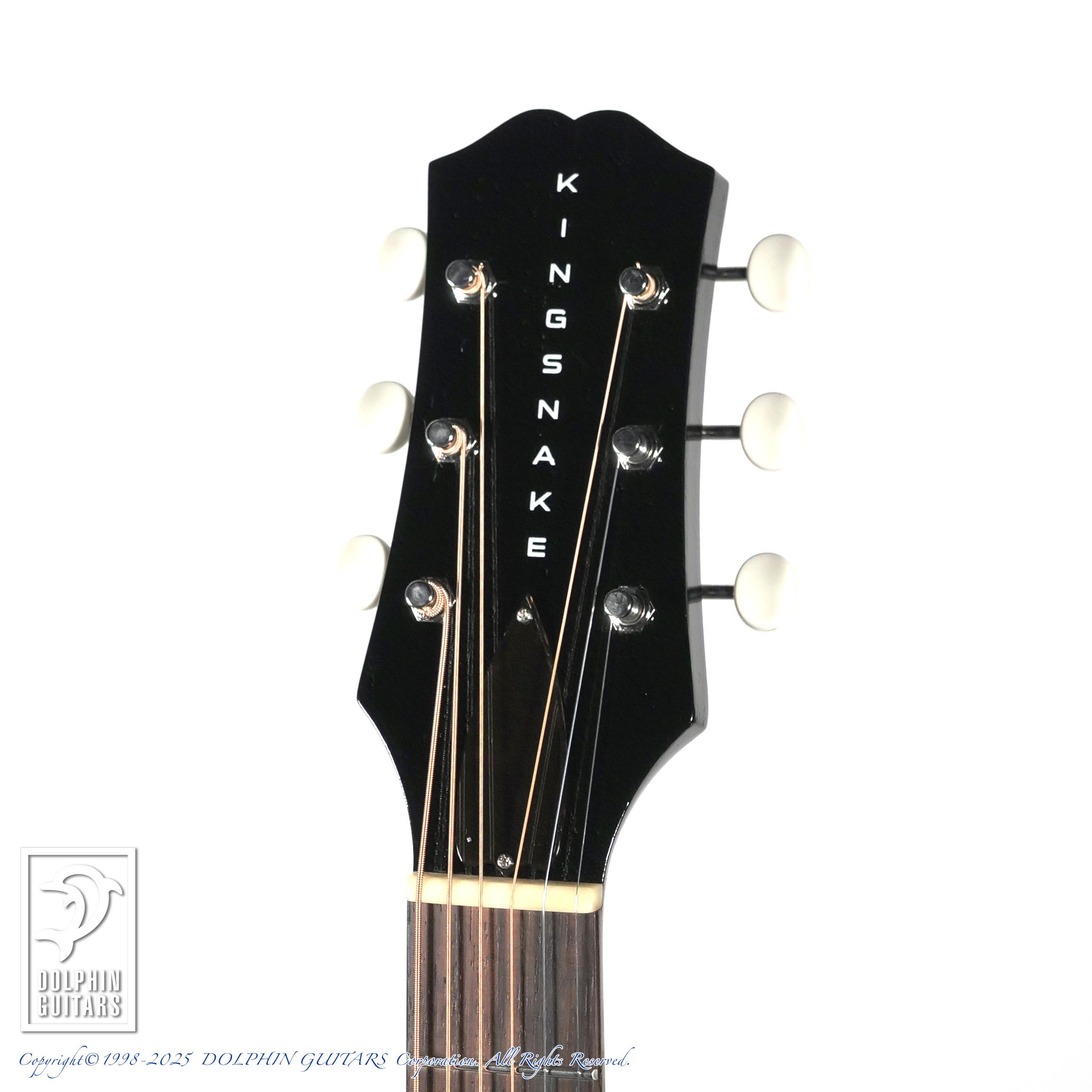 かつてのホワイト・カントリー・プレイヤー達はギター、フィドル、マンドリンの中にガラガラヘビのシッポを入れていた。「いい音がするんだよ」と。そして、MOJOがあると言う意味だそうだ(ブードゥー教において金運やギャンブル運、女性運を向上させるための意味)。話しを日本に向ければ、ヘビは、弁才天の使いとして富をもたらすものとして有名であり、縁起が良い動物として知られる。古くから神様の使いとも言われており、運気アップアイテムとしては欠かせないもの。それを総合し、King Snake(キングスネーク)と言うブランドが生まれました。