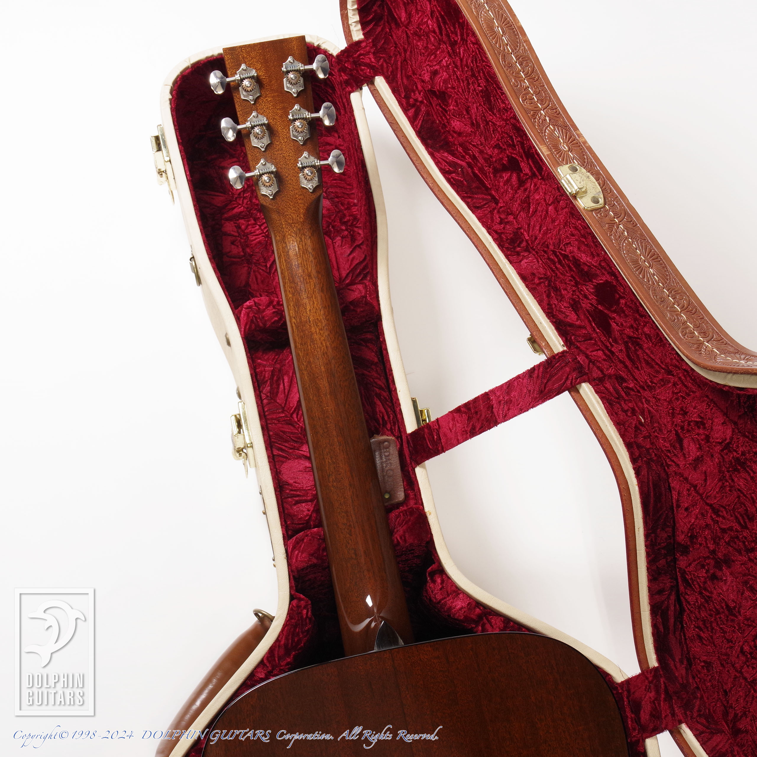 本器はご存じクラレンス・ホワイトが愛用したマーティンD-28を復刻させたCWのマホガニーモデル、さらにサンバーストカラーにヴァーニッシュフィニッシュのオプションが加わったカスタムモデルのUSED品。