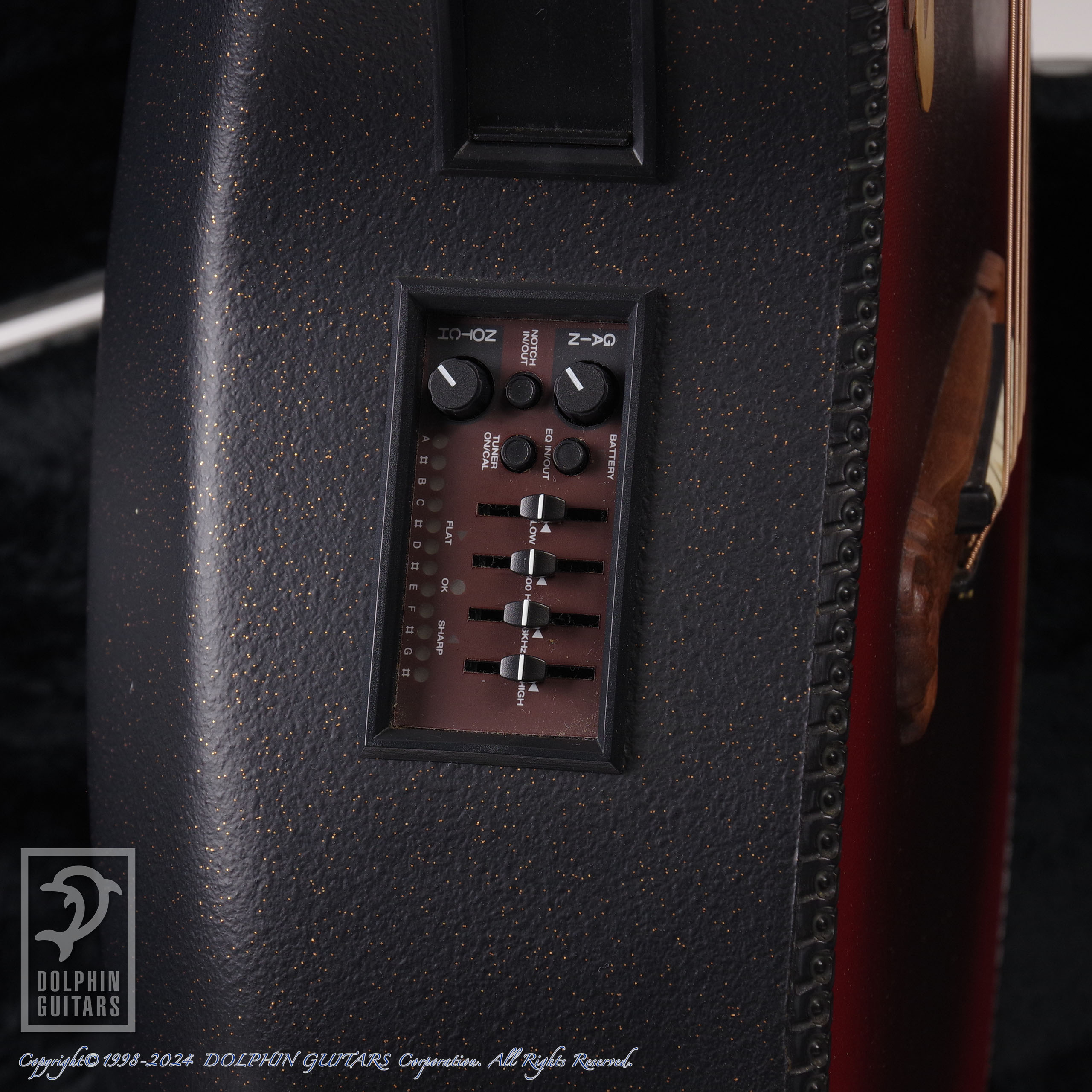現在の弦高は 6弦 1.8mm / 1弦 1.5mm のローアクションセッティングとなっており、サドル底のシムは3枚入った状態となっています。ネックコンディションも良好であり、ローポジションからハイポジションまで弾きやすいセッティングとなっていますが、現状より弦高の高いセッティングをご希望されるようでしたらオベーション純正のシムを用いて調整いたしますので、ご購入時にお申し付けください。