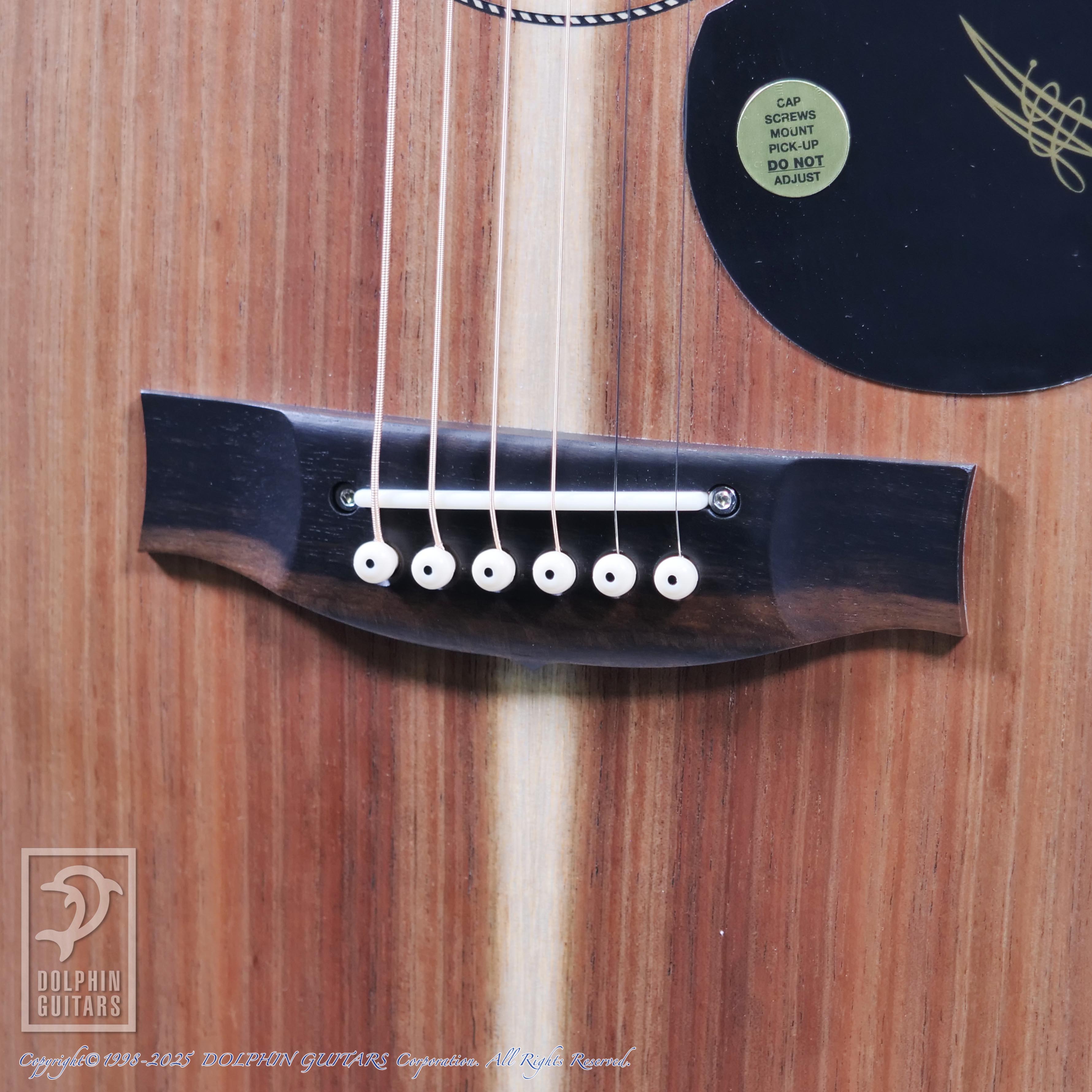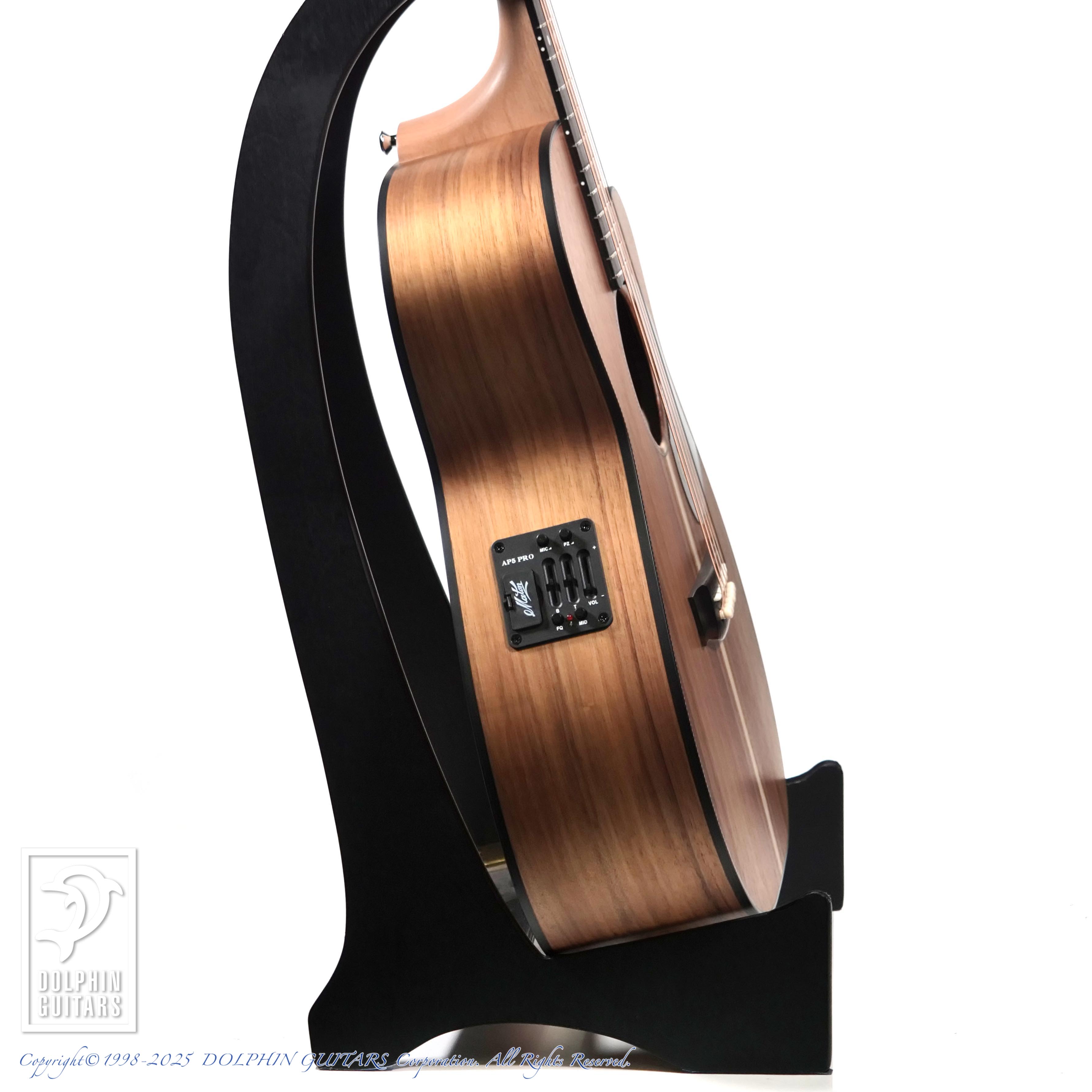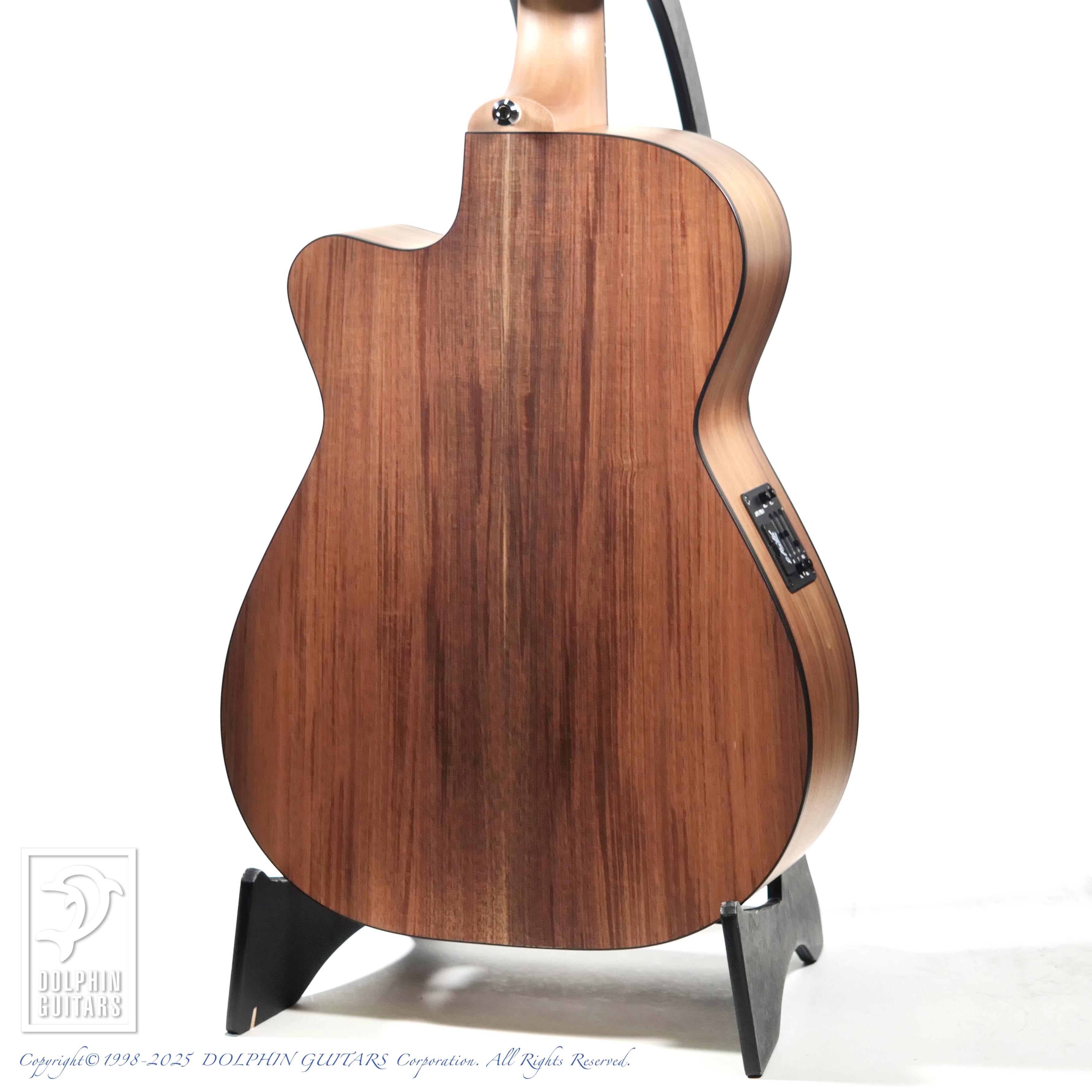 オーストラリアンブラックウッドはアカシア属の植物であり、ハワイアンアンコアも同じアカシア属。木目や色合いも非常に似ており、明るくハリのあるサウンドのコアに比べ、ブラックウッドはローミッドが強調され、ややダークな印象で、他のスプルーストップのモデルとはハッキリと異なるサウンドキャラクターです。