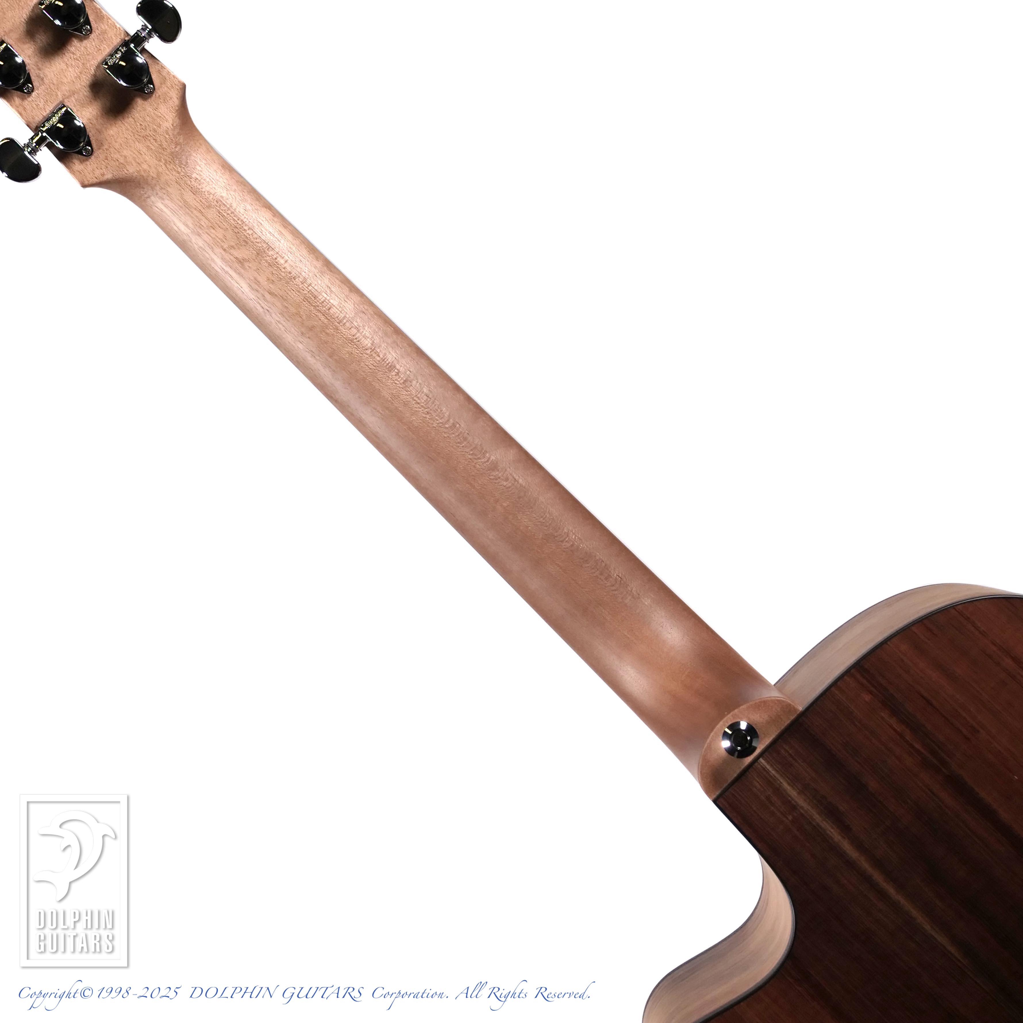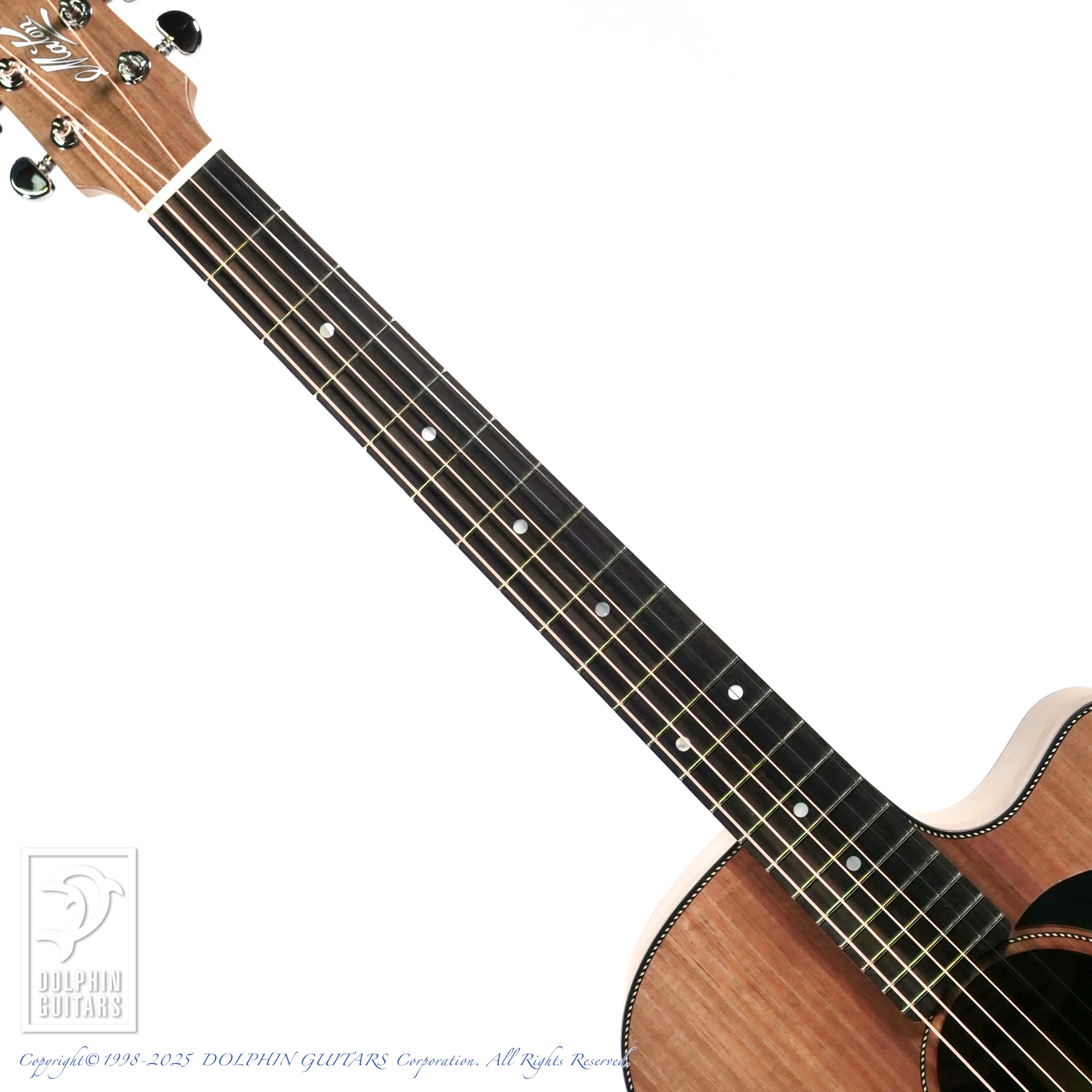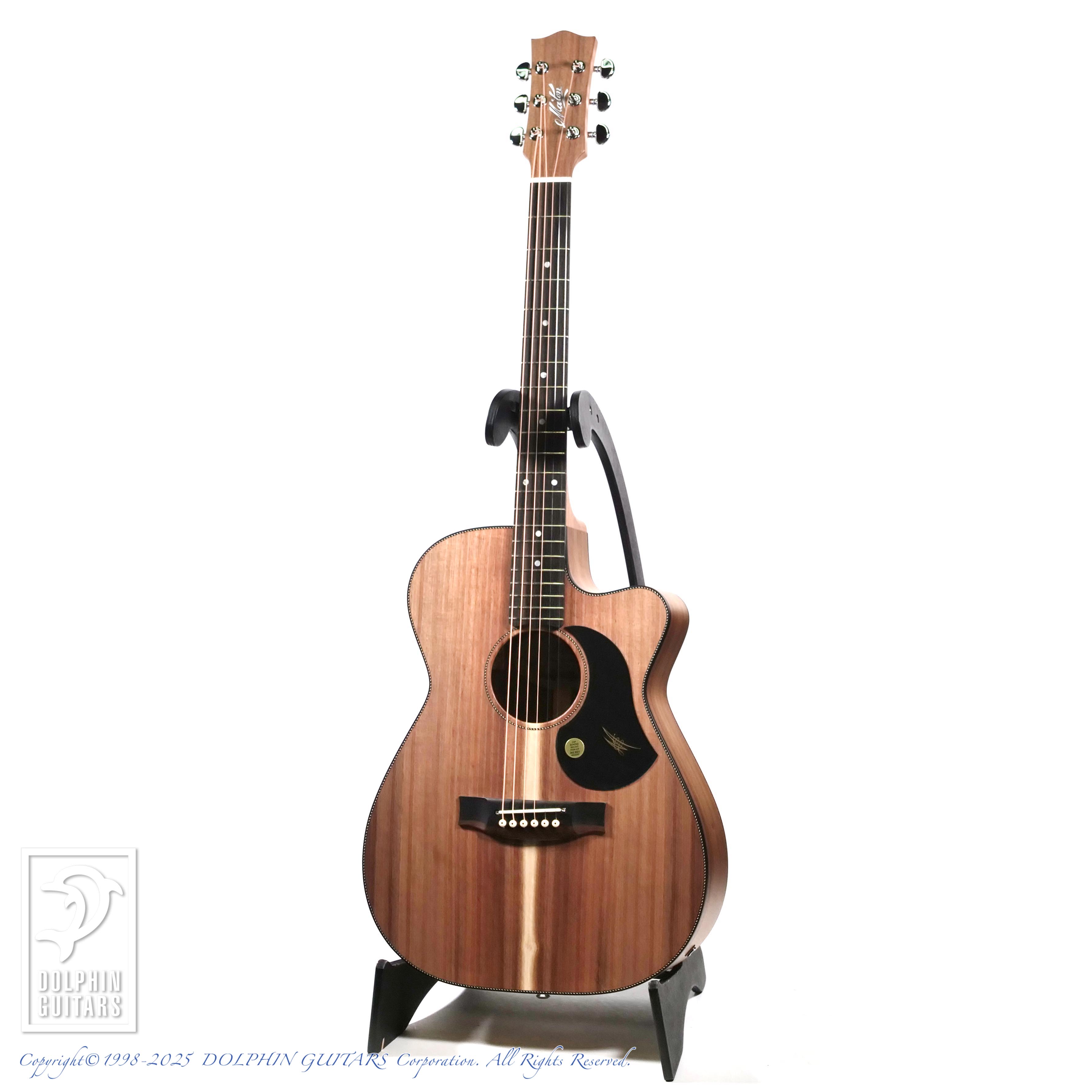 オーストラリアンブラックウッドはアカシア属の植物であり、ハワイアンアンコアも同じアカシア属。木目や色合いも非常に似ており、明るくハリのあるサウンドのコアに比べ、ブラックウッドはローミッドが強調され、ややダークな印象で、他のスプルーストップのモデルとはハッキリと異なるサウンドキャラクターです。
