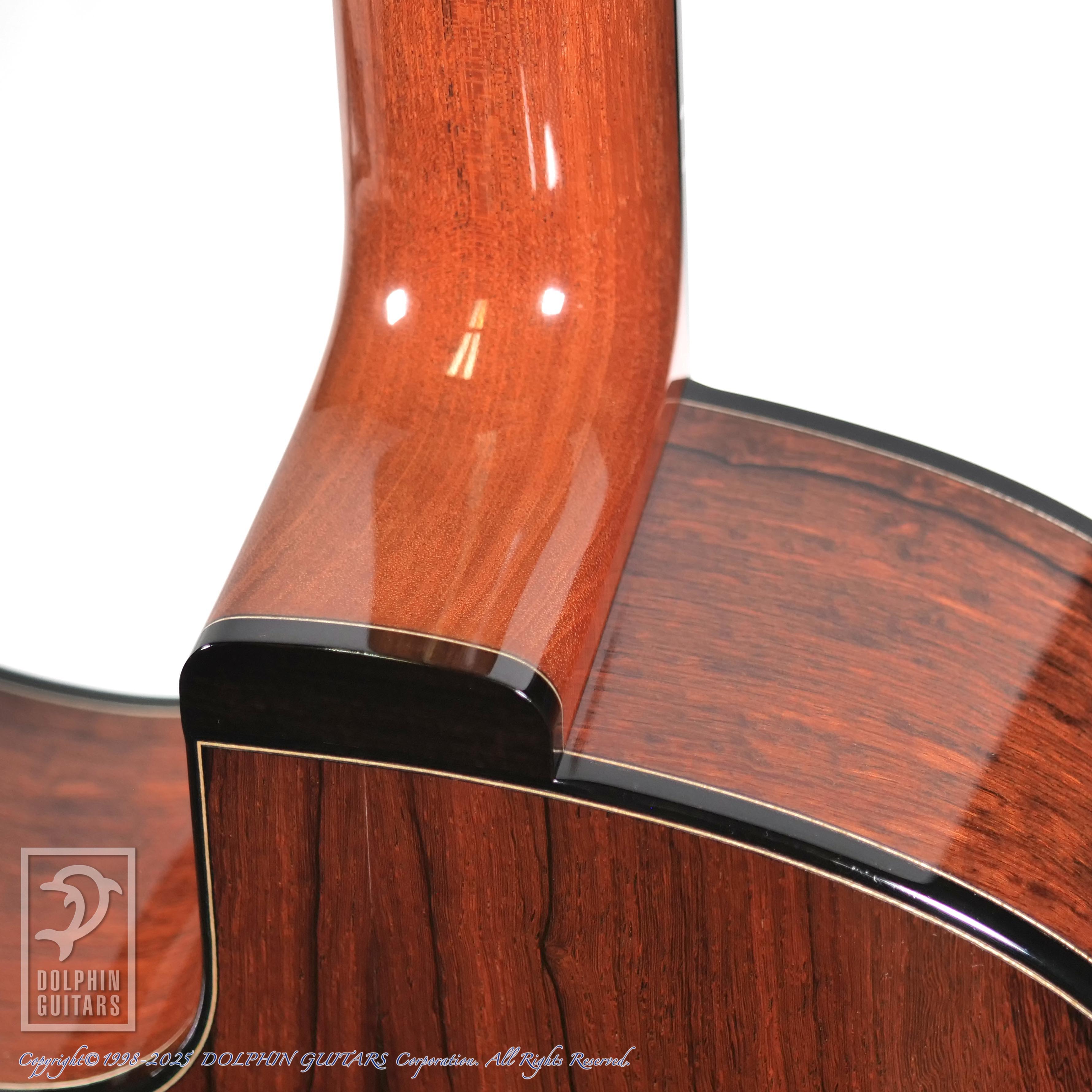 サイドバックに使われるマダガスカル産出のローズウッドは、マダガスカル政府により、ここ10年で規制と緩和を繰り返し、現在は一層厳しく規制されている希少材。名木ハカランダに似た低域の迫力とレスポンスを持つ優れたトーンウッドです。