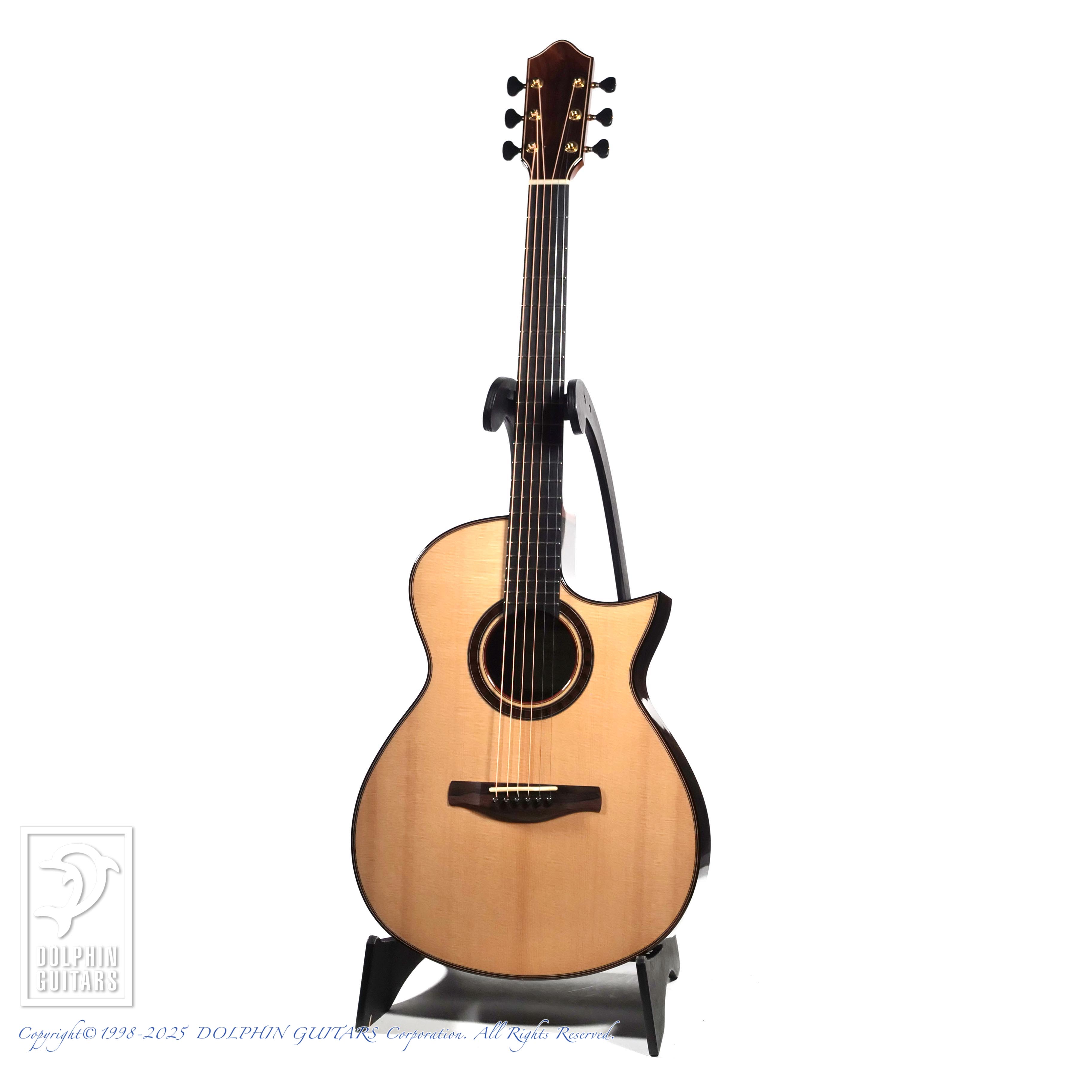 新月伐採によるスイススプルースの上品さと、マダガスカルローズのディープでメロウなサウンドキャラクターが前面に押し出され、大変見事なサウンドに仕上がっております。音量もたっぷりとあり、一音一音が全ポジションで豊かに響きます。