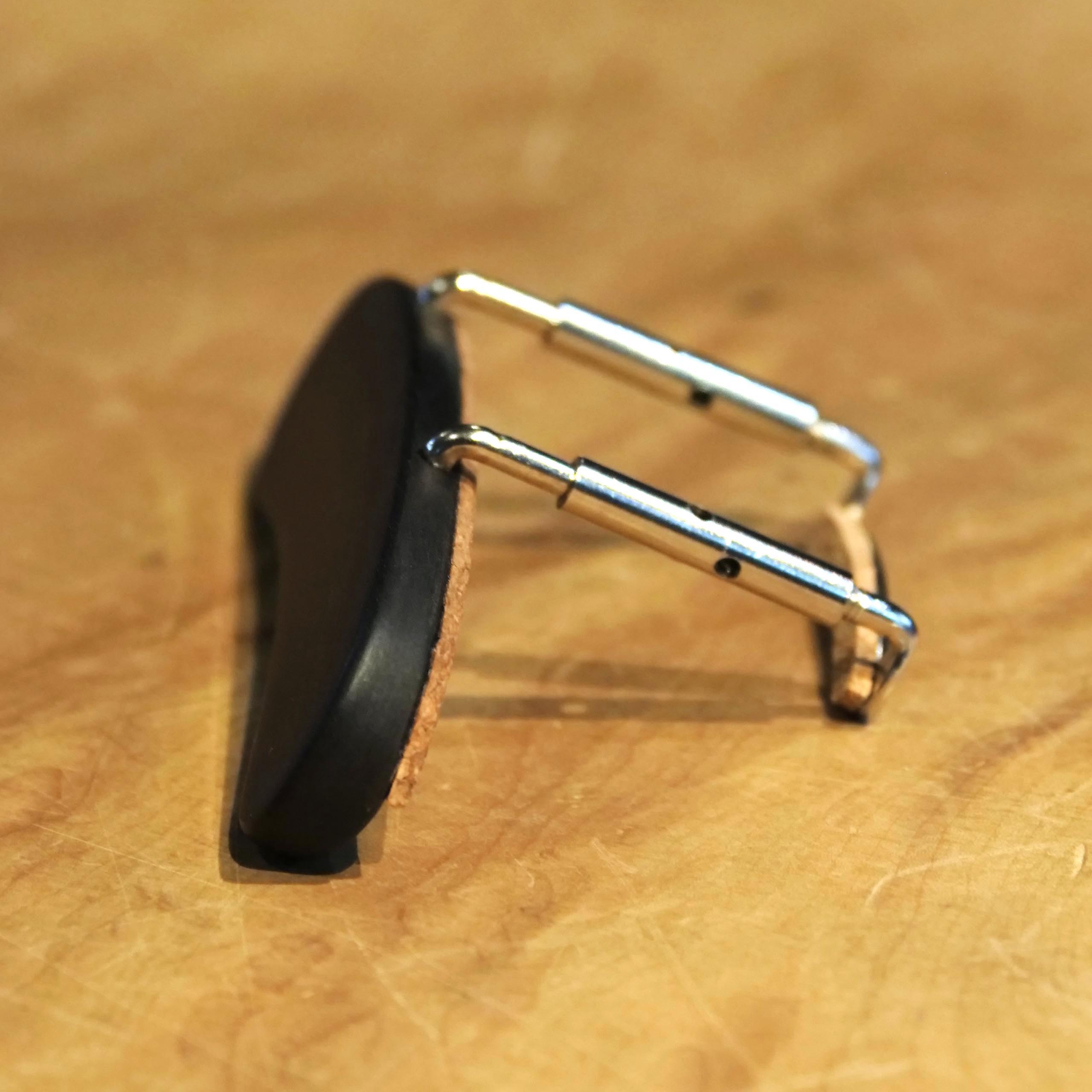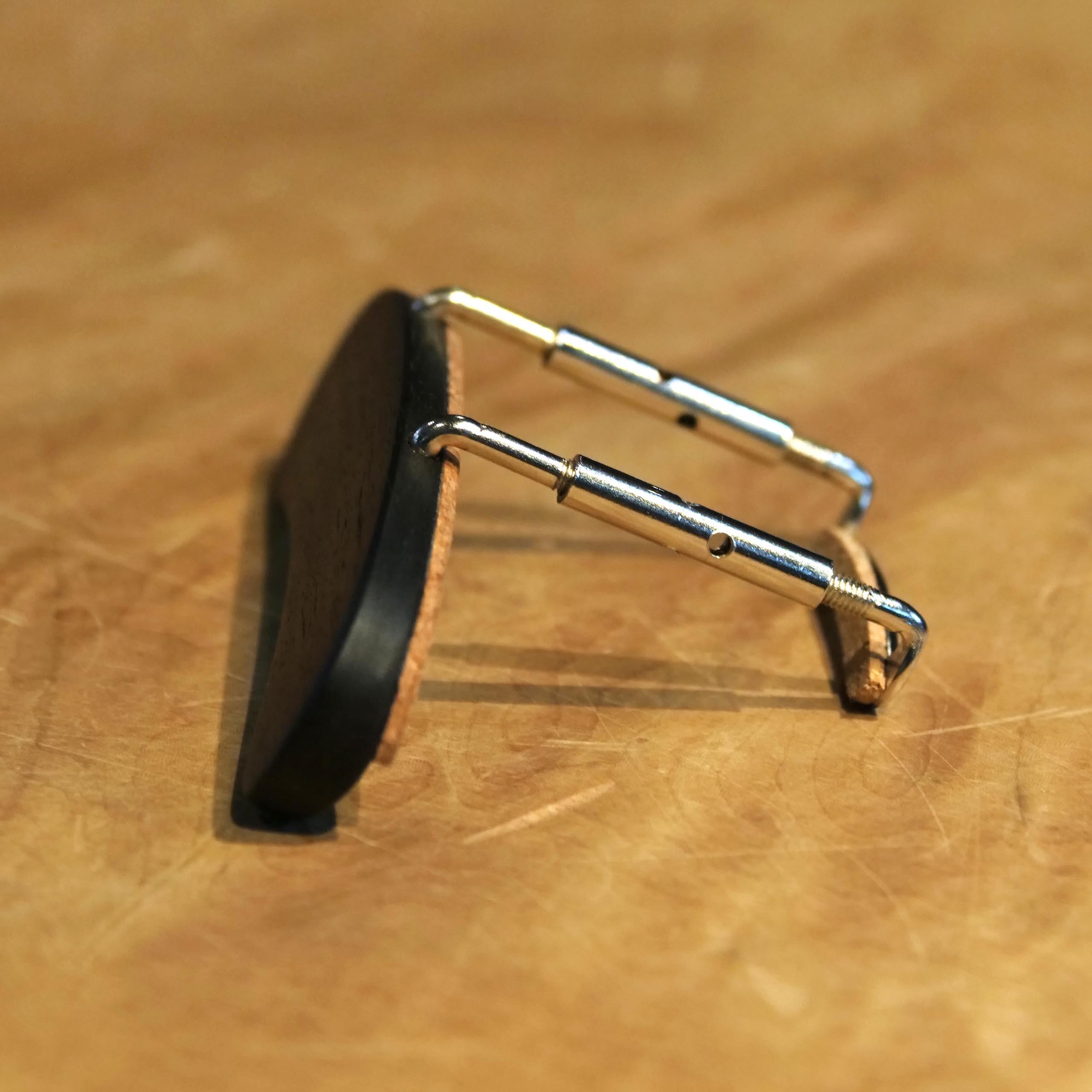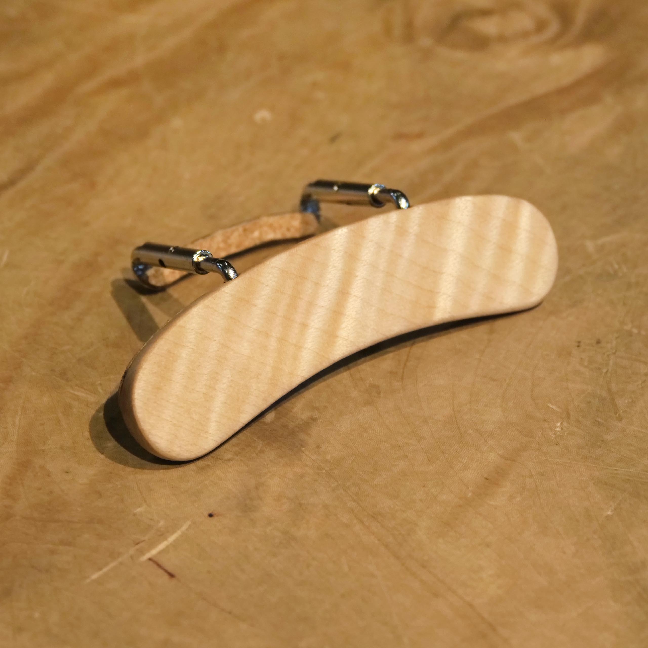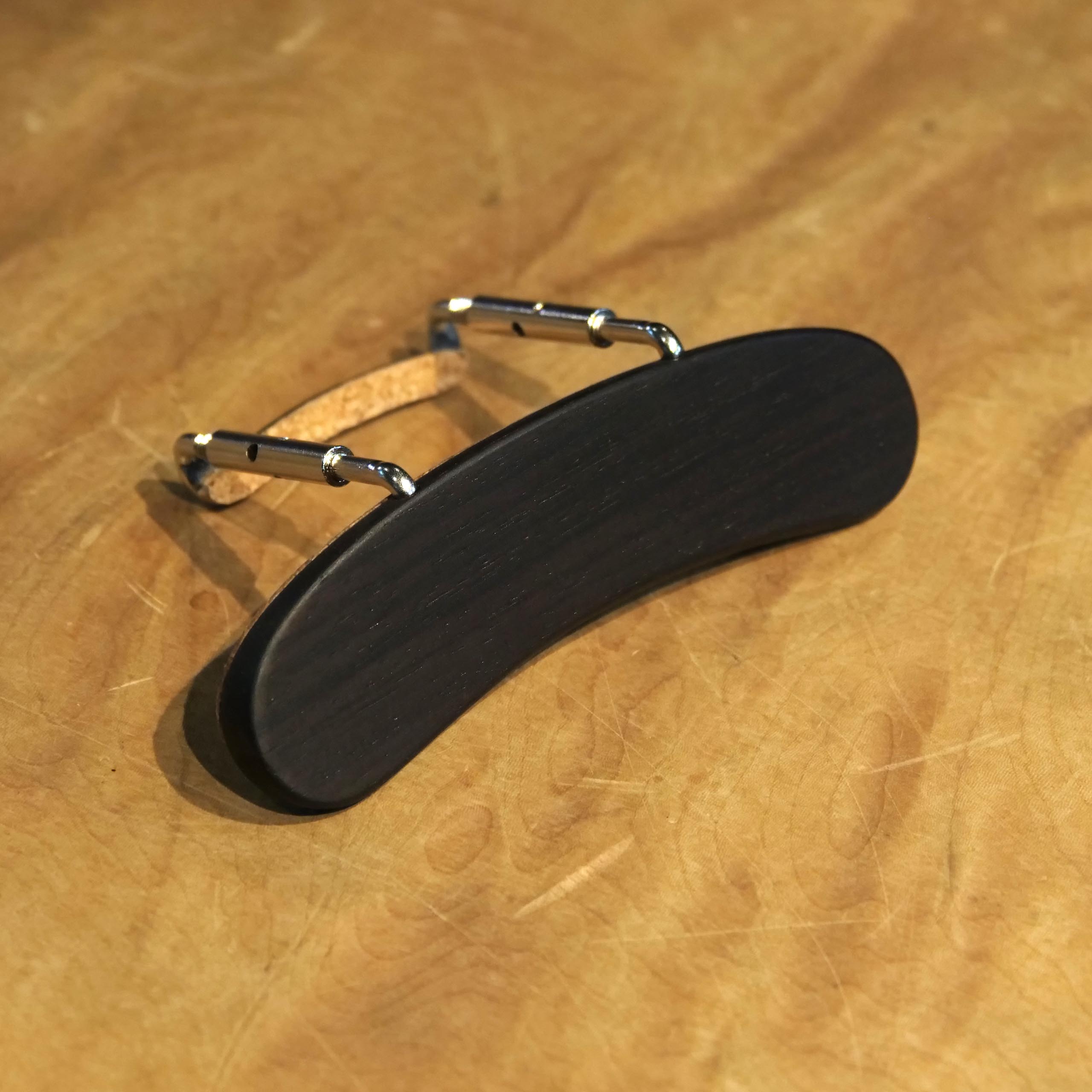 アームレストは、その名のとおり、肘(アーム)当てです。マンドリンに取り付ける事で肘が安定し演奏を楽にしてくれます。しかも肘の向きに沿って角度がやや傾斜しており、木の暖かい質感と相まって抜群のフィット感を生み出します。