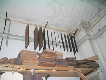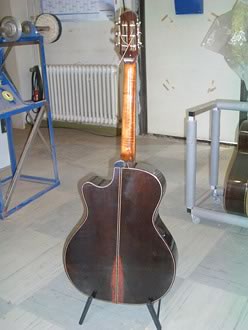 写真右は…、何じゃ?見えない? あっそうそう、柘植の製作した13弦ギターの設計図でした。