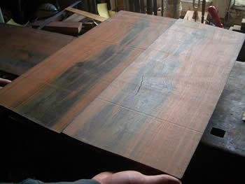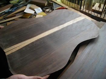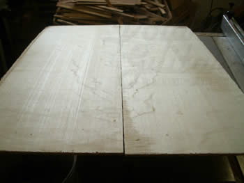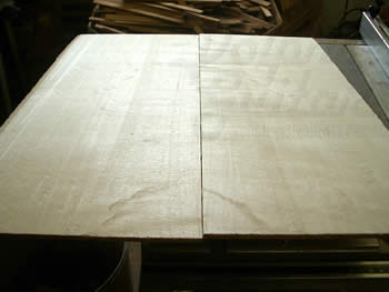 先日大量に仕入れた良質のジャーマン・スプルースの中にベアクロ物がいくらか混ざっていた、との事でしたので、早速良さそうな物を数セットキープしました。