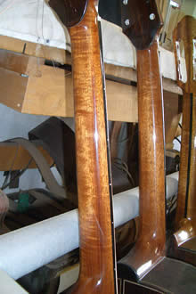 塗装も終わり最終組上げを待つギター達 / 完成したばかりのS-6 <Jacaranda> これは近日中に入荷します。ネックにはフレームも入っています。