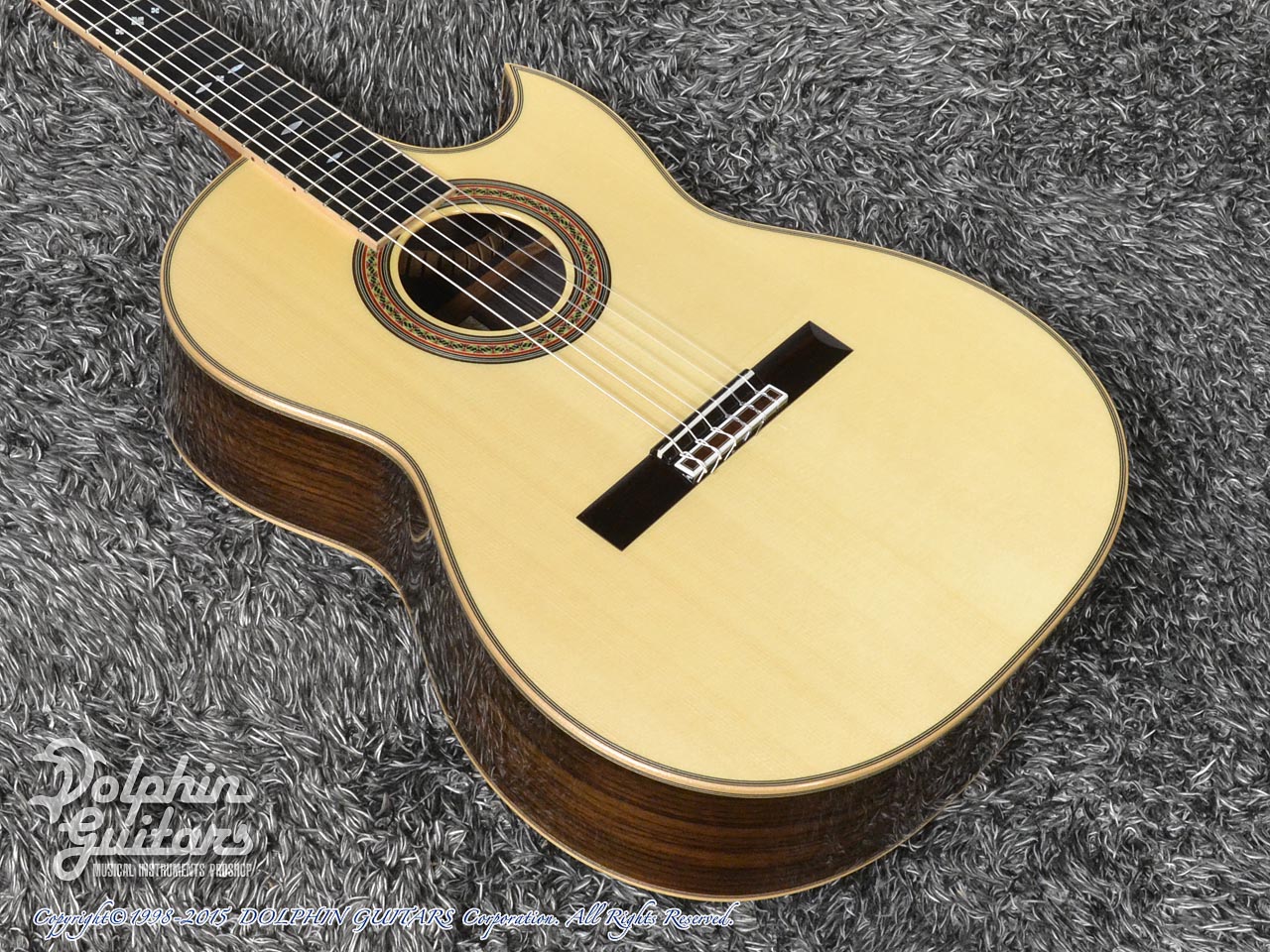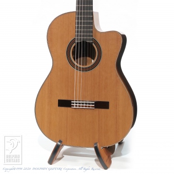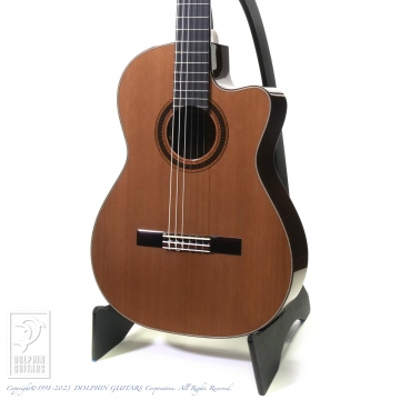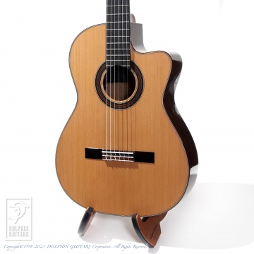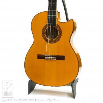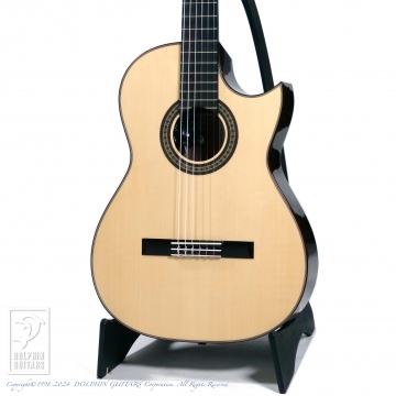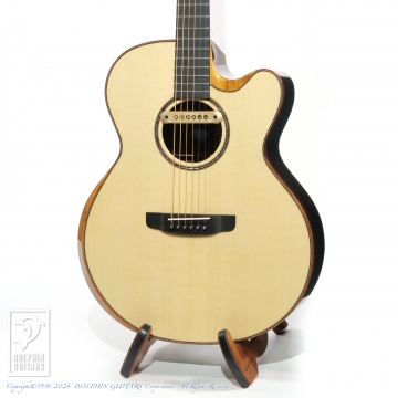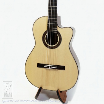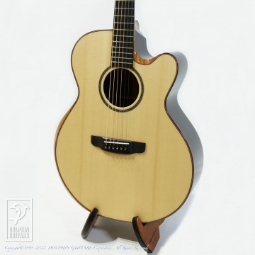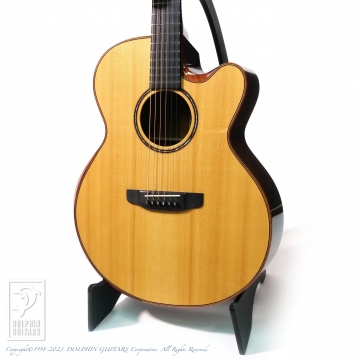 フィンガースタイルでの弾きやすさを重視した弦高セッティング。オリジナルシェイプのカッタウェイによりハイポジションも楽々弾きこなせます。