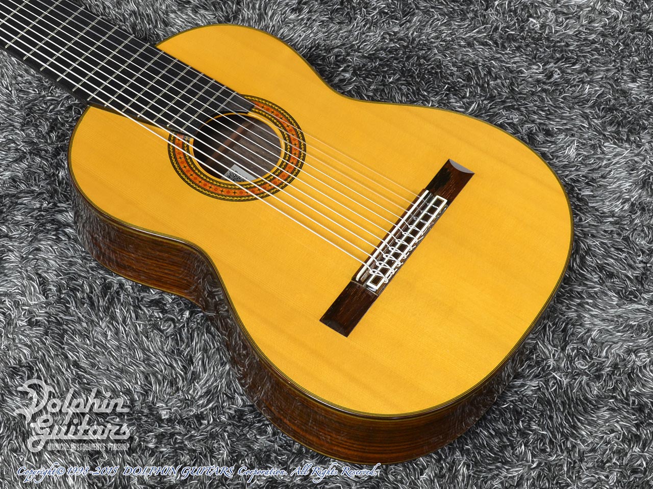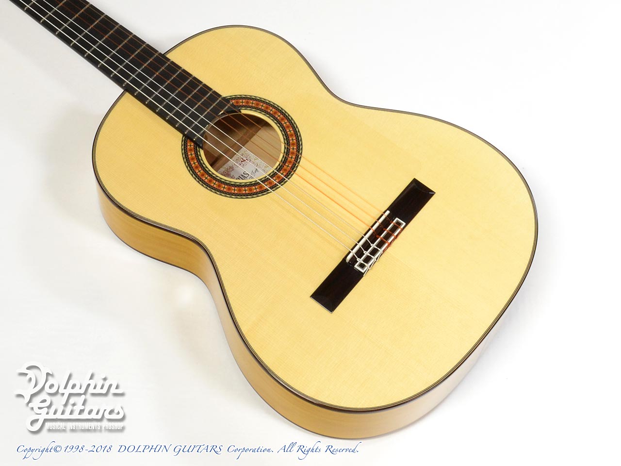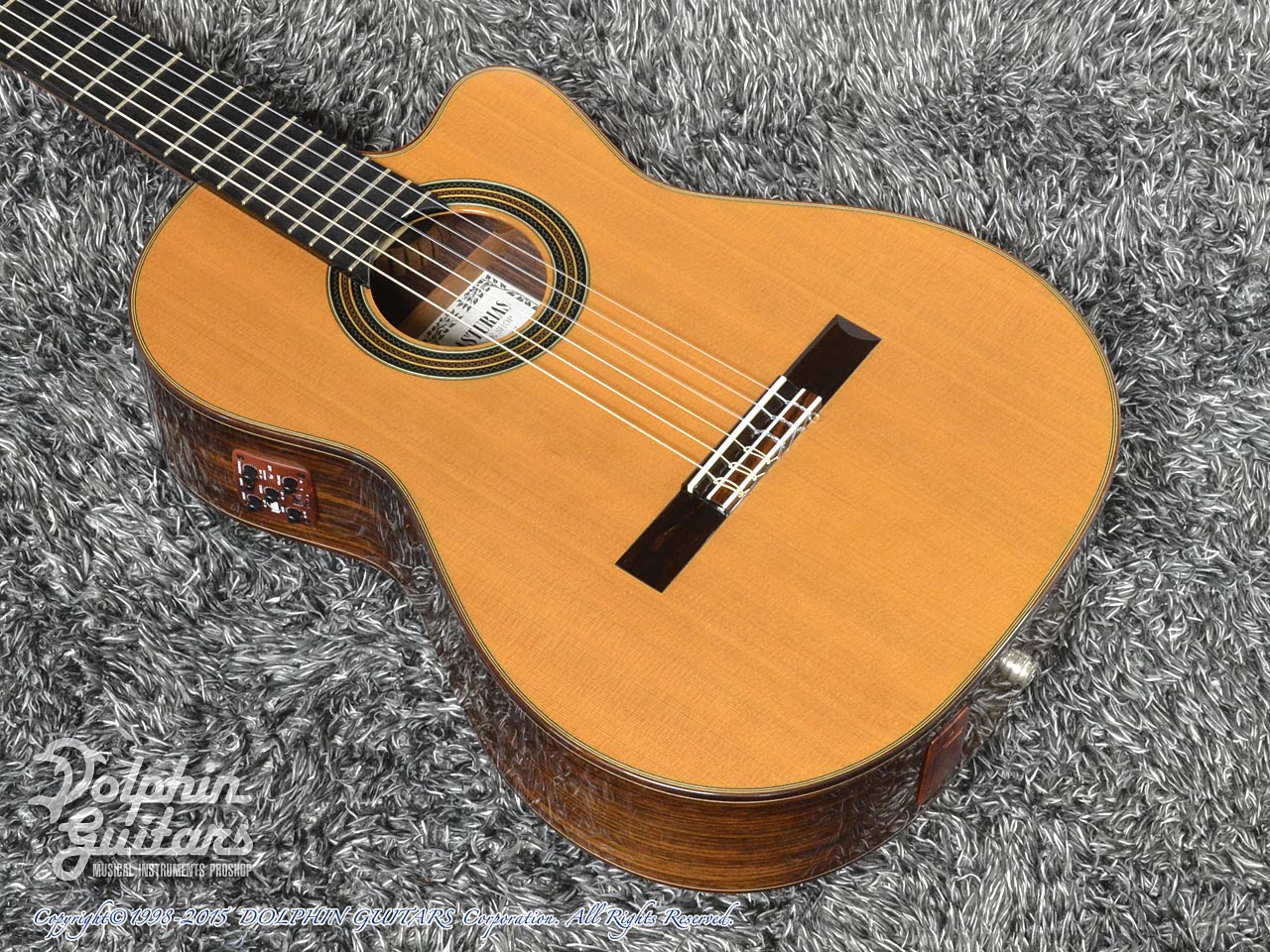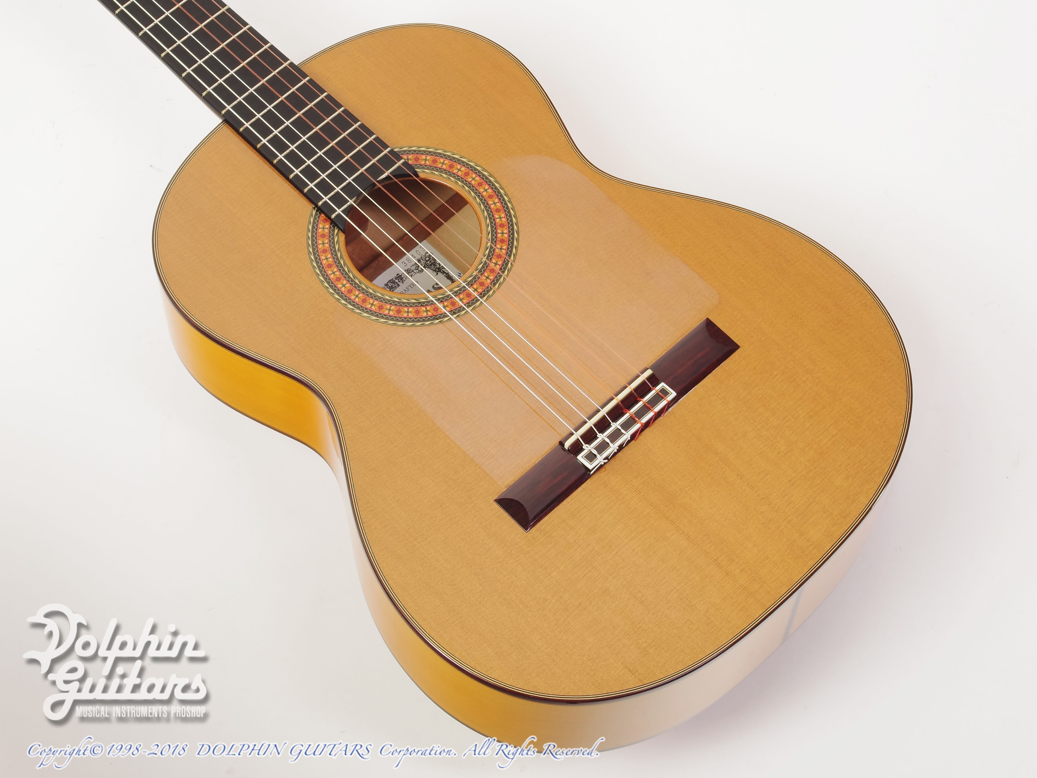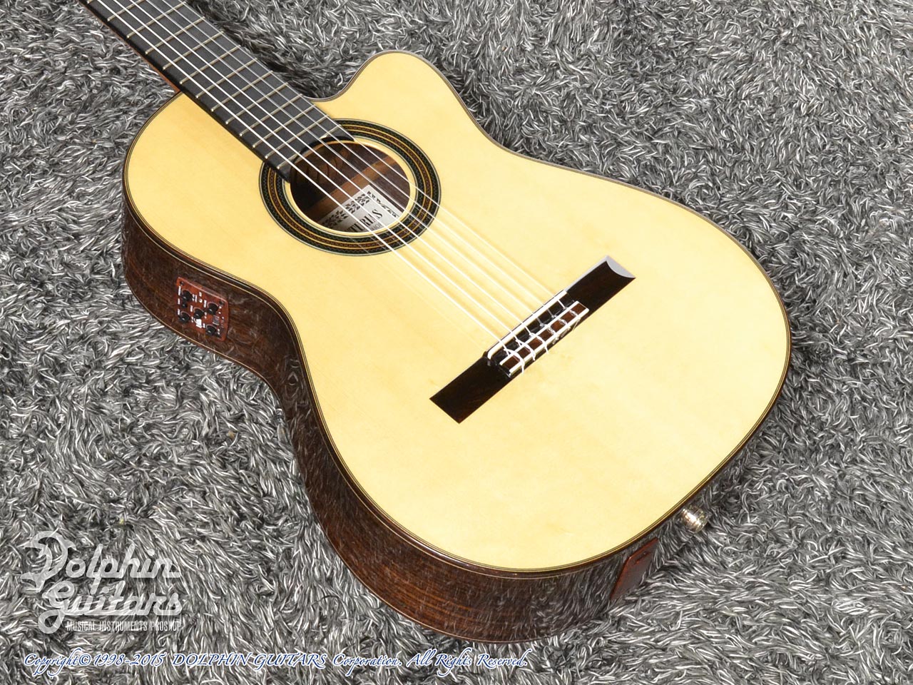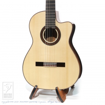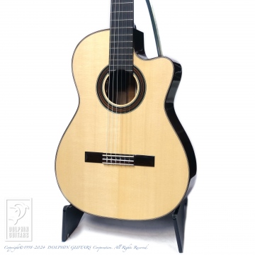 画像は、トップにジャーマンスプルース、サイド&バックにシープレスを使用した、本場スペインの香り漂う、アストリアスのフラメンコギター Flamenco Custom S(フラメンコ カスタム S)。