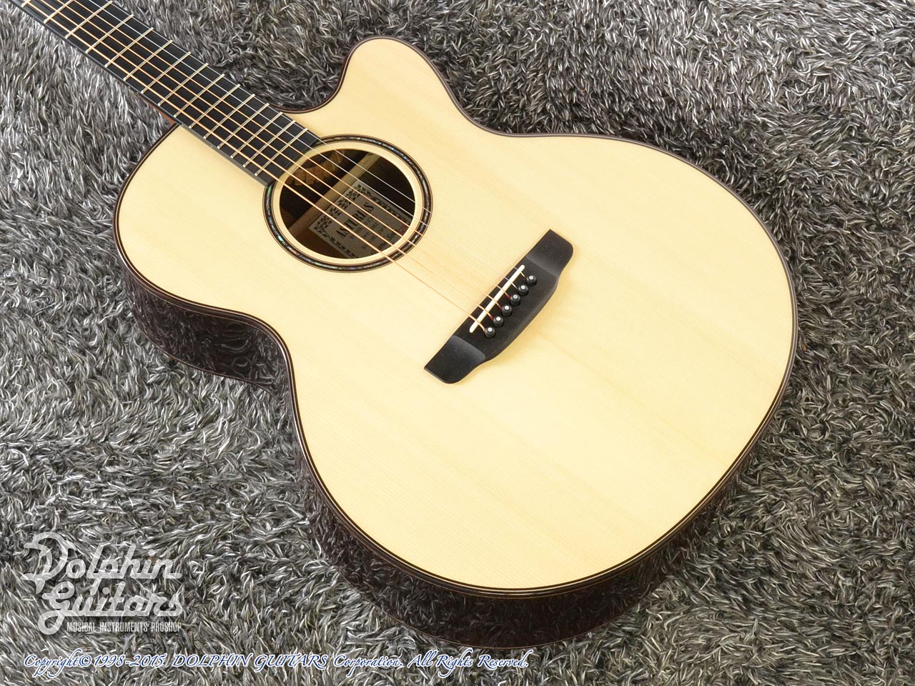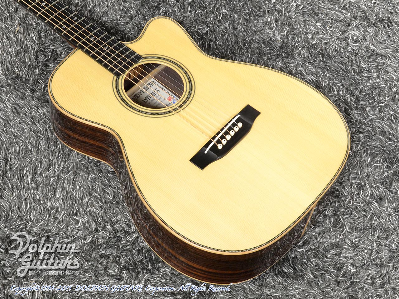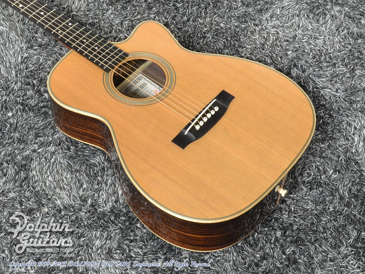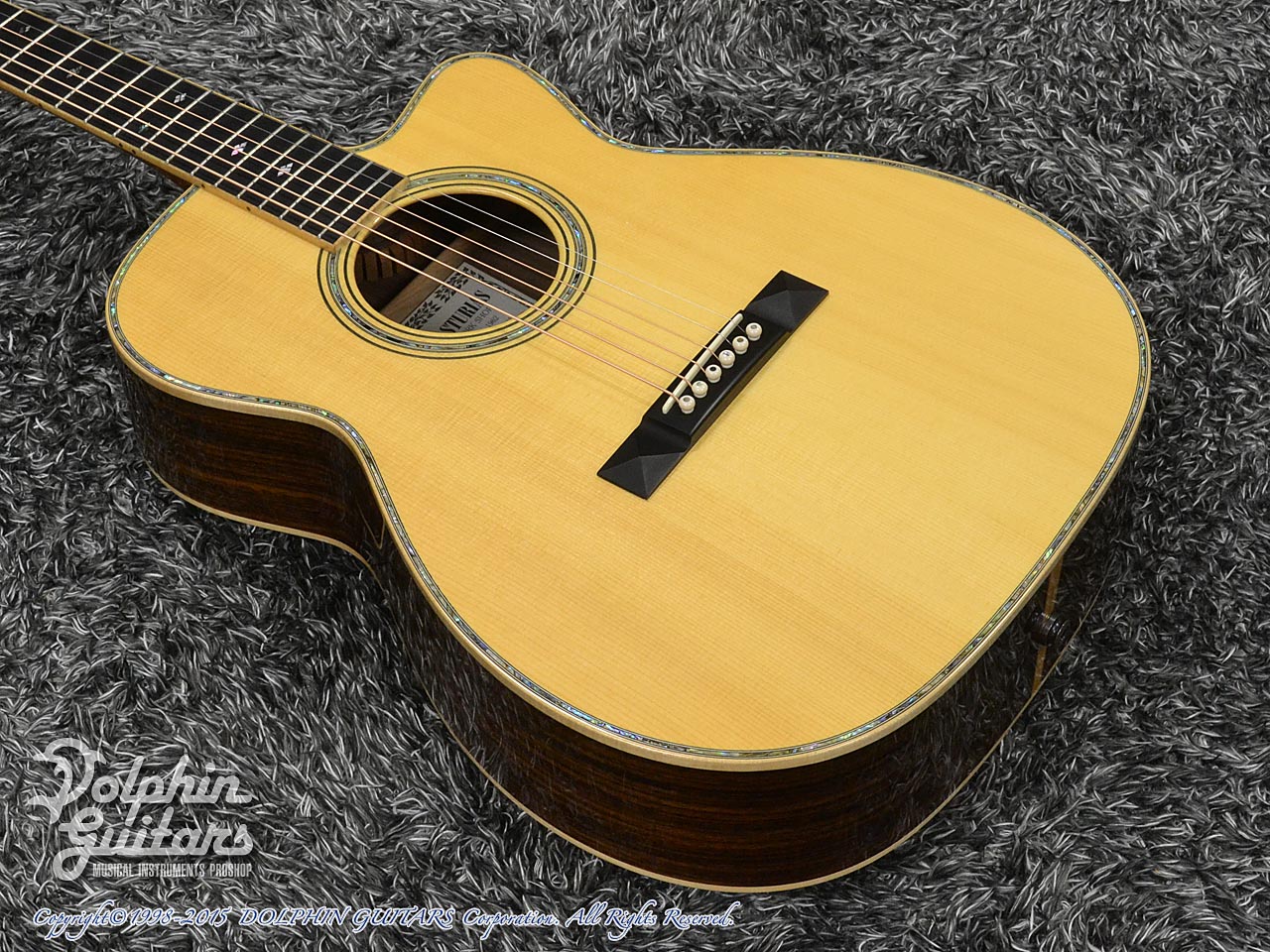画像は、トップにジャーマンスプルース、サイド&バックにインディアンローズウッド単板を使用した上位機種のD.Emblem(D.エンブレム)。
