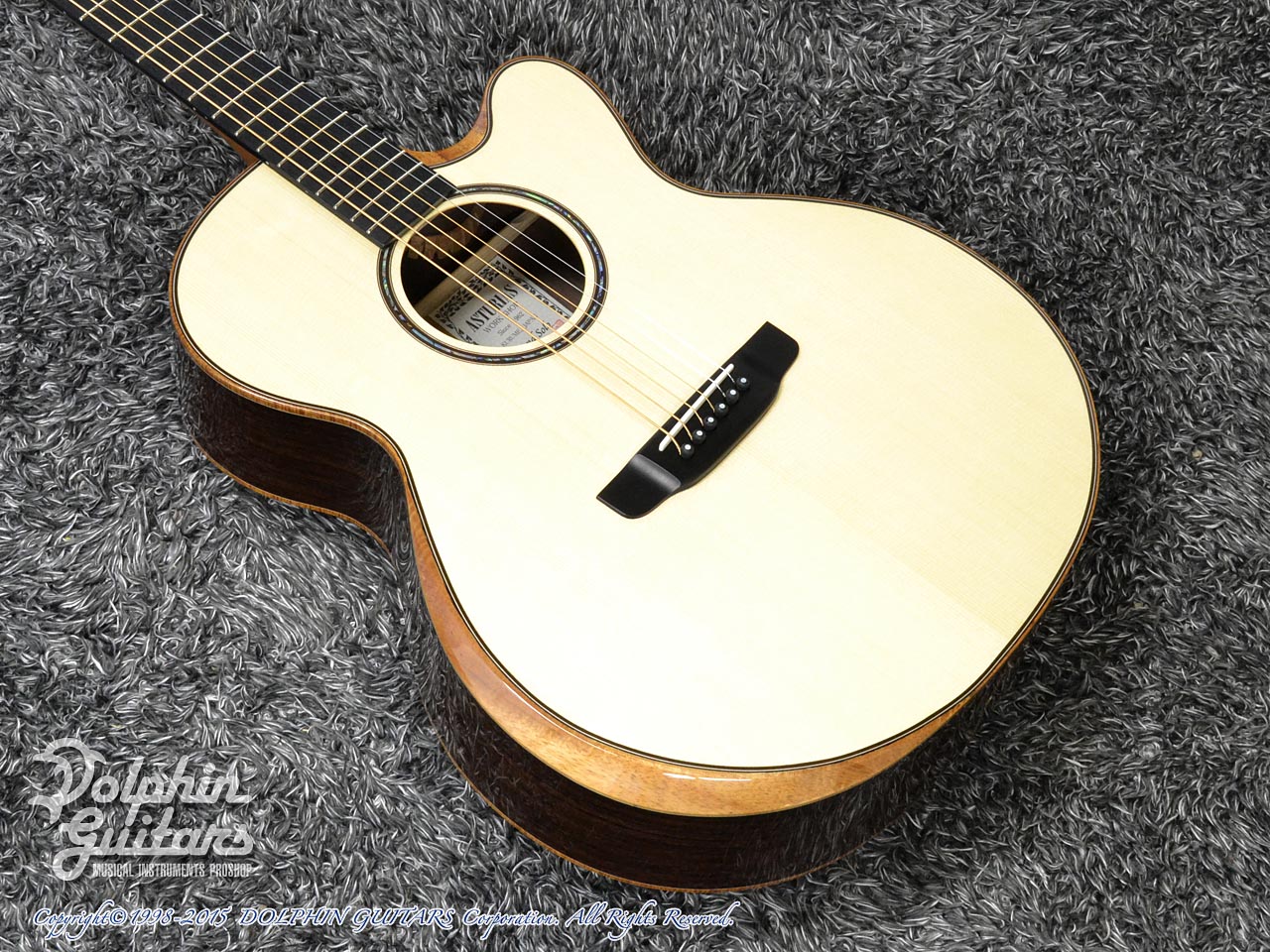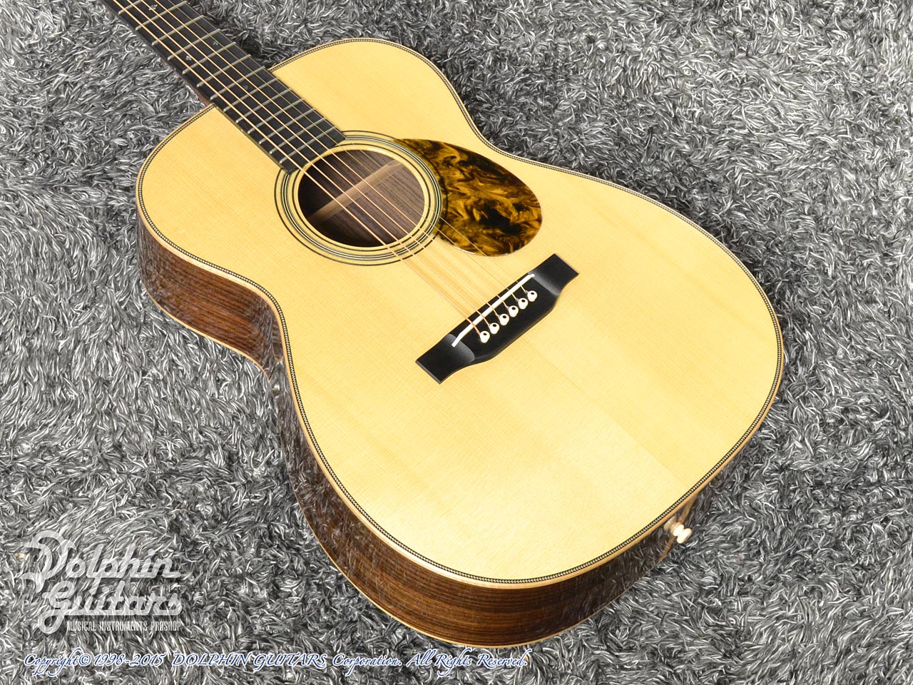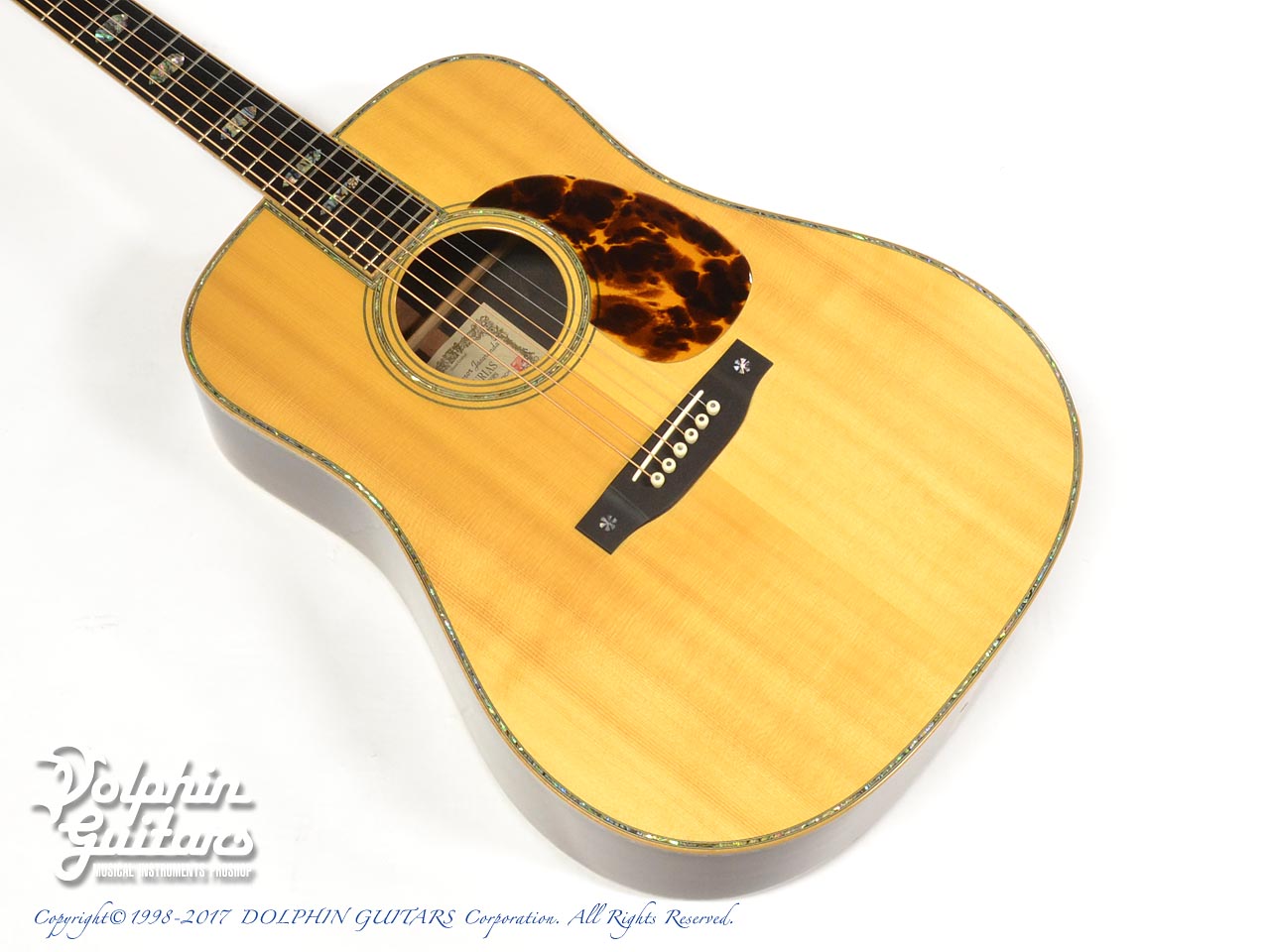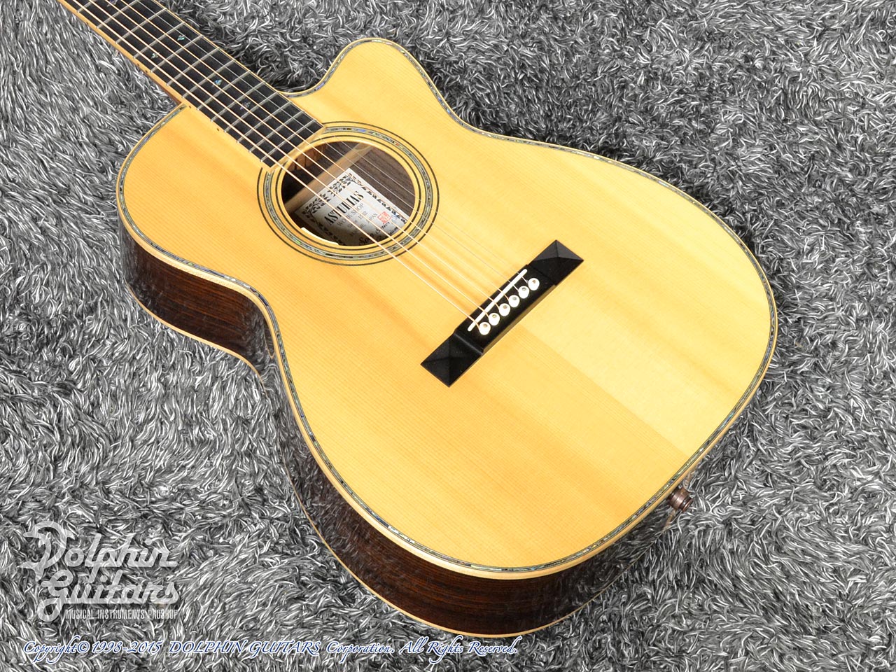 画像は、トップにジャーマンスプルース、サイド&バックにインディアンローズウッド単板を使用した上位機種のD.Emblem(D.エンブレム)。