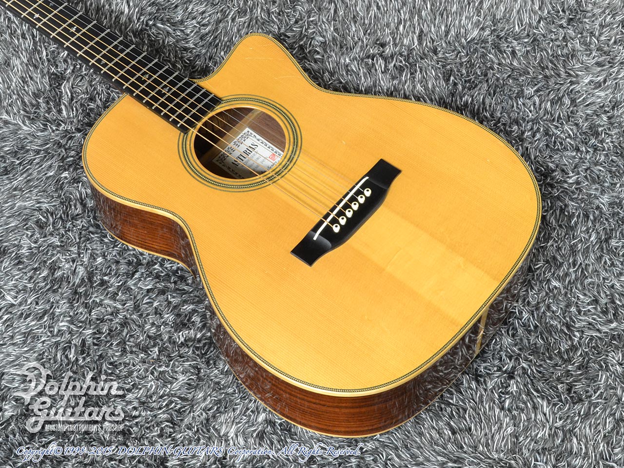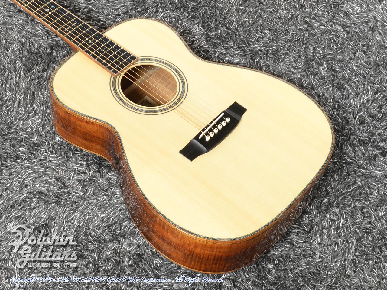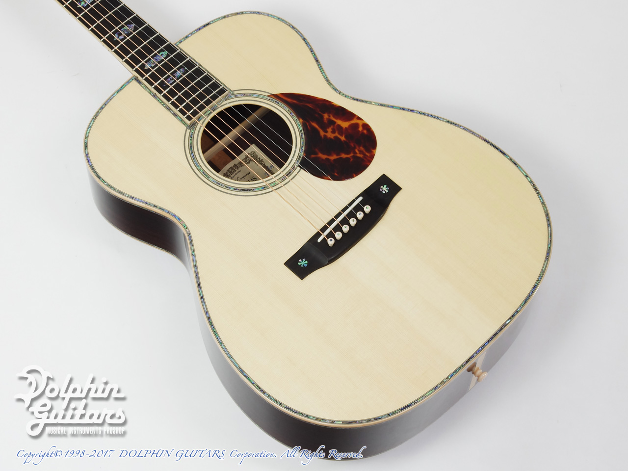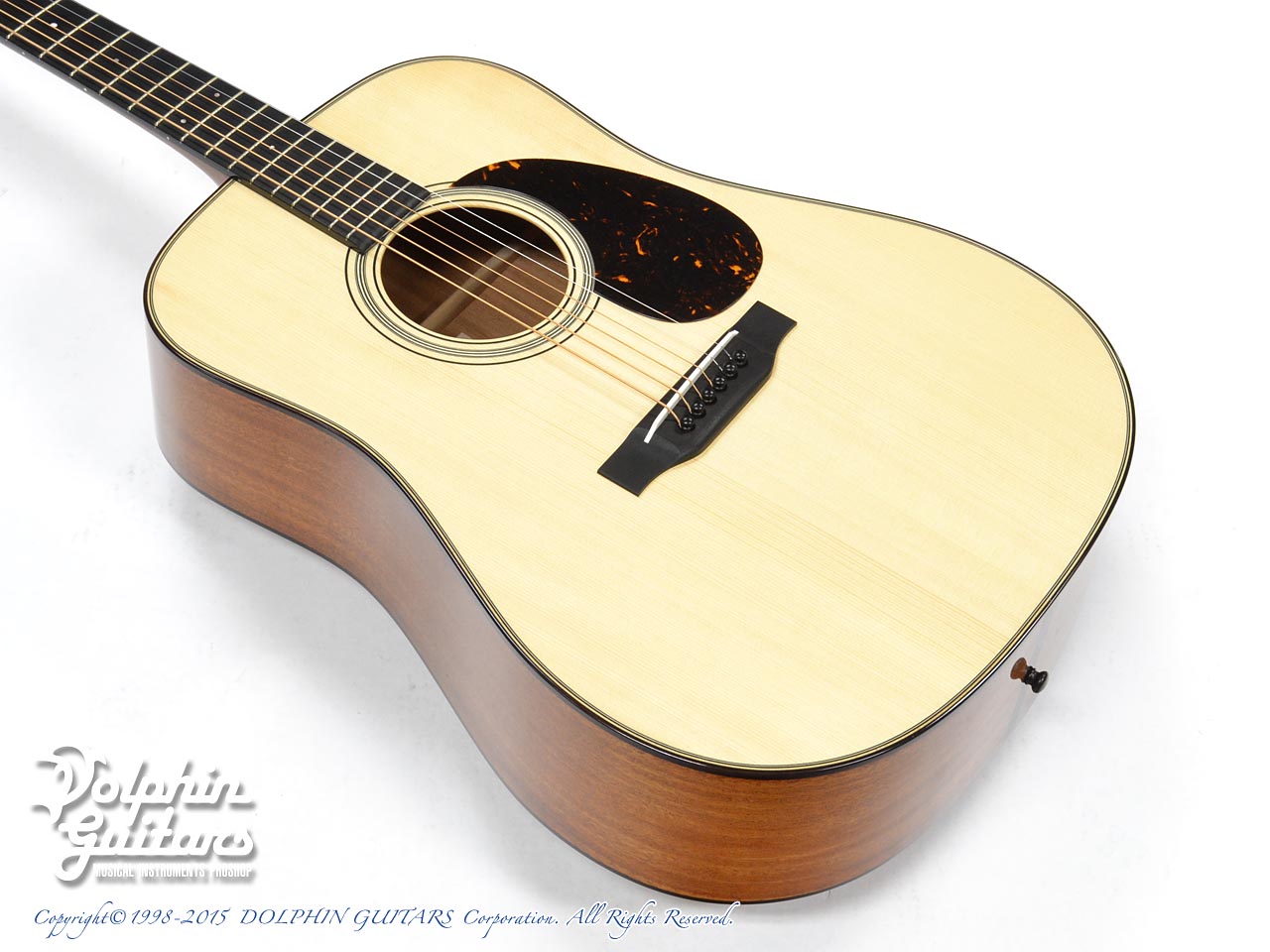 画像は、トップにジャーマンスプルース、サイド&バックにインディアンローズウッド単板を使用した上位機種のD.Emblem(D.エンブレム)。