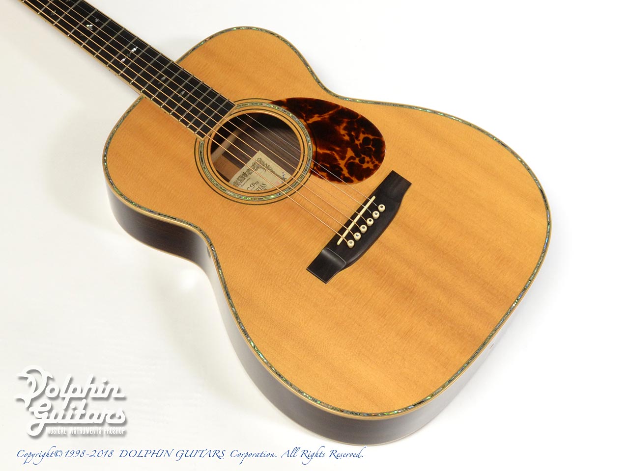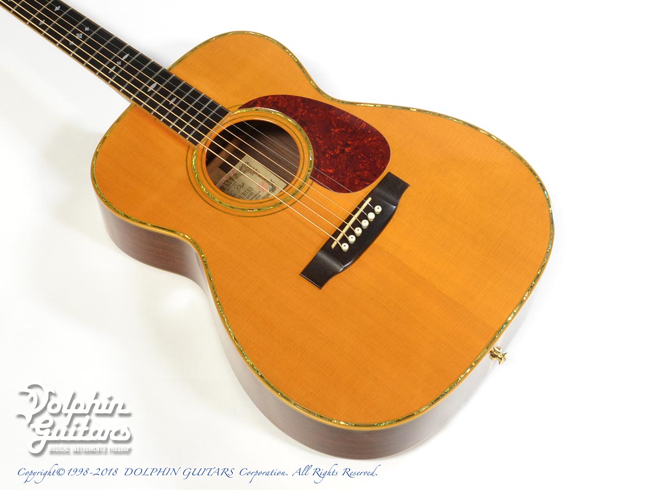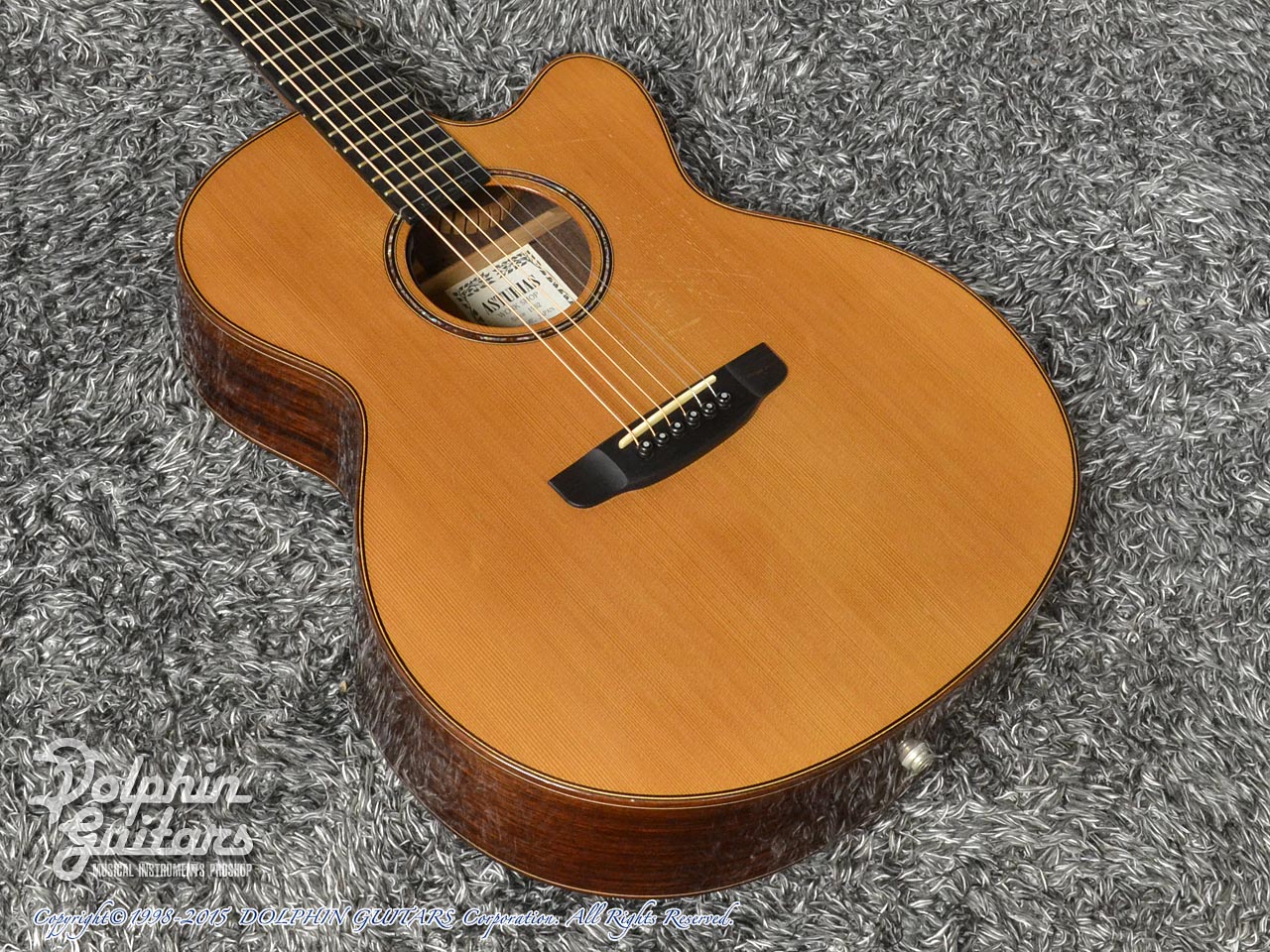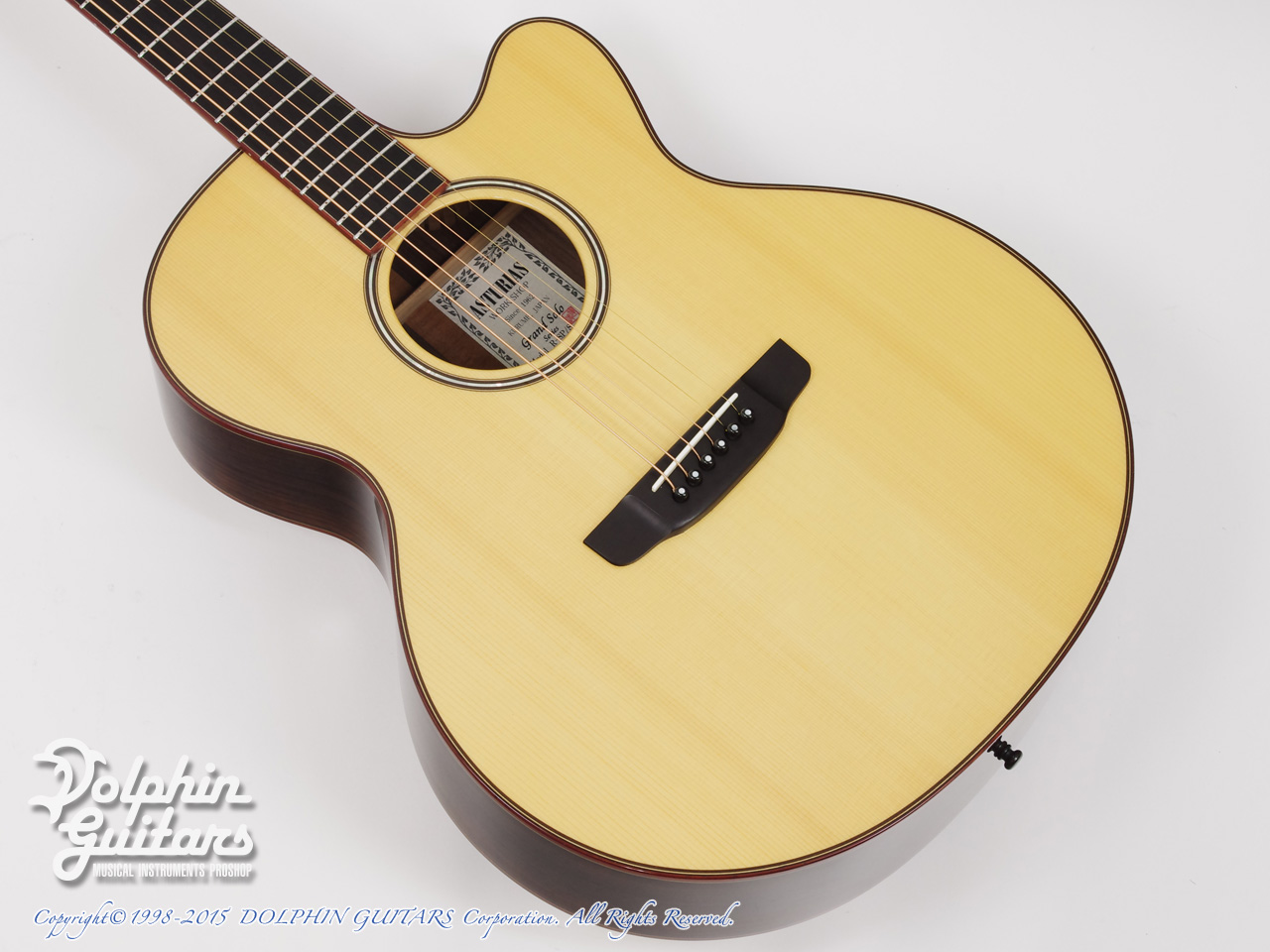 画像は、トップにジャーマンスプルース、サイド&バックにインディアンローズウッド単板を使用した上位機種のD.Emblem(D.エンブレム)。