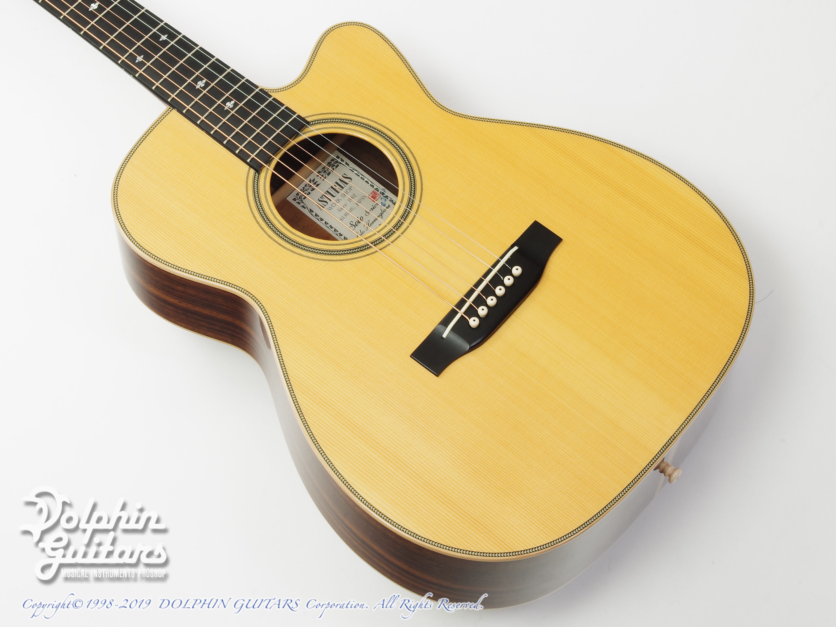 画像は、トップにジャーマンスプルース、サイド&バックにインディアンローズウッドを使用したSoloサイズのフラグシップモデルのSolo Premium(ソロ プレミアム)。